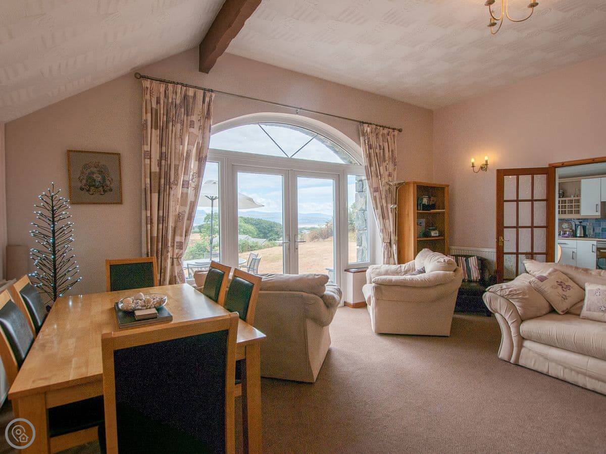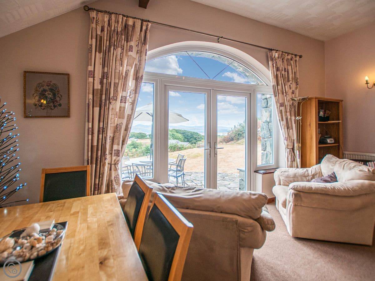 Caer Ffynnon is a barn conversion in Morfa Bychan. It's detached and sits up on a bit of a hill. The main thing is the view from the back of the house: you can see the sea one way and the mountains the other way. It's quite open.