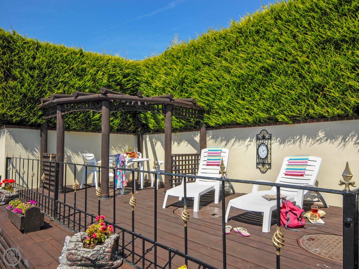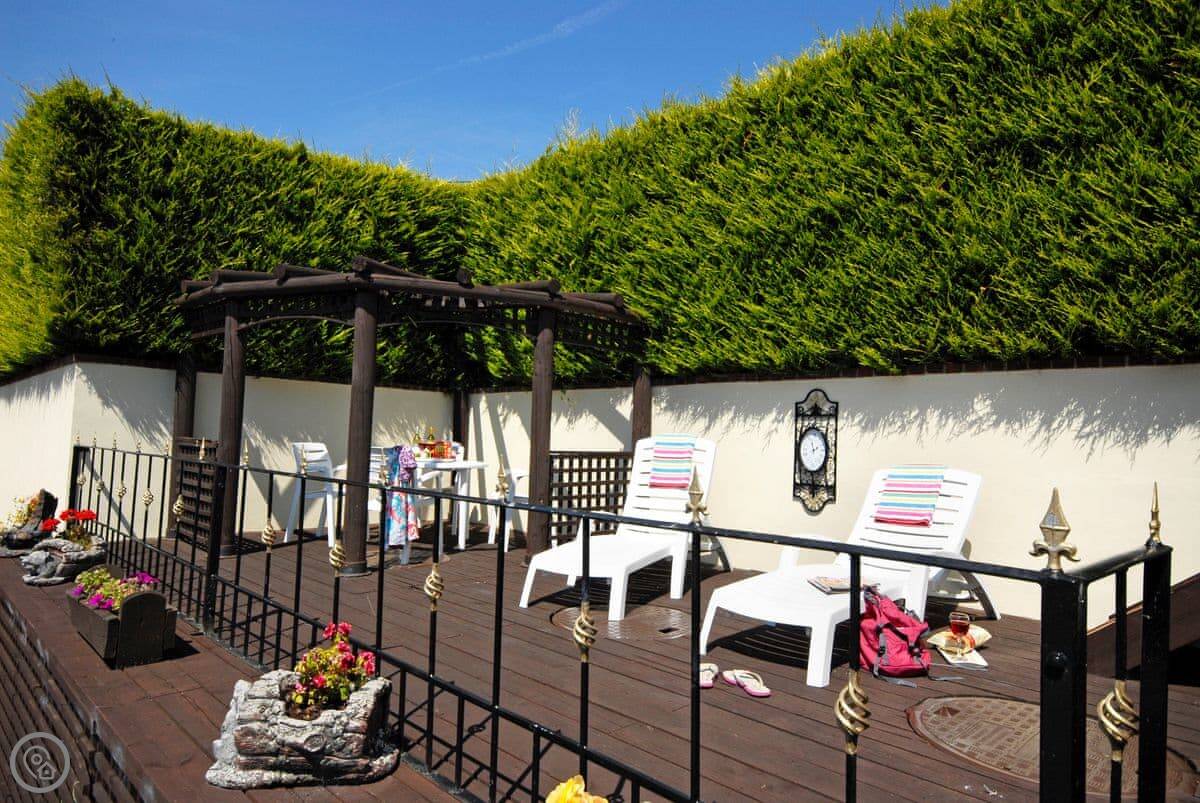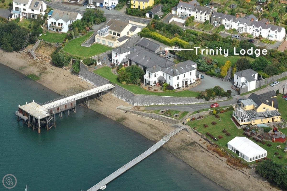 Trinity Lodge is in Burton Ferry. It's a waterside lodge we rent out, set in the walled grounds of Trinity House, which is our main house. You get your own garden.