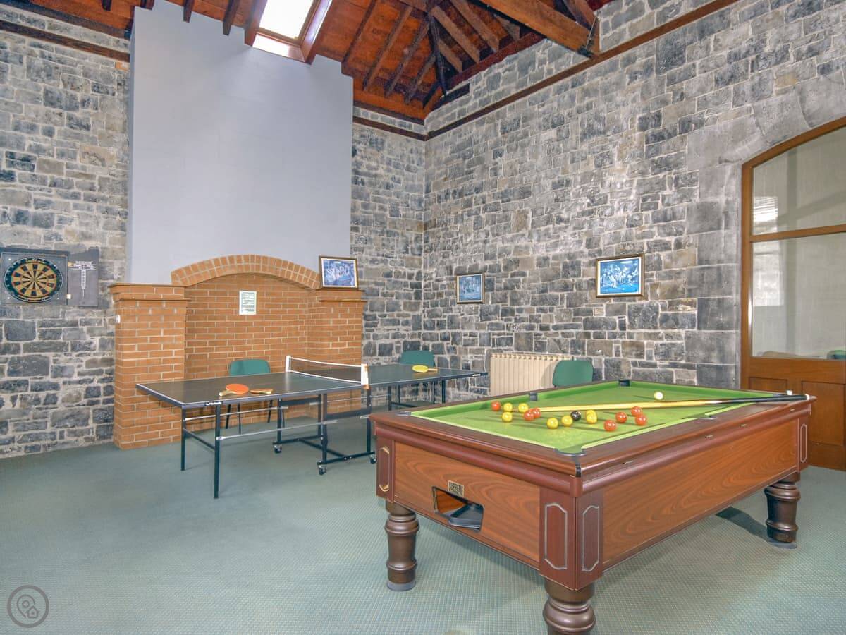 We have some facilities on site that you can use. There's a heated indoor swimming pool, a jacuzzi, a fitness area, and a games room with a full-sized snooker table, a pool table, and table tennis.