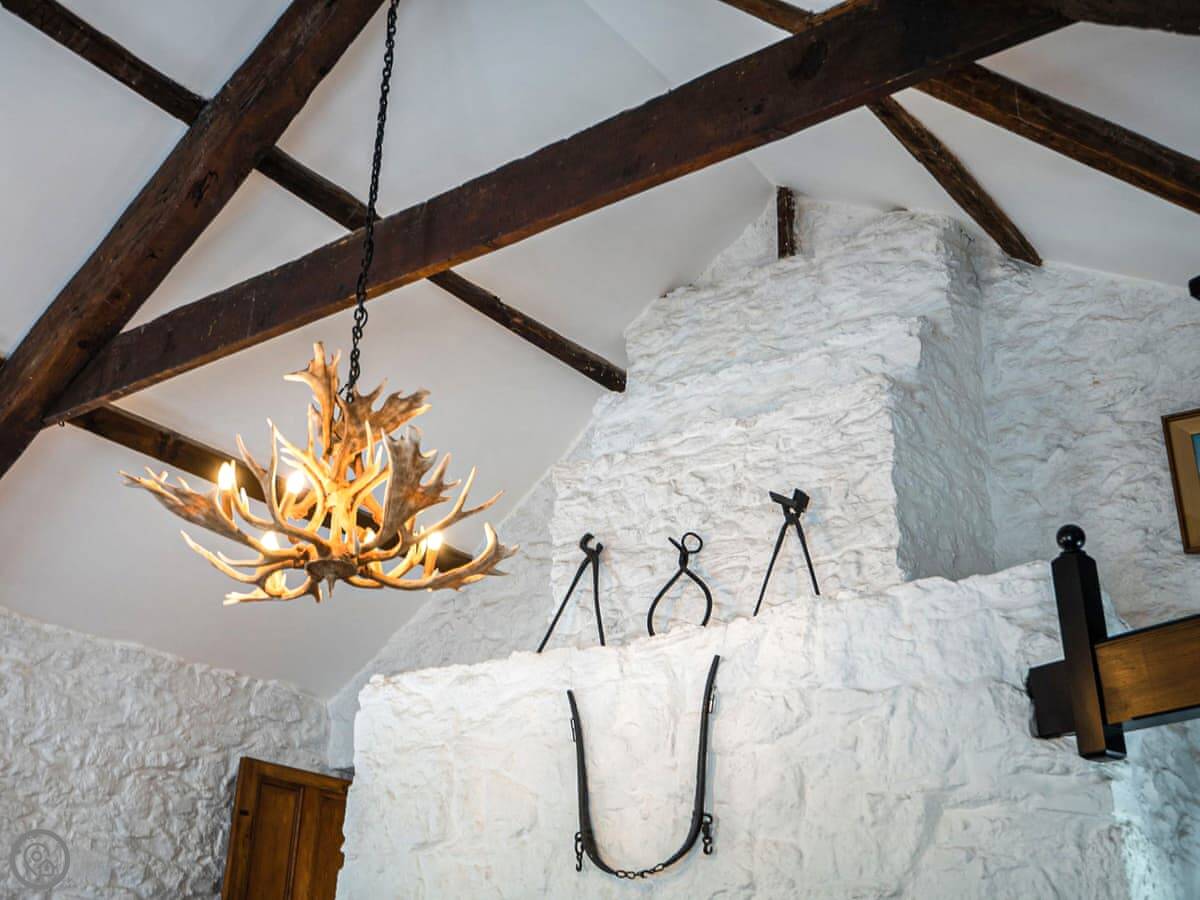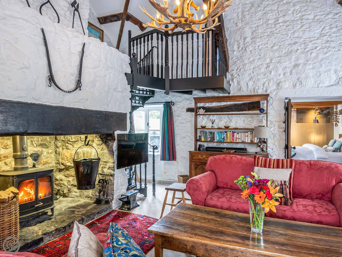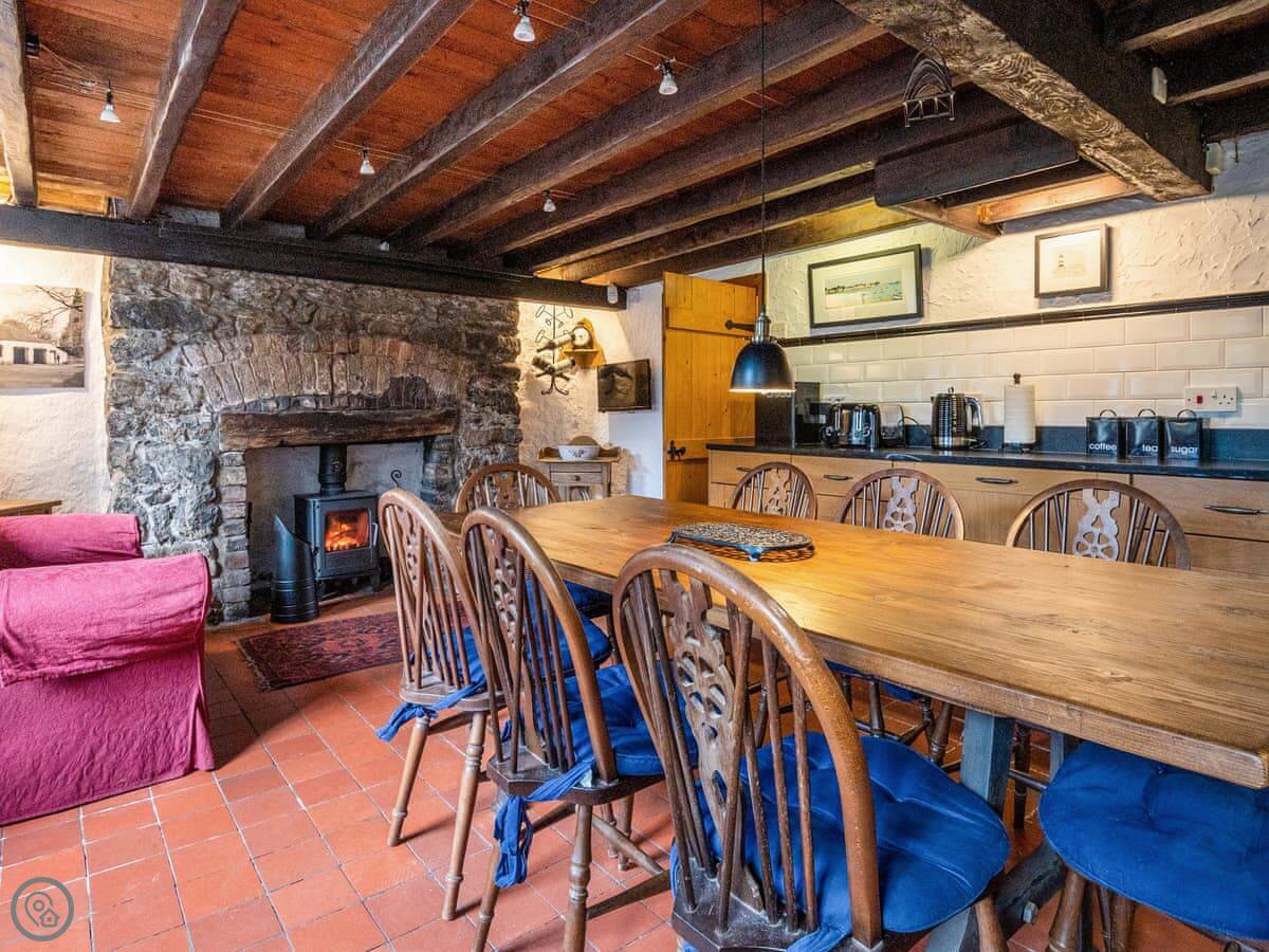 The Old Smithy is on Anglesey, in a small, quiet place called Llanfaes. It used to be a blacksmith's, so it's an old building with the beams and stone fireplaces still in place. It's been converted now, but it's not a modern new-build. It sleeps eight, but that's across three bedrooms. Two of the bedrooms are upstairs, one is on the ground floor. There are three bathrooms, which helps.