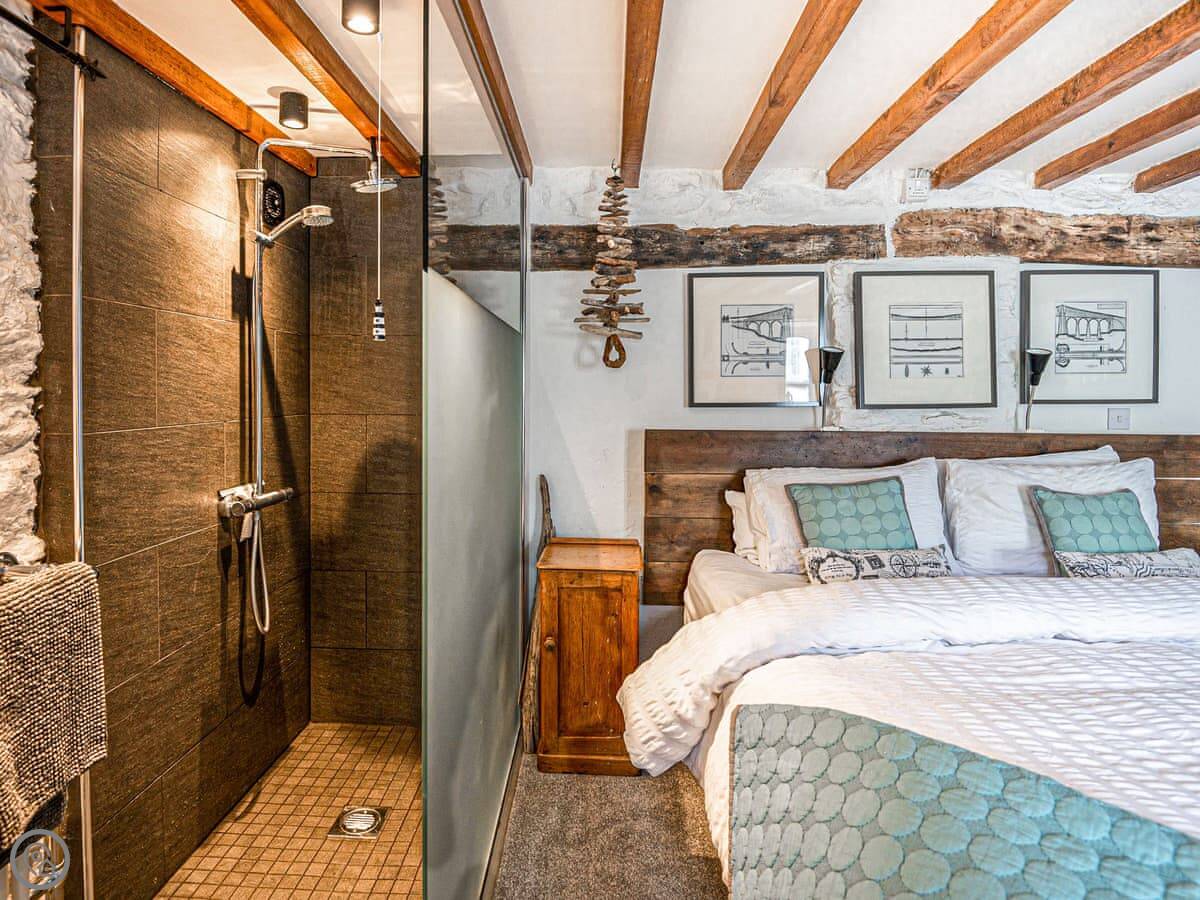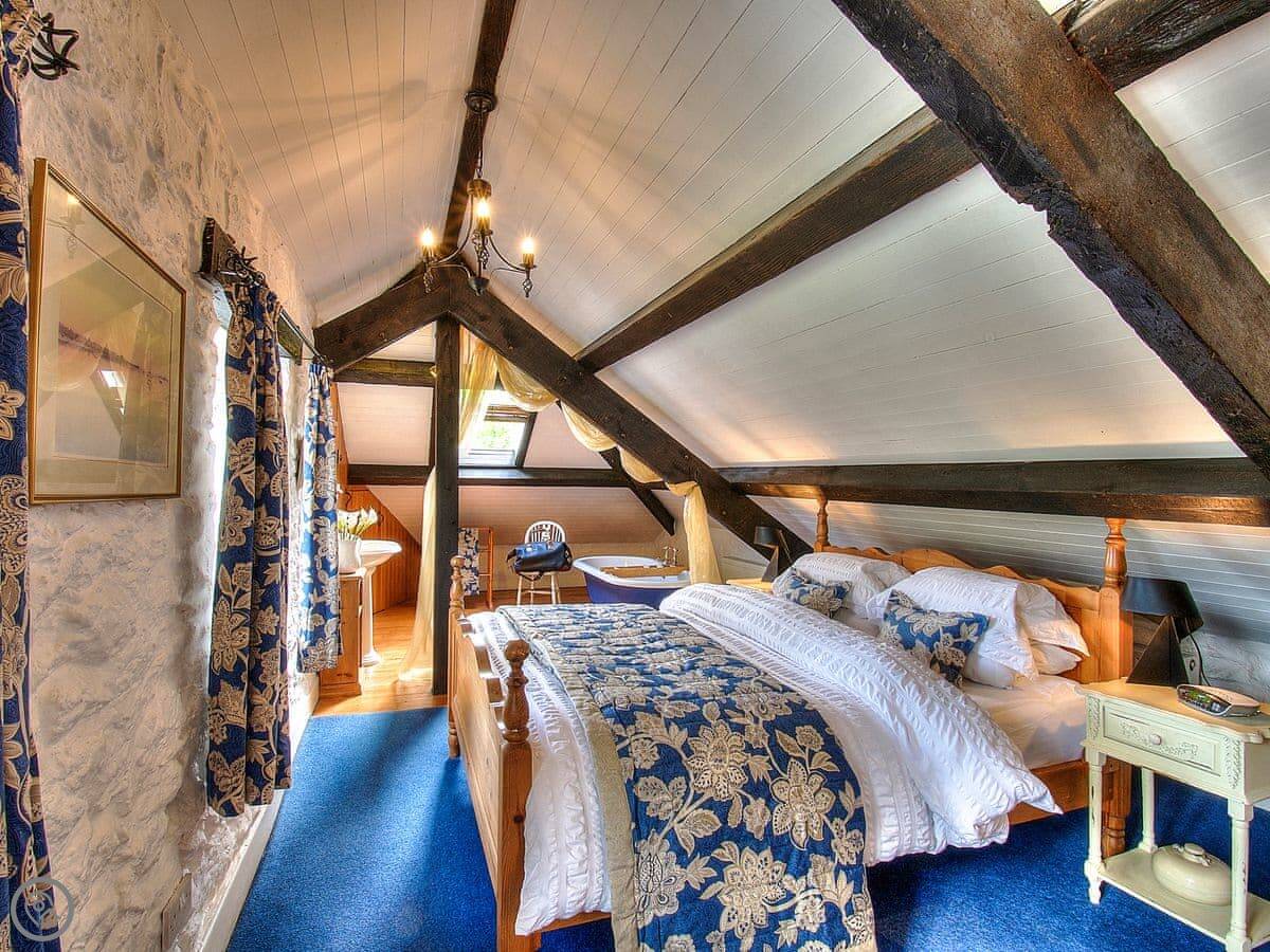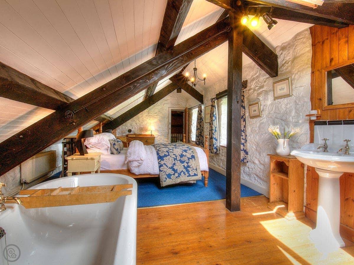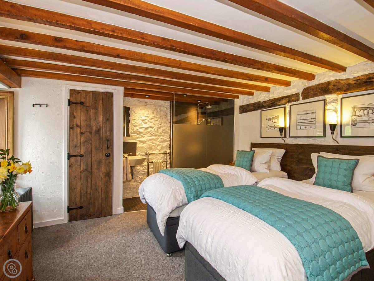 The Old Smithy is on Anglesey, in a small, quiet place called Llanfaes. It used to be a blacksmith's, so it's an old building with the beams and stone fireplaces still in place. It's been converted now, but it's not a modern new-build. It sleeps eight, but that's across three bedrooms. Two of the bedrooms are upstairs, one is on the ground floor. There are three bathrooms, which helps.