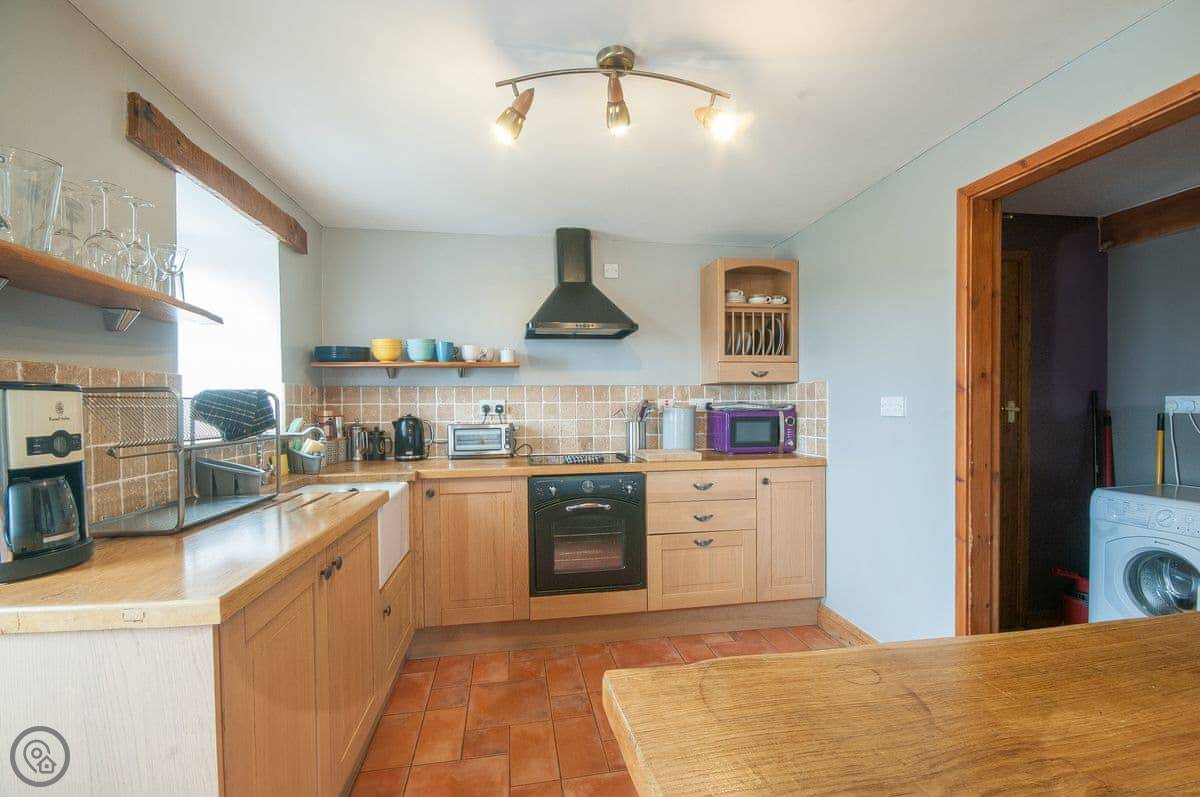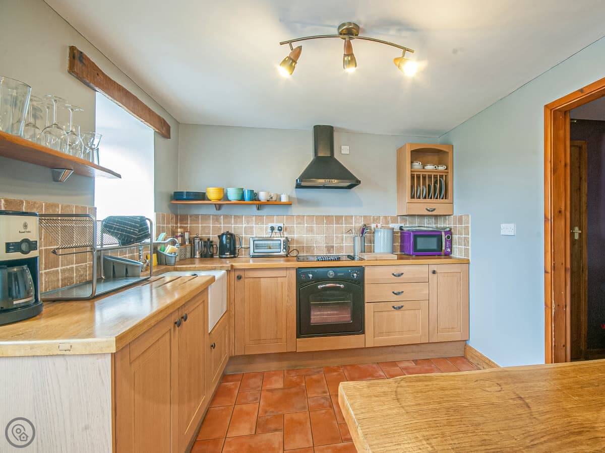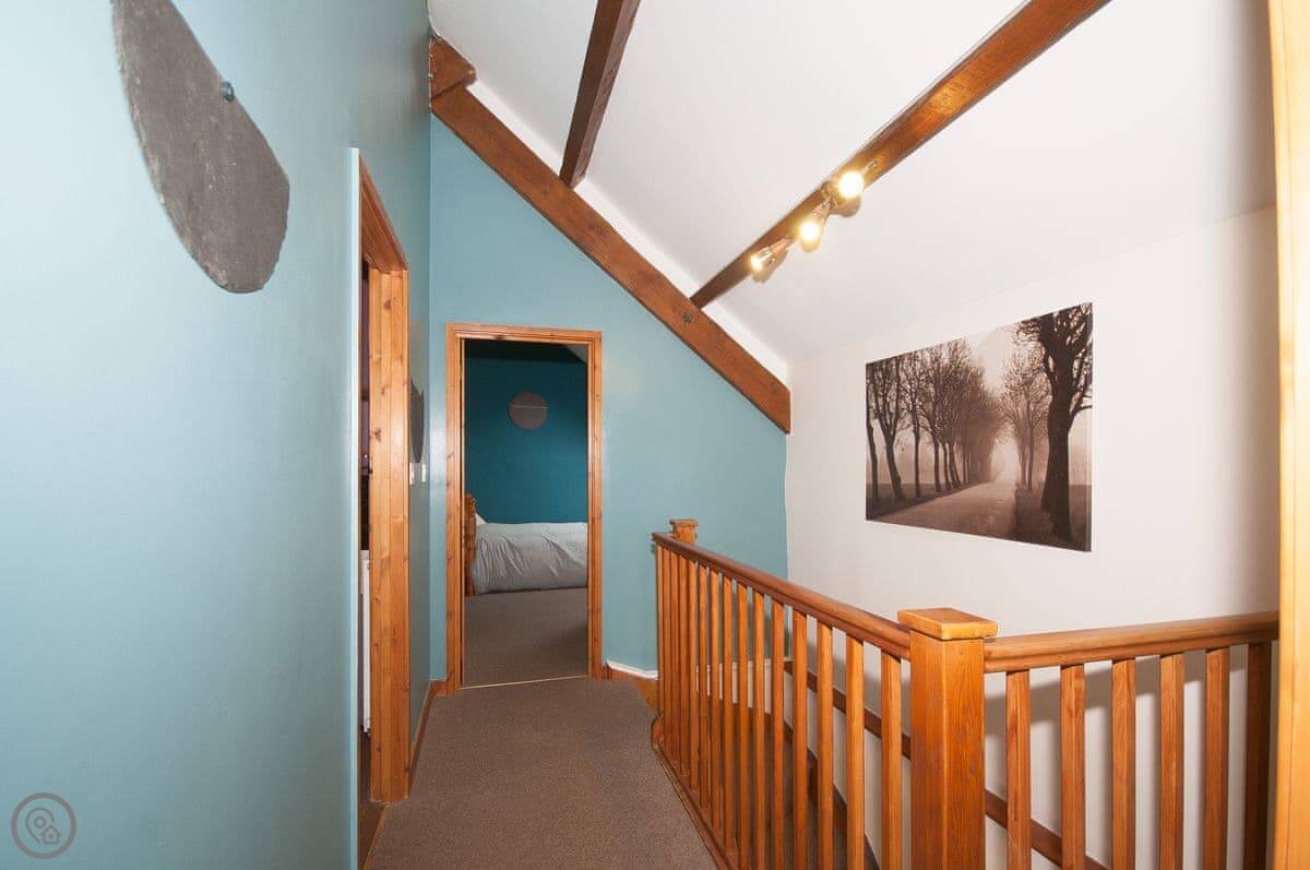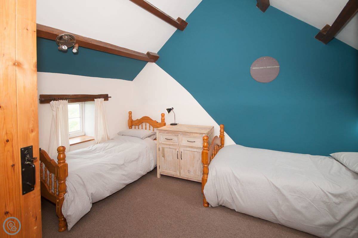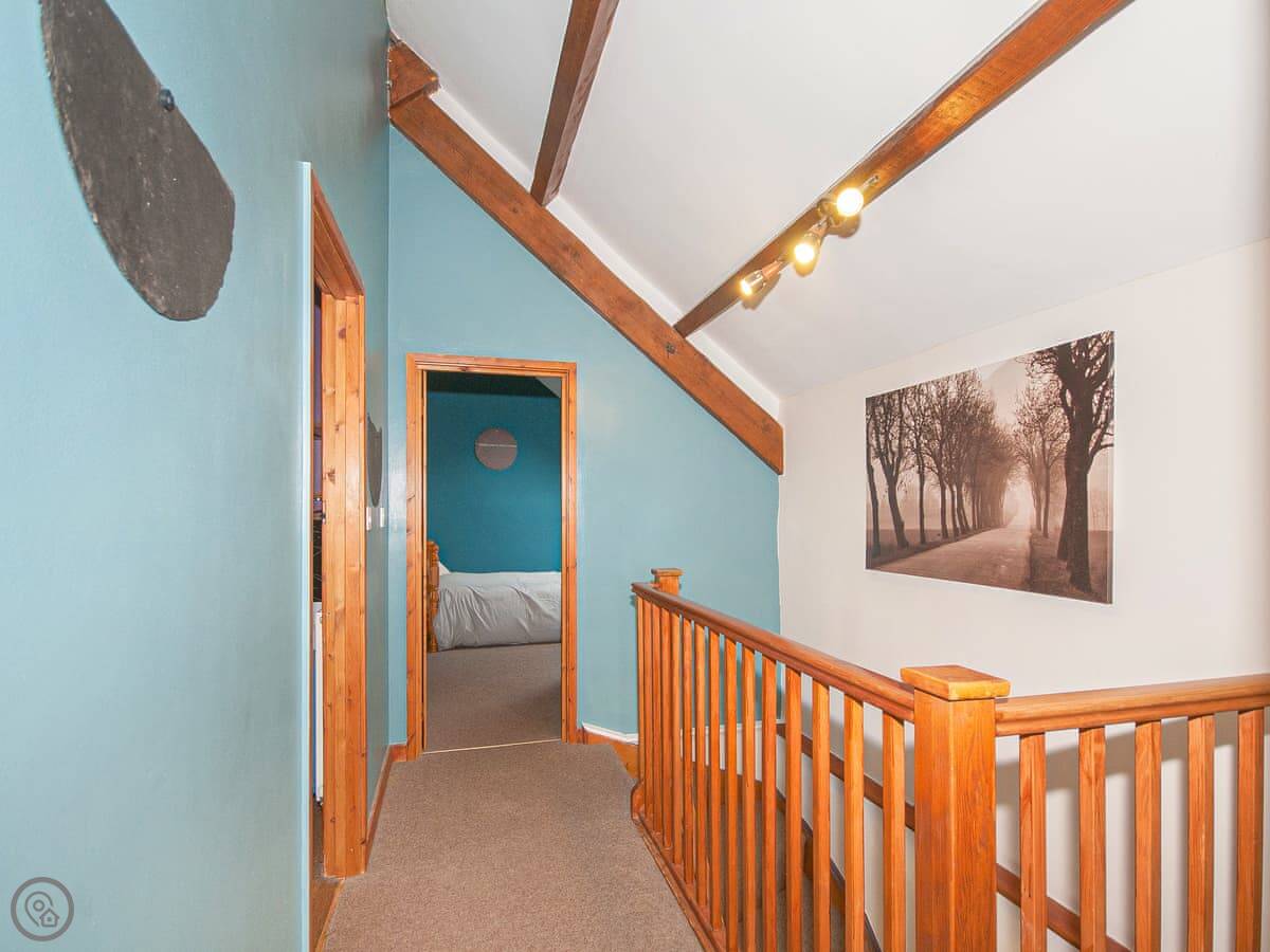 Furnished and decorated in a comfortable, stylish contemporary theme with open plan living/kitchen and French doors opening onto patio. Beamed ceilings and latch doors complement the stylish solid wood dining table and country chairs of this Snowdonia holiday cottage. On the first floor, you will find two bedrooms which are spacious, with lovely views of the spectacular countryside. There is also a bathroom on this floor with walk-in shower.