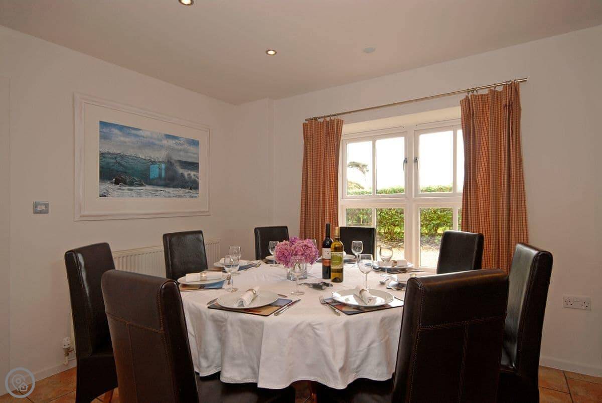 This is a very special coastal holiday home and at its heart is a first floor living room with a glass gable end. Patio doors open onto a glass balustrade balcony overlooking the spectacular seascape. Sun filled airy rooms, high ceilings, tiled floors and a lovely sweeping staircase with glass balustrade gallery, smartly and tastefully furnished in a minimalist style and extremely well equipped to the very highest residential standards. Walk directly onto the Pembrokeshire Coastal Path or relax in the secluded part walled garden, the sheltered patio, furnished with large dining table, umbrella and chairs, is just perfect for al fresco dining and external stairs up to the balcony. The owner also provides for your comfort free range eggs, shower gel, hand wash and hand cream.