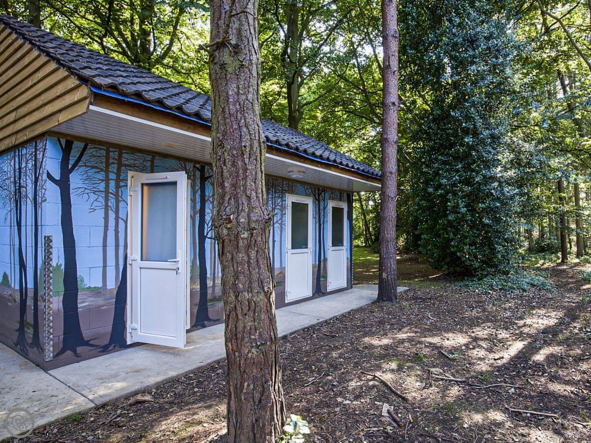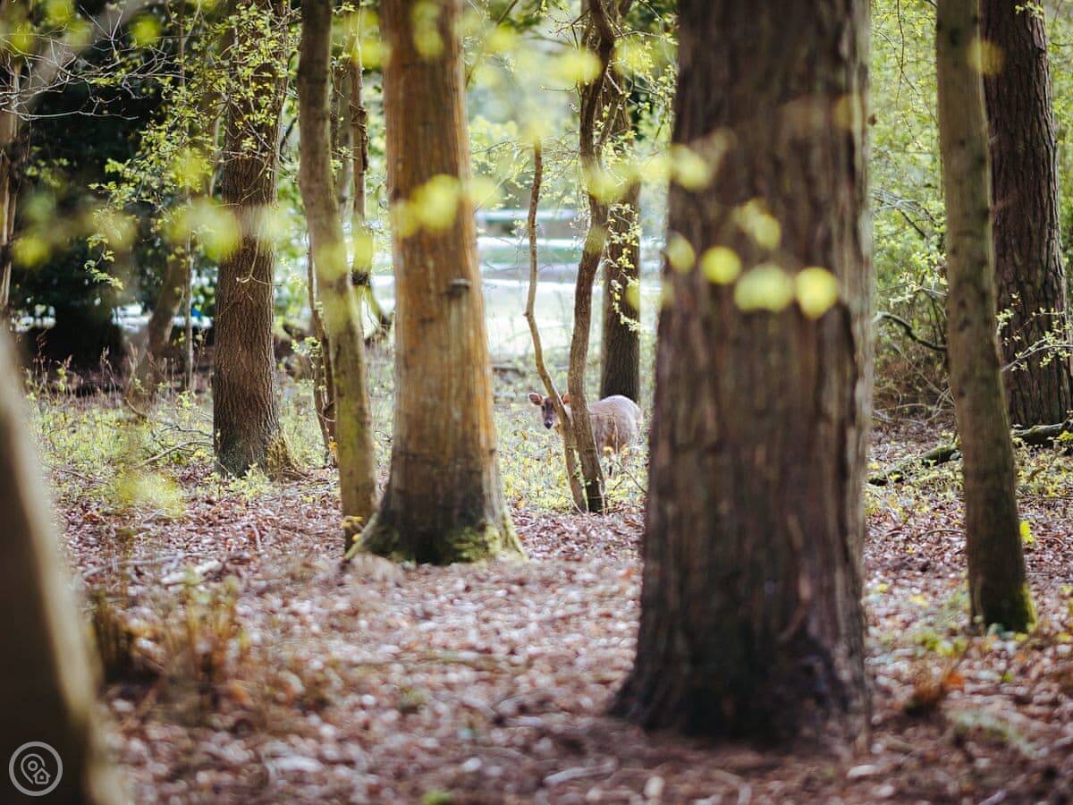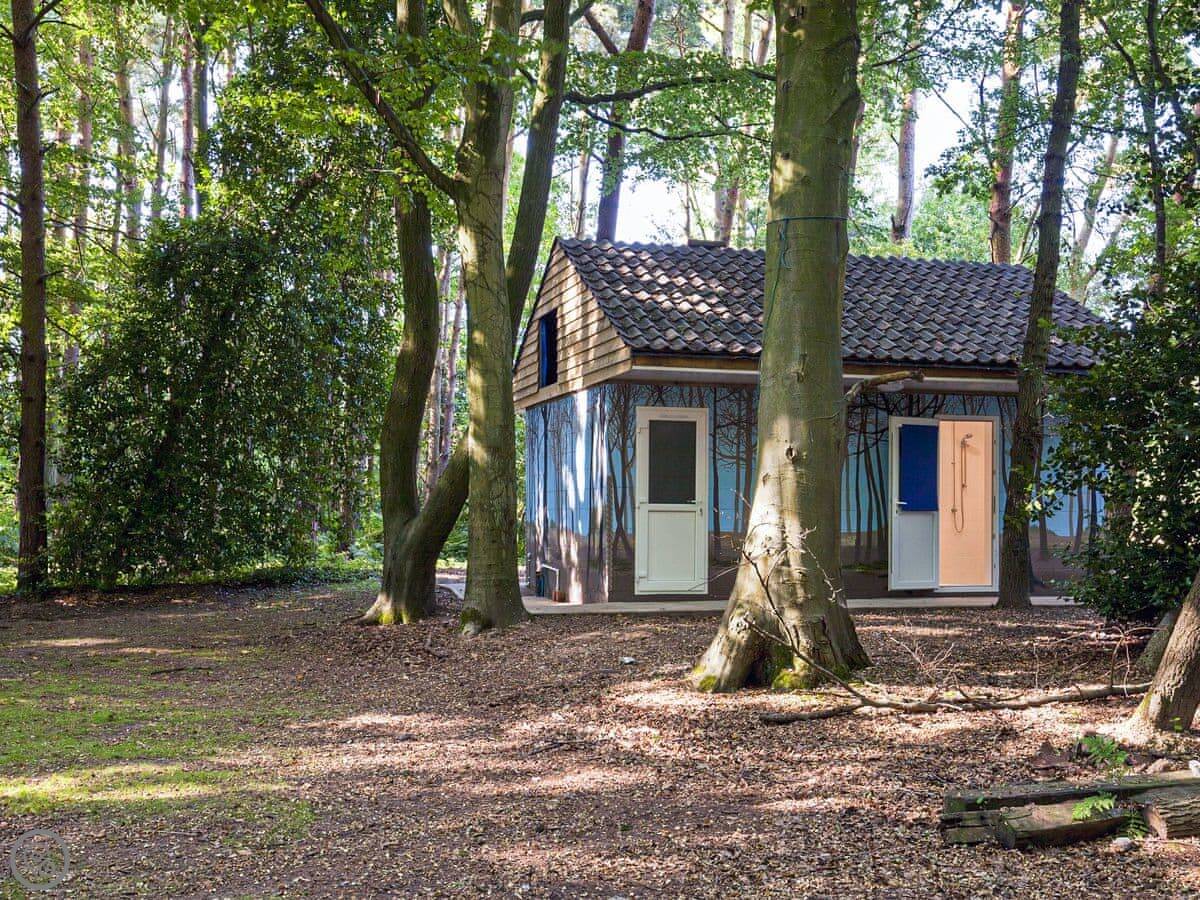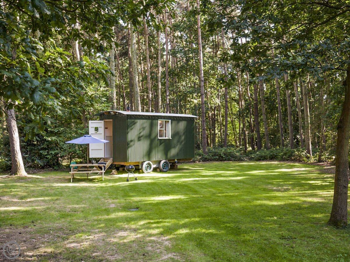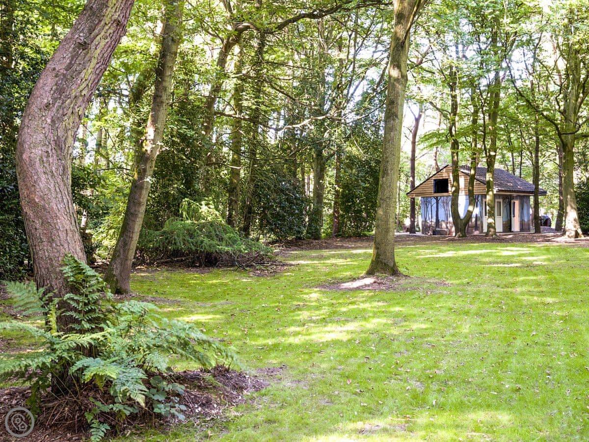 It's on a woodland site. The hut sits in its own bit of a clearing. The trees are mature and it feels very quiet. You get your own outdoor space with a barbecue.