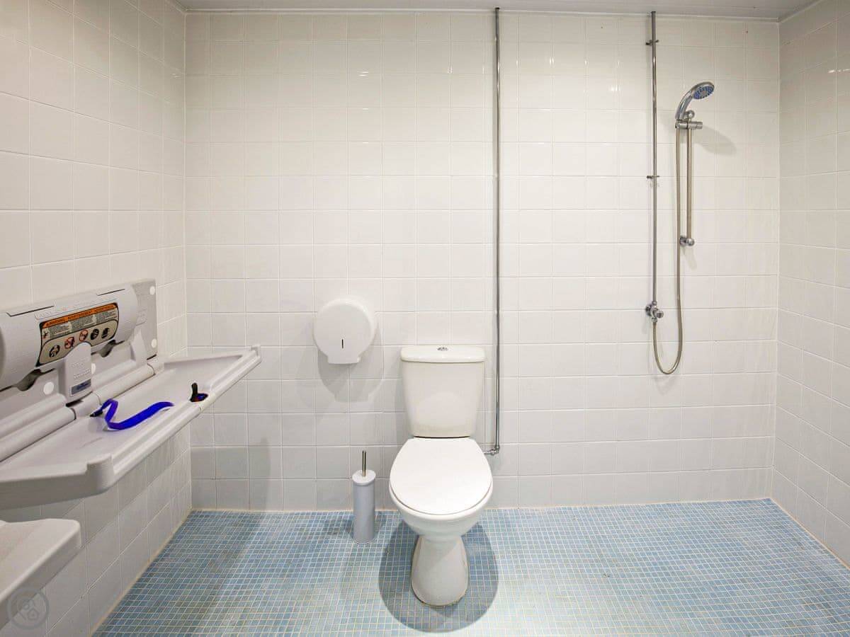 There's no bathroom in the hut itself. Your private bathroom is in a separate cabin about a thirty-second walk away through the trees. It has a proper hot shower and a flushing toilet. There's also a family bathroom on the site, closer to the other huts, which has a bath.