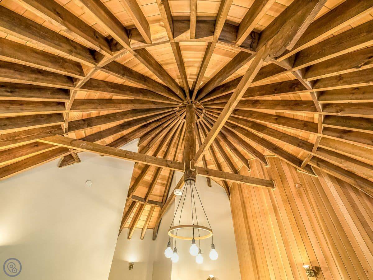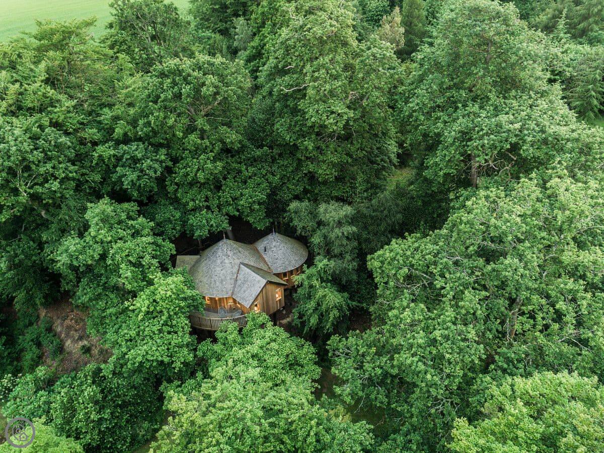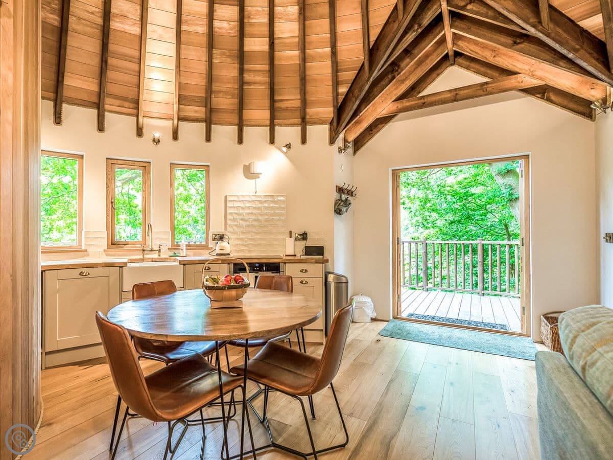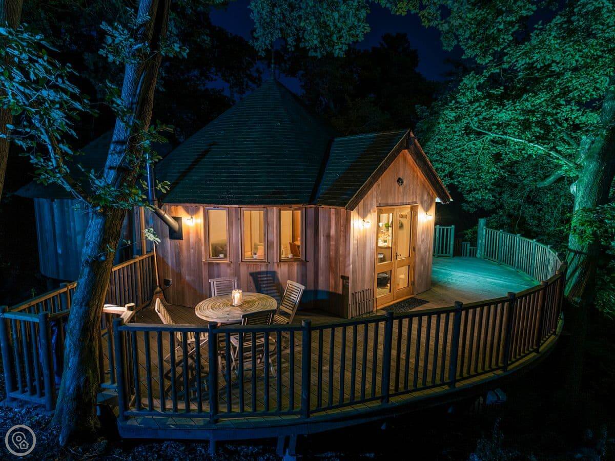 This stunning structure will not disappoint, from the luxurious copper freestanding bath with exquisite views over the 13 acres of grounds with their own woodlands to explore, to the extravagant beamed ceilings that protrude through the building. This magnificent treehouse offers unparalleled style and luxury. There are full facilities available, including two en-suite bathrooms with showers, a fully equipped kitchen, a barbecue and drinks deck at the front, which are heaped in style. No expense has been spared nor detail overlooked. The owners have catered for your every convenience, high above the woodland floor. A spiral staircase helps this treehouse reach new heights in luxury living, with its curved walls, it sits lightly in its environment, the sumptuous cedar cladding blending seamlessly with the well-rooted aged oaks. From the terrace you have exclusive views over the private lakes which surround the treehouse, as well as a bird’s eye view of Sussex clear skied starscapes from your own elevated abode. A stay at The Buzzardry lets you escape to the tranquillity of the treetops, allowing you to stay connected to nature as well as the outside world. The stylish interior is as effective space as it is elegant, and each window provides a framed, living perspective of the beauty of your leafy nest.