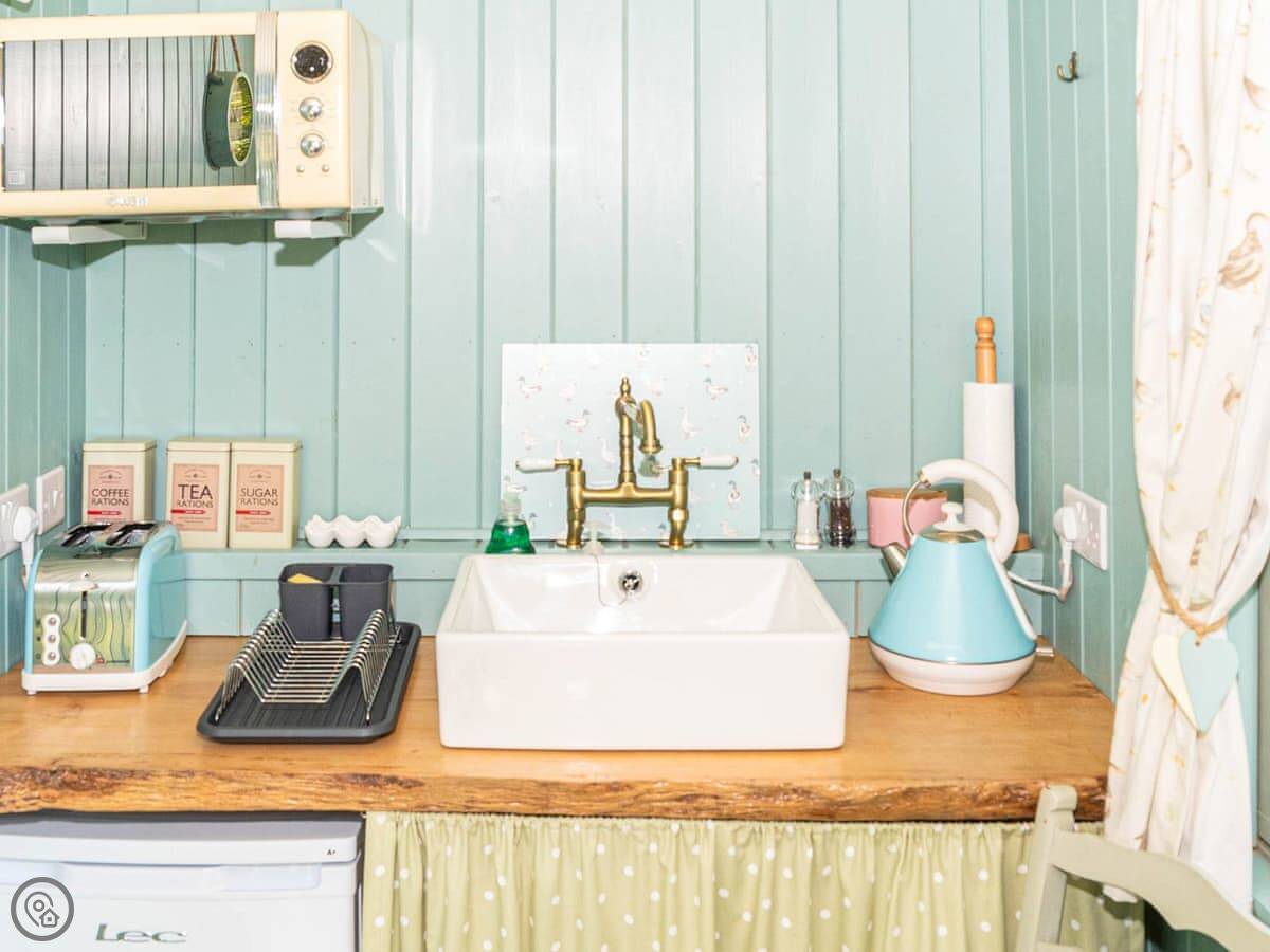 Brimming with traditional charm and character, this authentic travelling abode has been expertly equipped with a variety of added indulgences including its own private lazy spa hot tub for a relaxing soak. The property has been delightfully designed with separate kitchen and bathroom huts sitting conveniently either side. Guests can enjoy a selection of deluxe amenities including underfloor heating in all three spaces, high-speed Wifi to keep you connected as well as full bathroom facilities with a hot rainfall shower and flushing toilet. The site is wonderfully positioned on the border between Norfolk, Cambridgeshire and Lincolnshire offering an interesting mix of things to do and see, combined with a cosy space to unwind and snuggle up in the evenings. The caravan and adjoining shepherds huts are set in their own private garden sheltered by a large garden fence with trees and shrubs around the outside. You will find outdoor decking and sun area to sit out and enjoy the warm summer evenings, while a gas barbecue is available for guests to use at their pleasure. In addition, the site is home to a few lovely goats all with their own distinctive character, which adds to the authentic appeal of the place.
