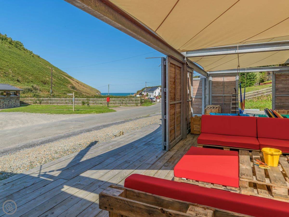 It sleeps four, but it's all in one open-plan bedroom. So it's good for a family or friends who don't mind that. It's got a 3 Star rating. It's clean and functional, not hotel-standard luxury. The idea is it's a base for doing things. You're basically two hundred yards from the beach at Cwmtydu. It's a pebble beach, nice and quiet. There's a cafe there too.
