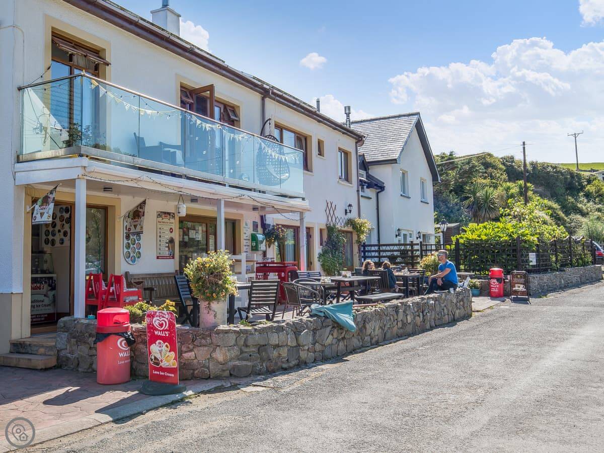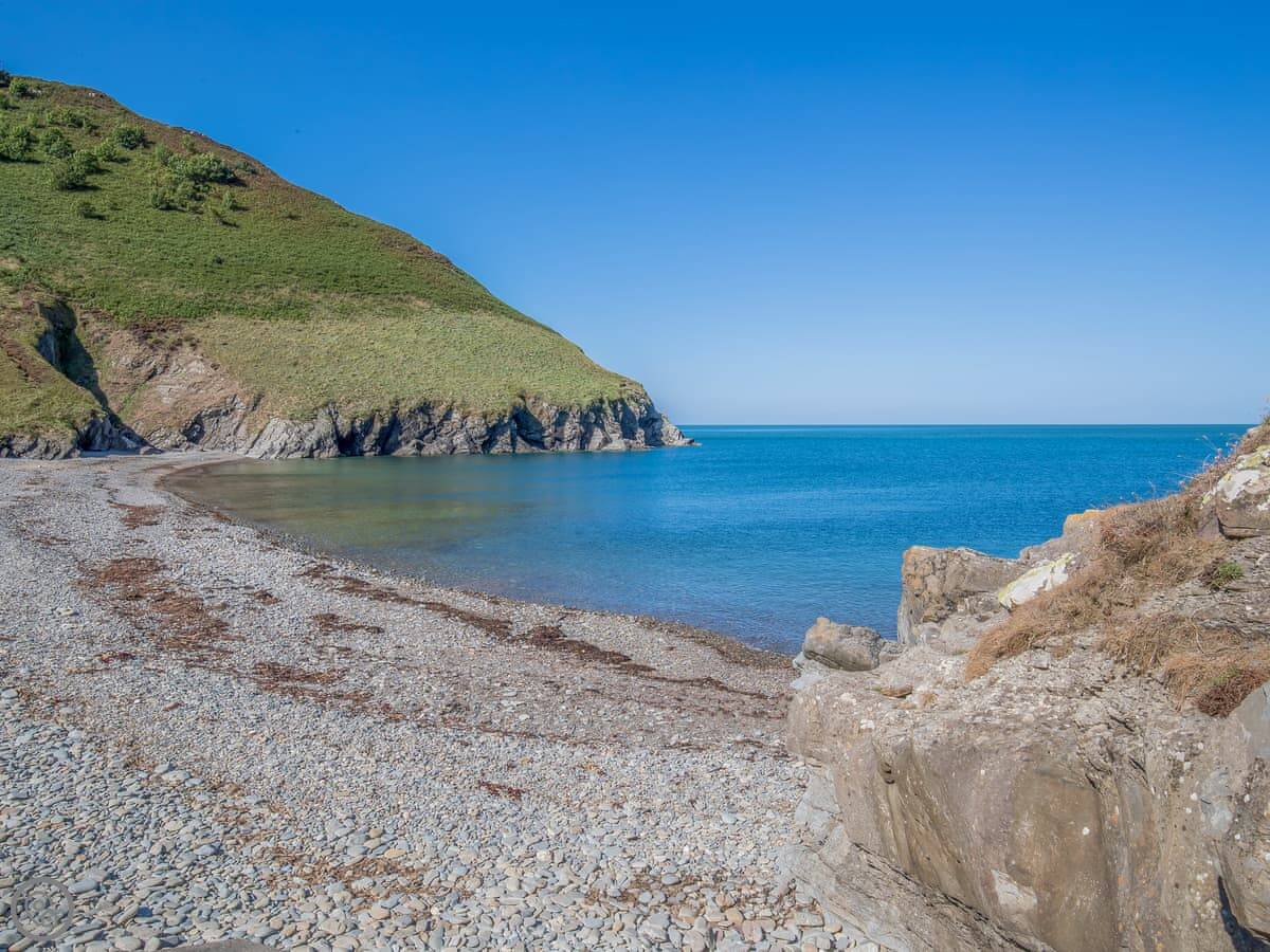 The beach is a couple of minutes walk down the lane. It's pebbly. There's a small cafe there. The Wales Coast Path runs right past, so you can walk from the door.