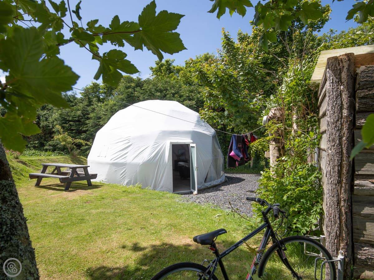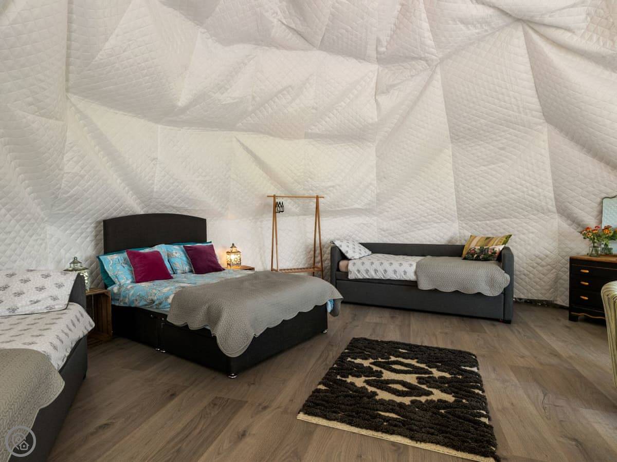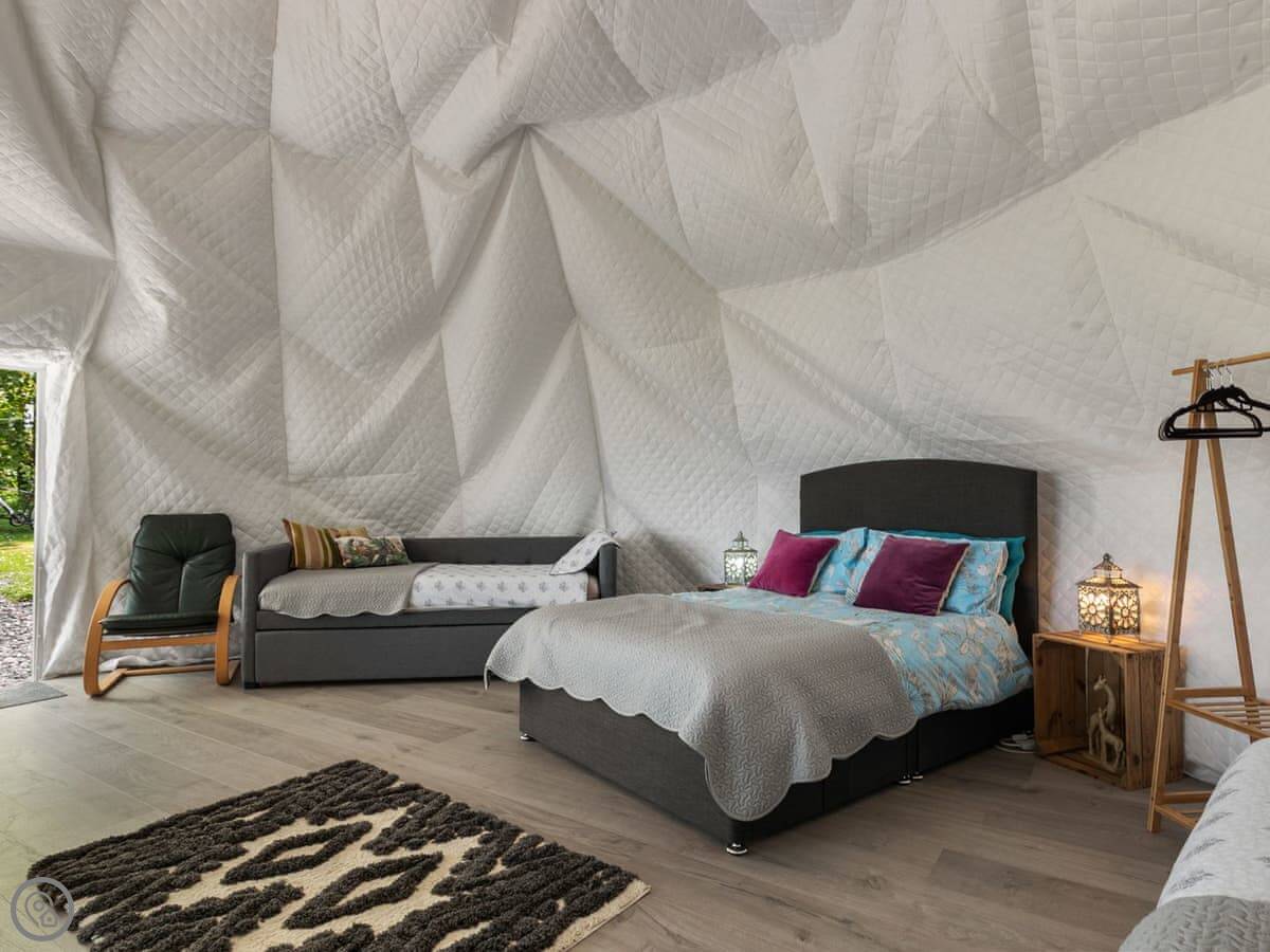 It sleeps four, but it's one bedroom. There’s a proper double bed and then bunk beds in the same room. It's a 4 Star, which for glamping means it's well equipped and comfortable. You can bring one dog.