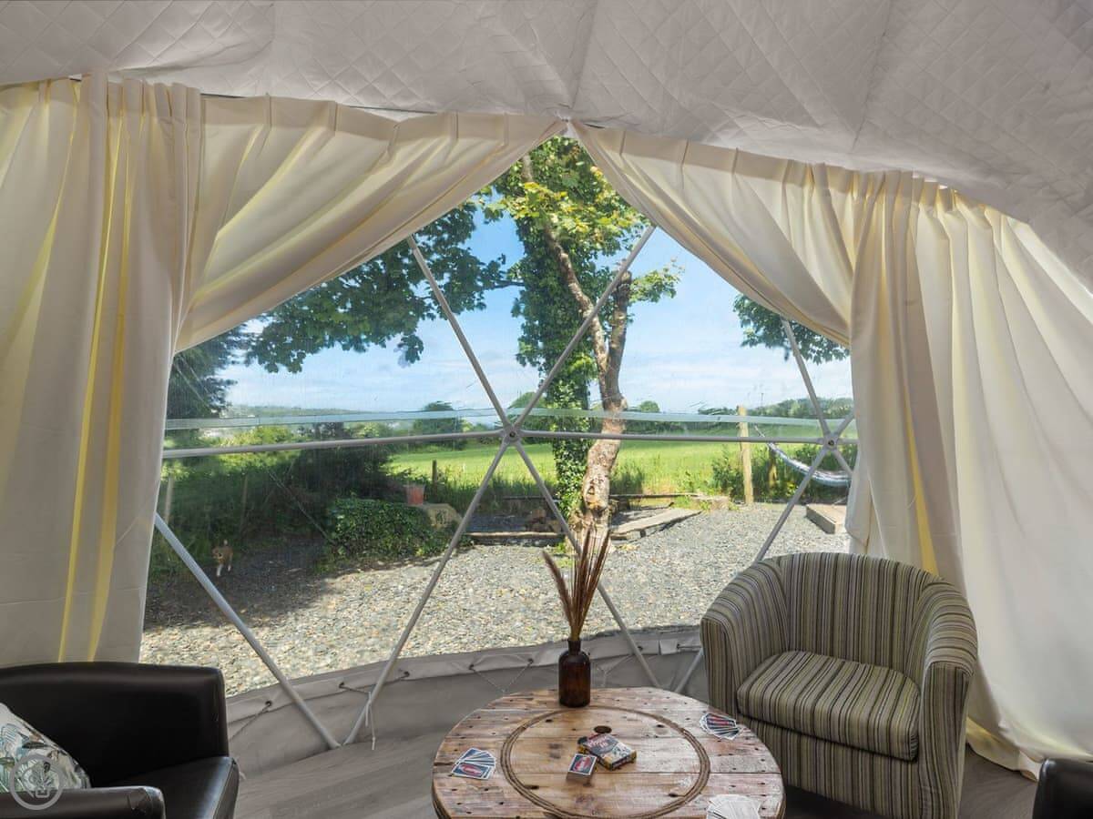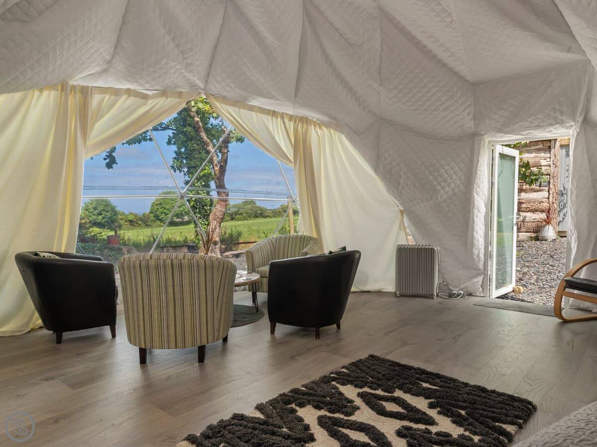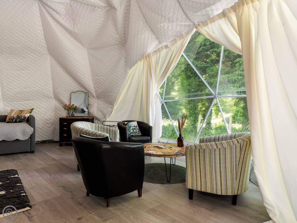 It sleeps four, but it's one bedroom. There’s a proper double bed and then bunk beds in the same room. It's a 4 Star, which for glamping means it's well equipped and comfortable. You can bring one dog.