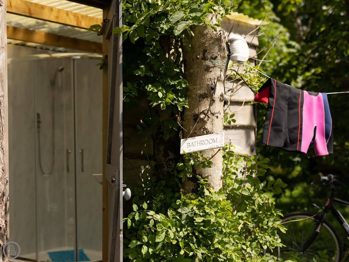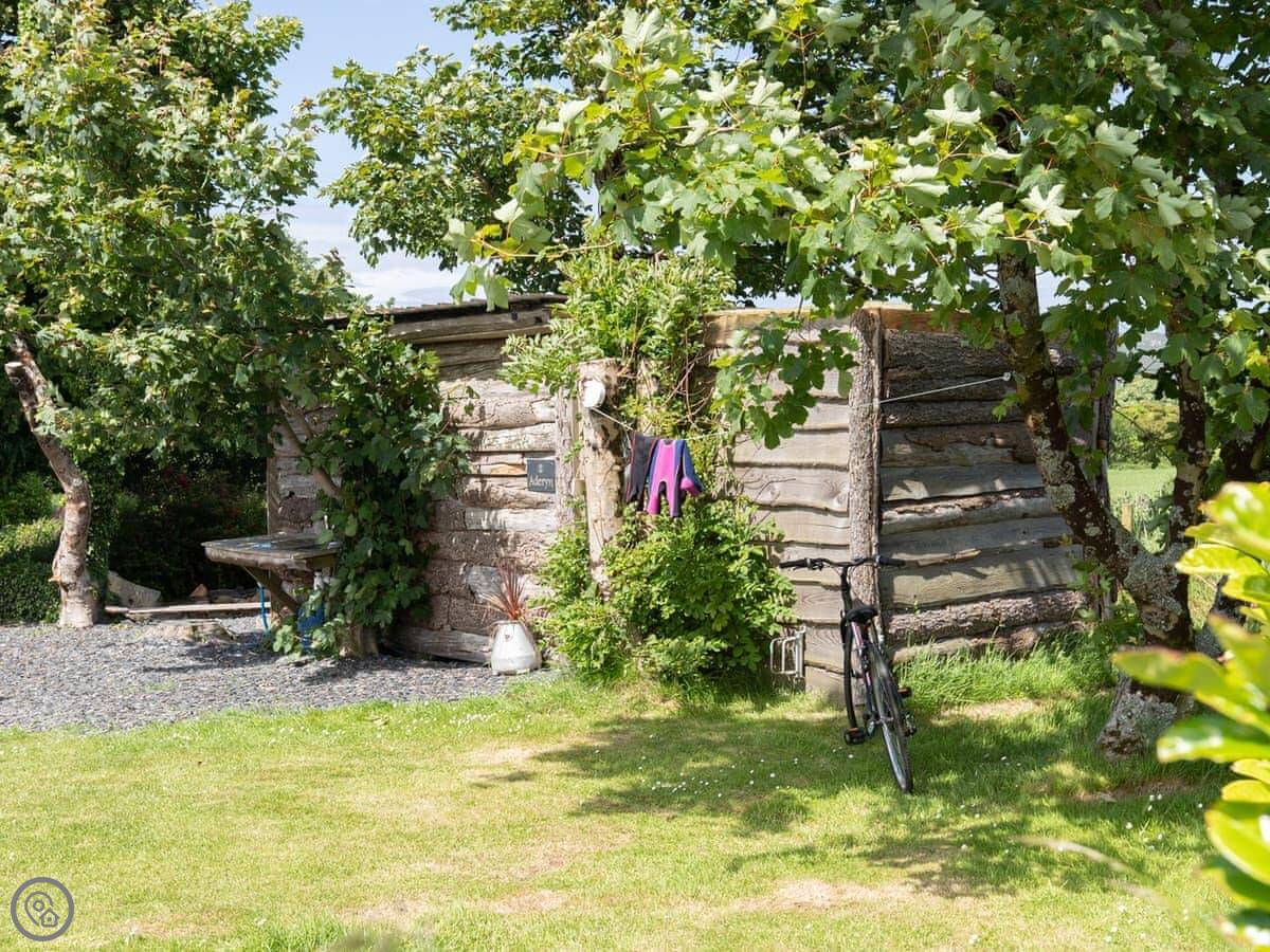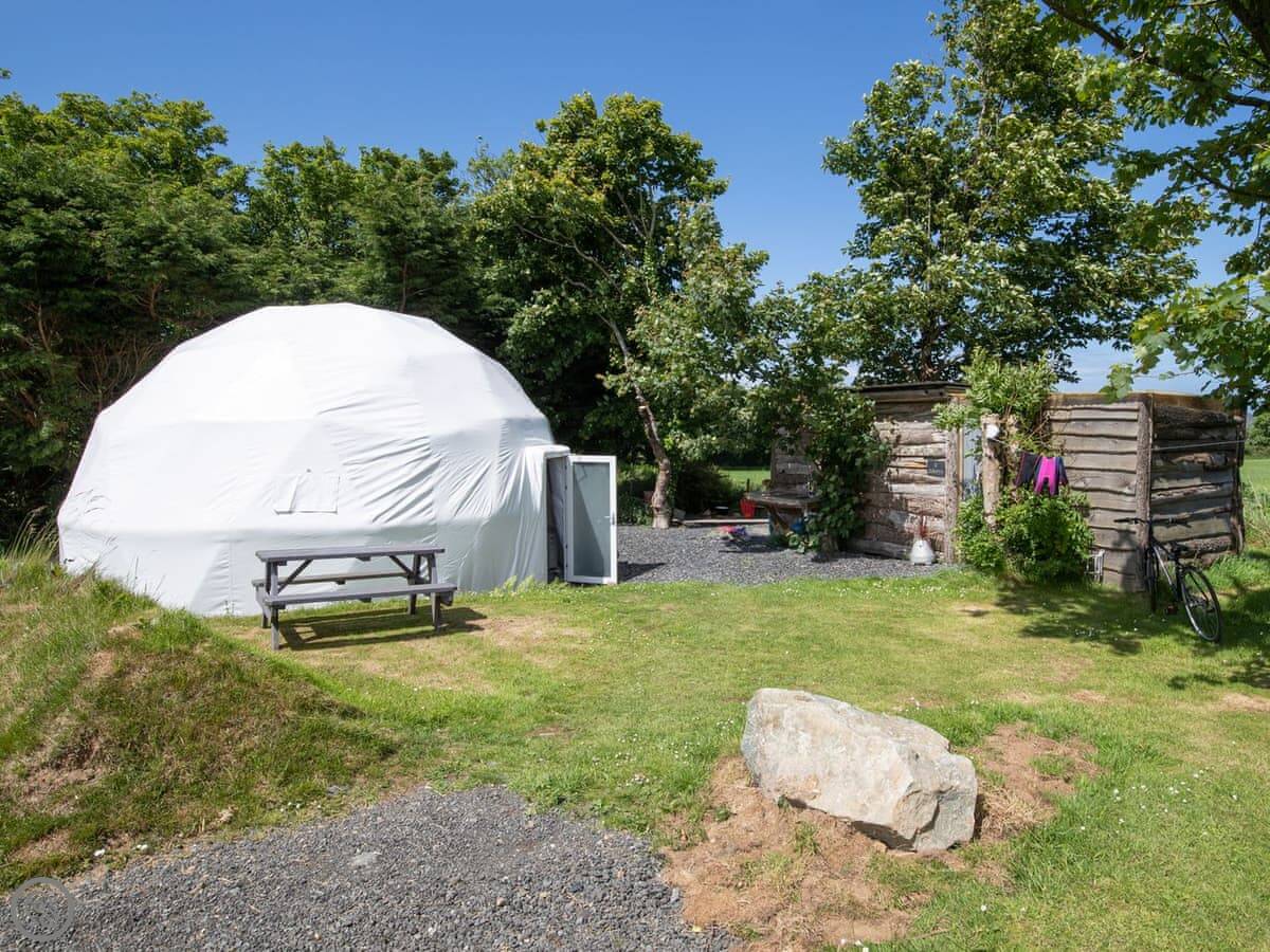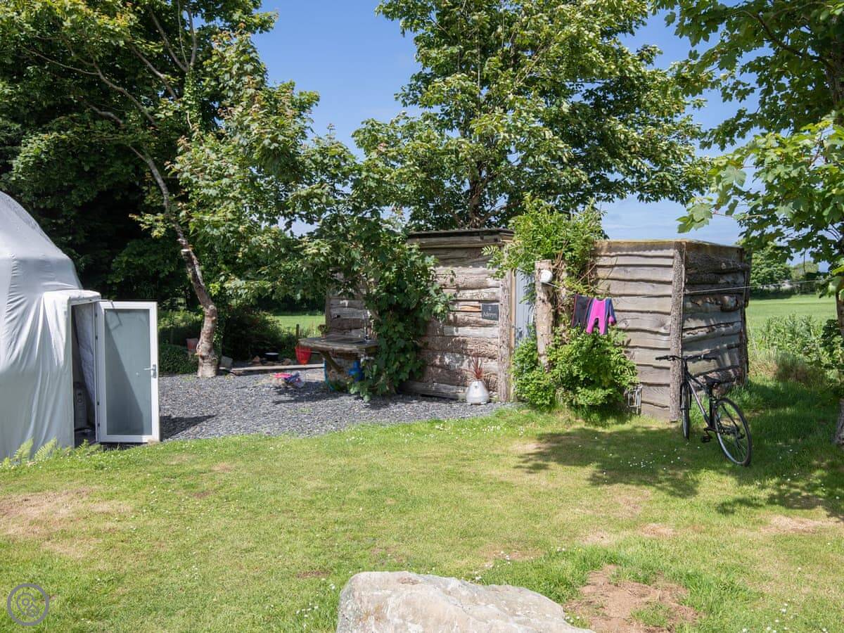 Aderyn is a glamping hut on a 6-acre site just outside Fishguard. You're less than a mile from the coast. It's not one big field, each pitch has its own private space with a garden, plus a separate hut for the kitchen and shower.