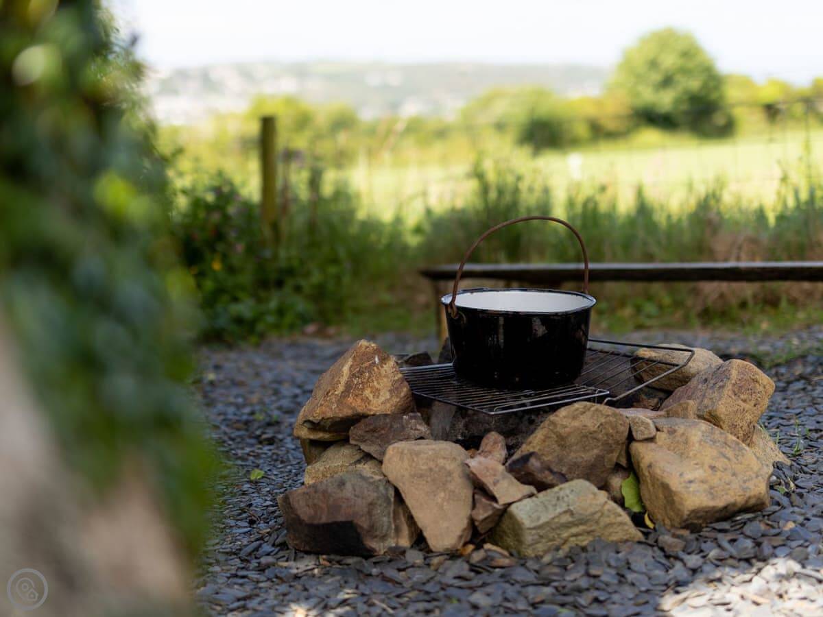 The site has lovely views over Fishguard Bay. There are hammocks and benches dotted around. You get your own fire-pit. On a clear night, the stars are amazing because there's not much light around.