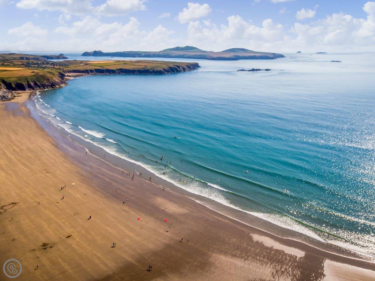 You can walk into Fishguard. It’s a proper west Wales town with a few pubs, cafes, and shops. It hosts things like the folk festival. The coast path is right there. The beaches here are a mix of sand and pebble, and it’s quieter than the south of the county.