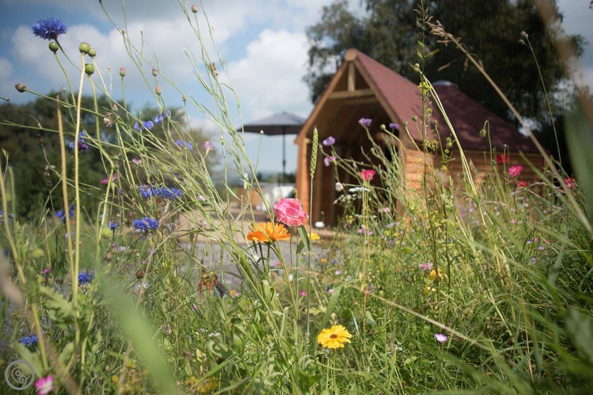 The main thing is the view. You look straight out over the fields towards Snowdon. You get your own bit of garden, which we let grow with wildflowers.