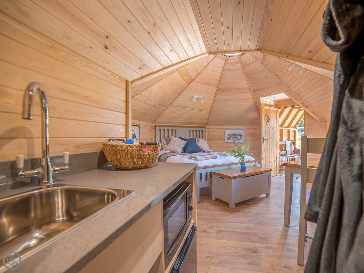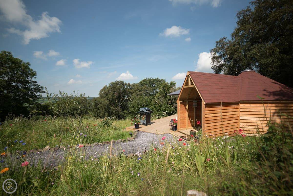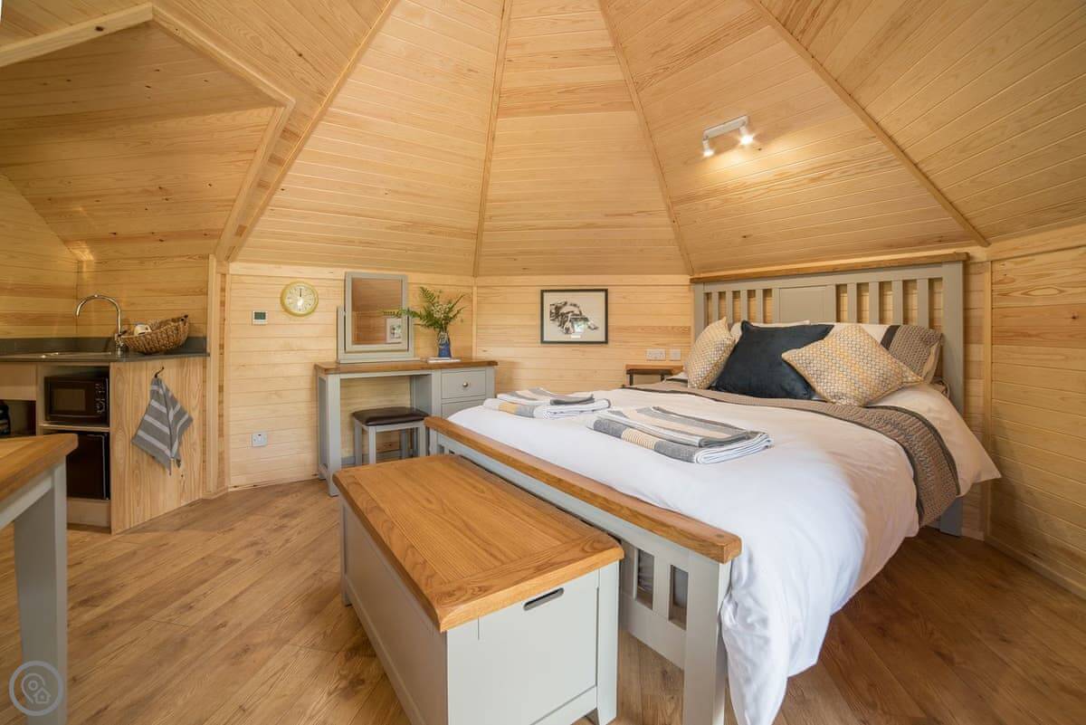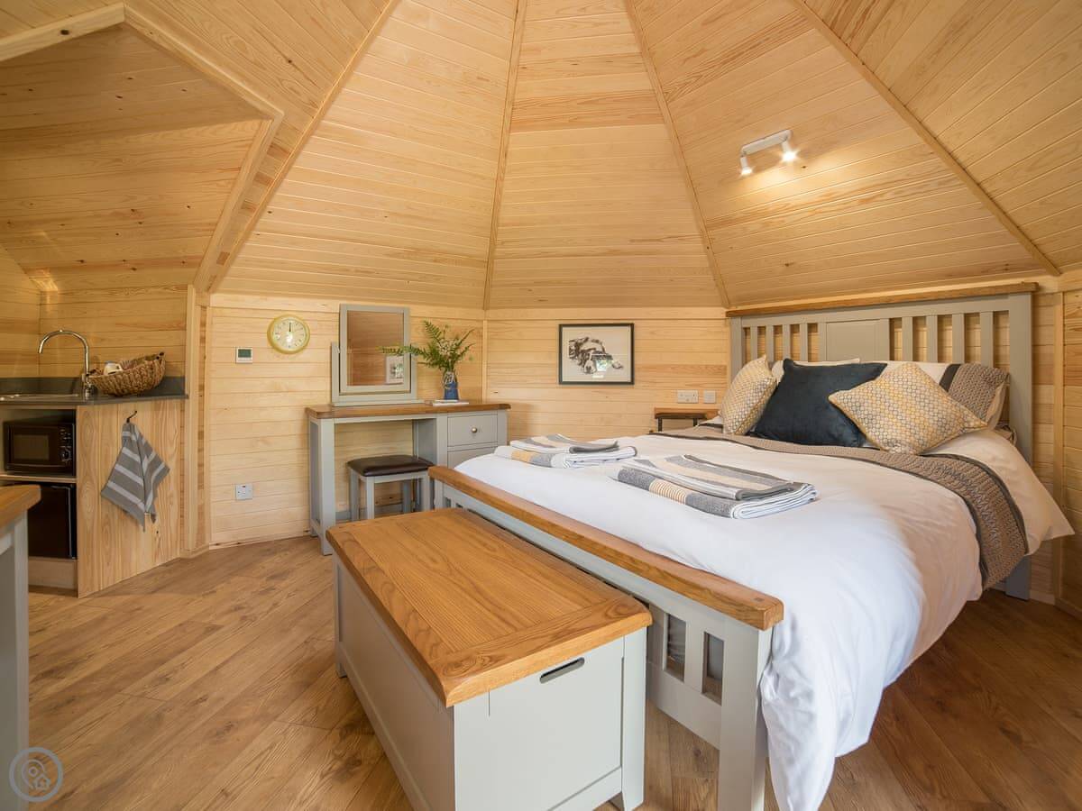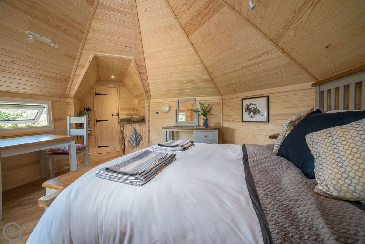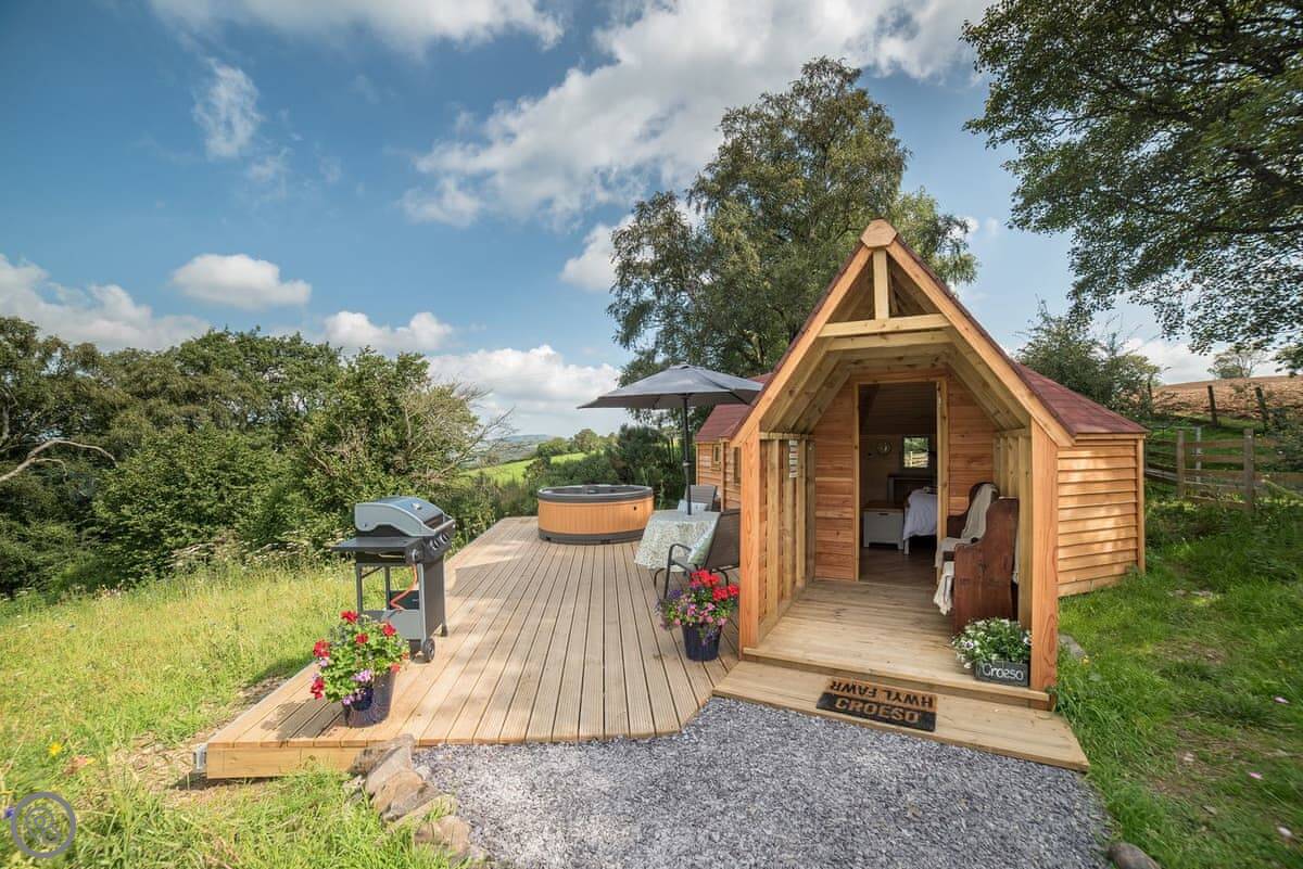 This is Dol Y Mynydd, our place near Pandy Tudur in Conwy. It's a cabin for two, just the one bedroom and bathroom. It's got a 5 Star rating, which is nice, but I'd say it's more about it being really well-kept and comfortable than being posh.