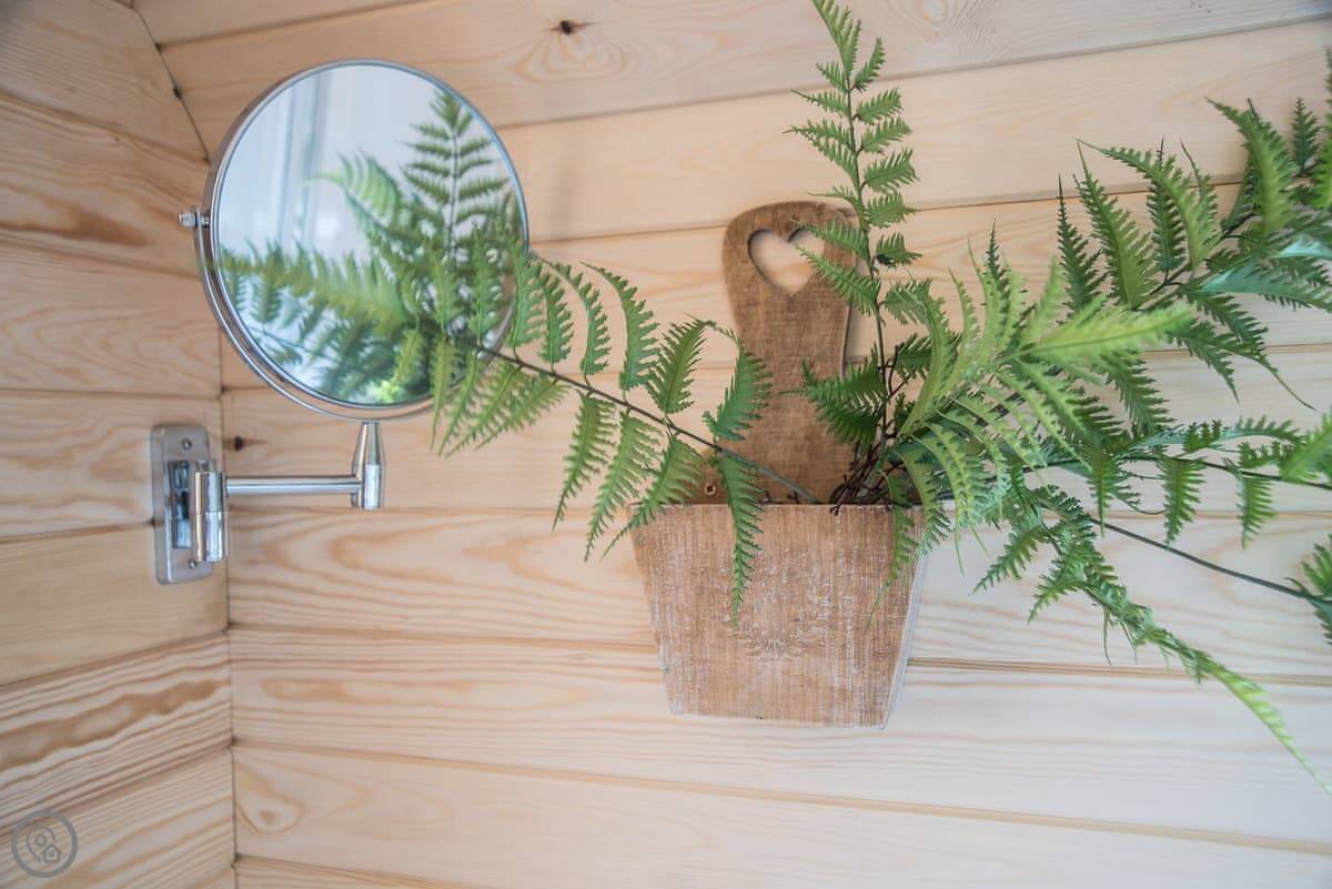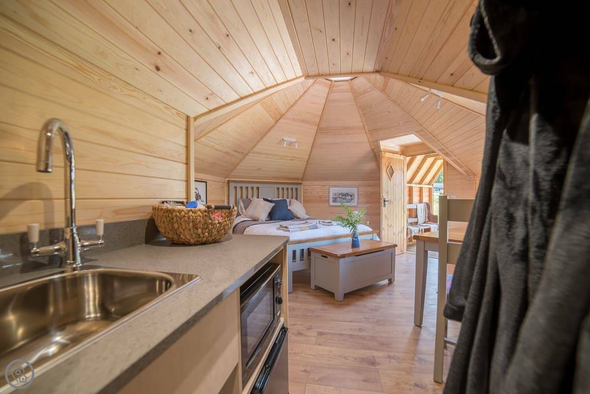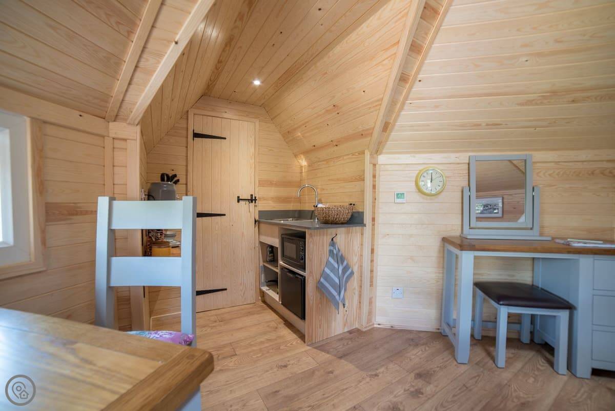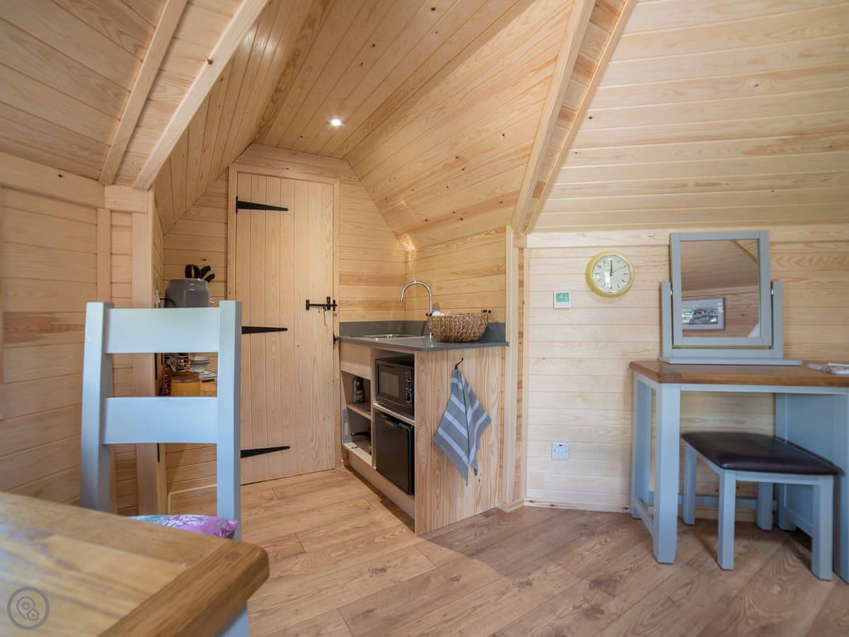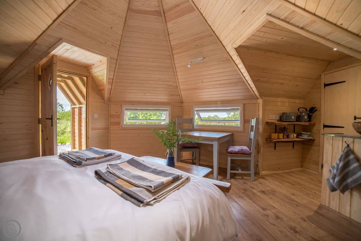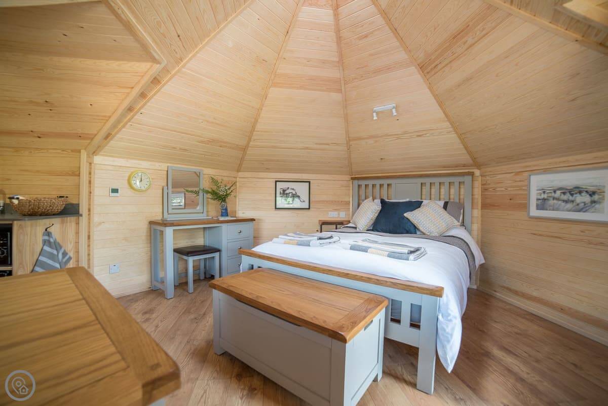 This is Dol Y Mynydd, our place near Pandy Tudur in Conwy. It's a cabin for two, just the one bedroom and bathroom. It's got a 5 Star rating, which is nice, but I'd say it's more about it being really well-kept and comfortable than being posh.