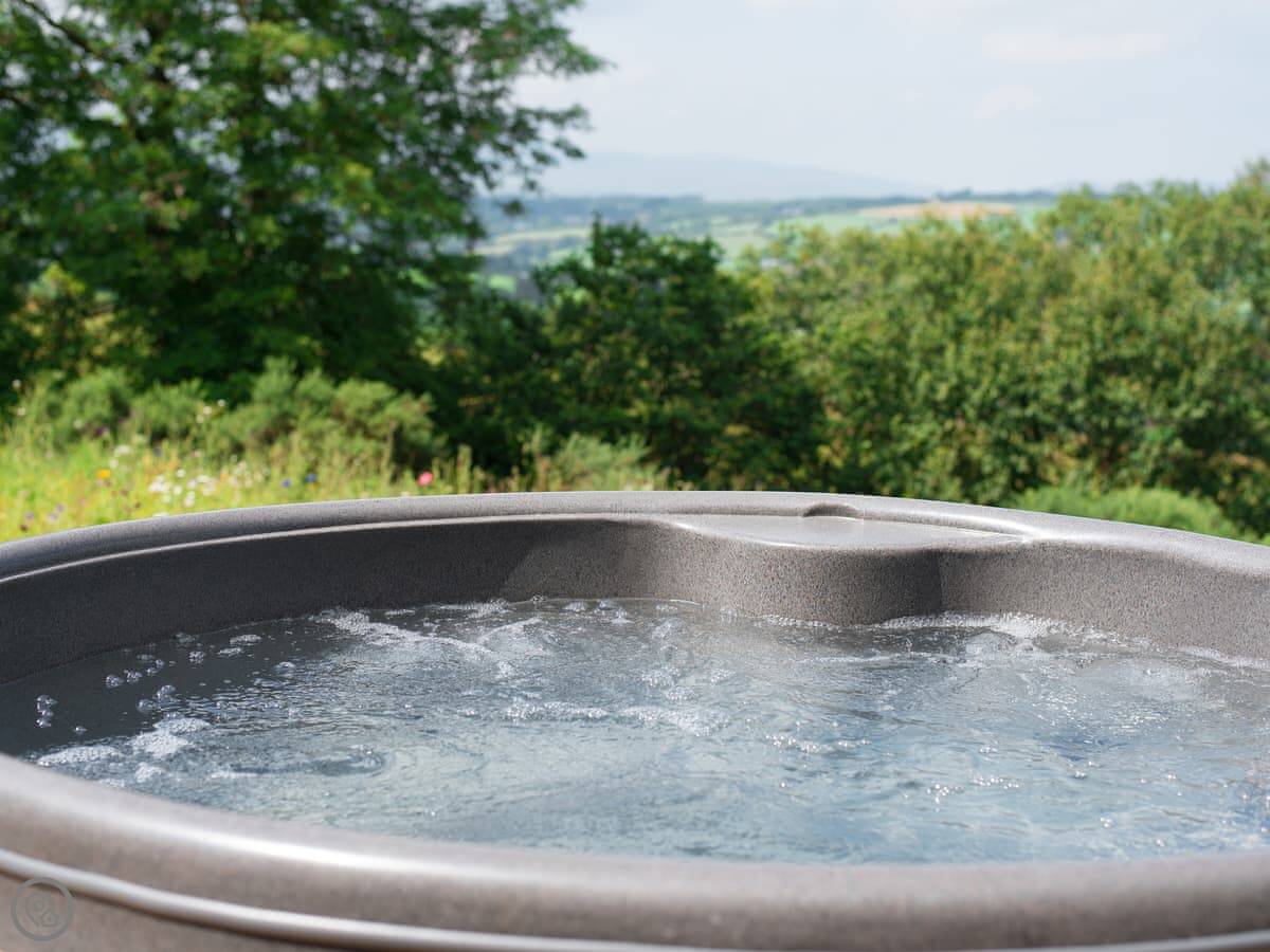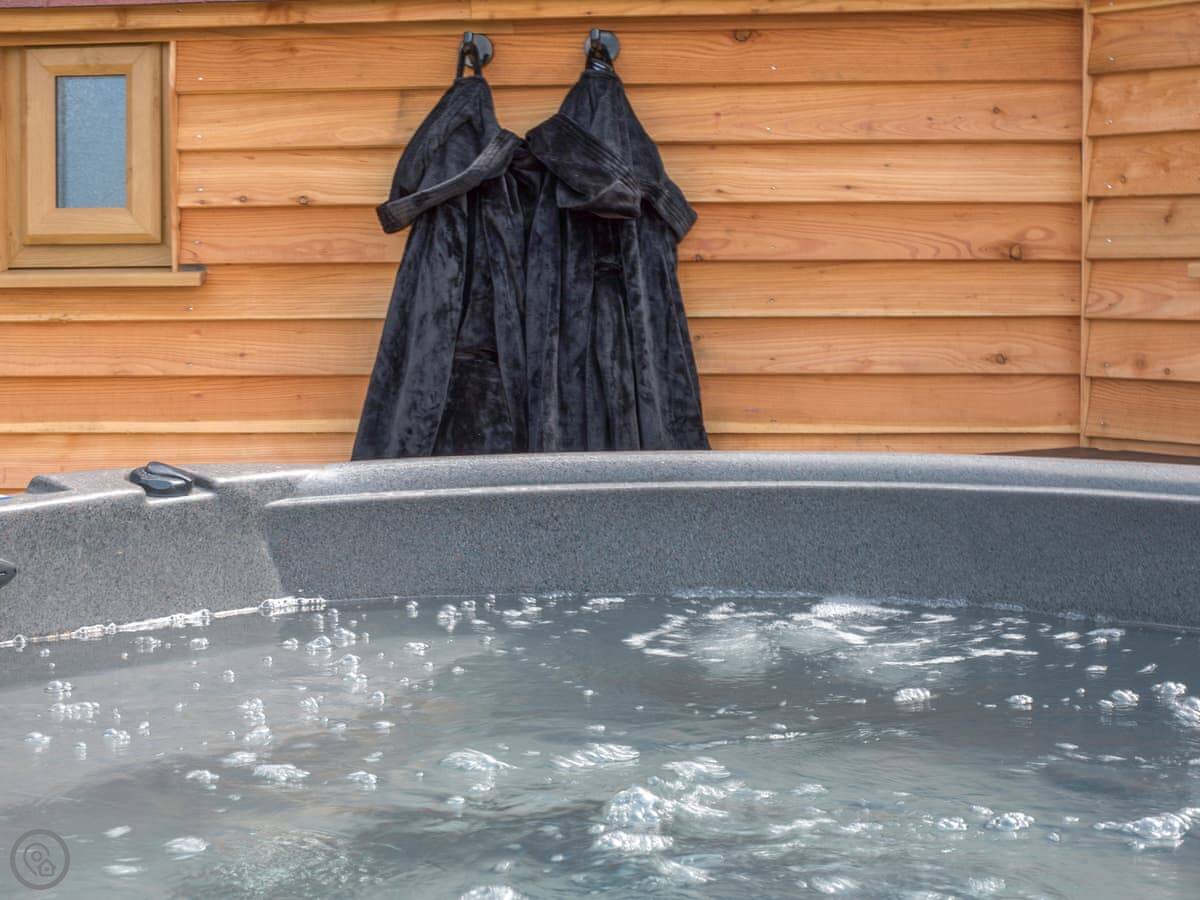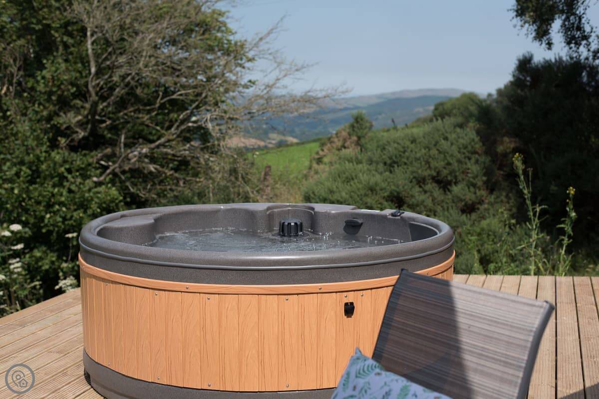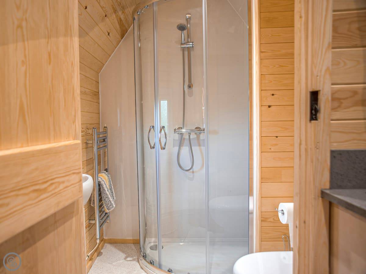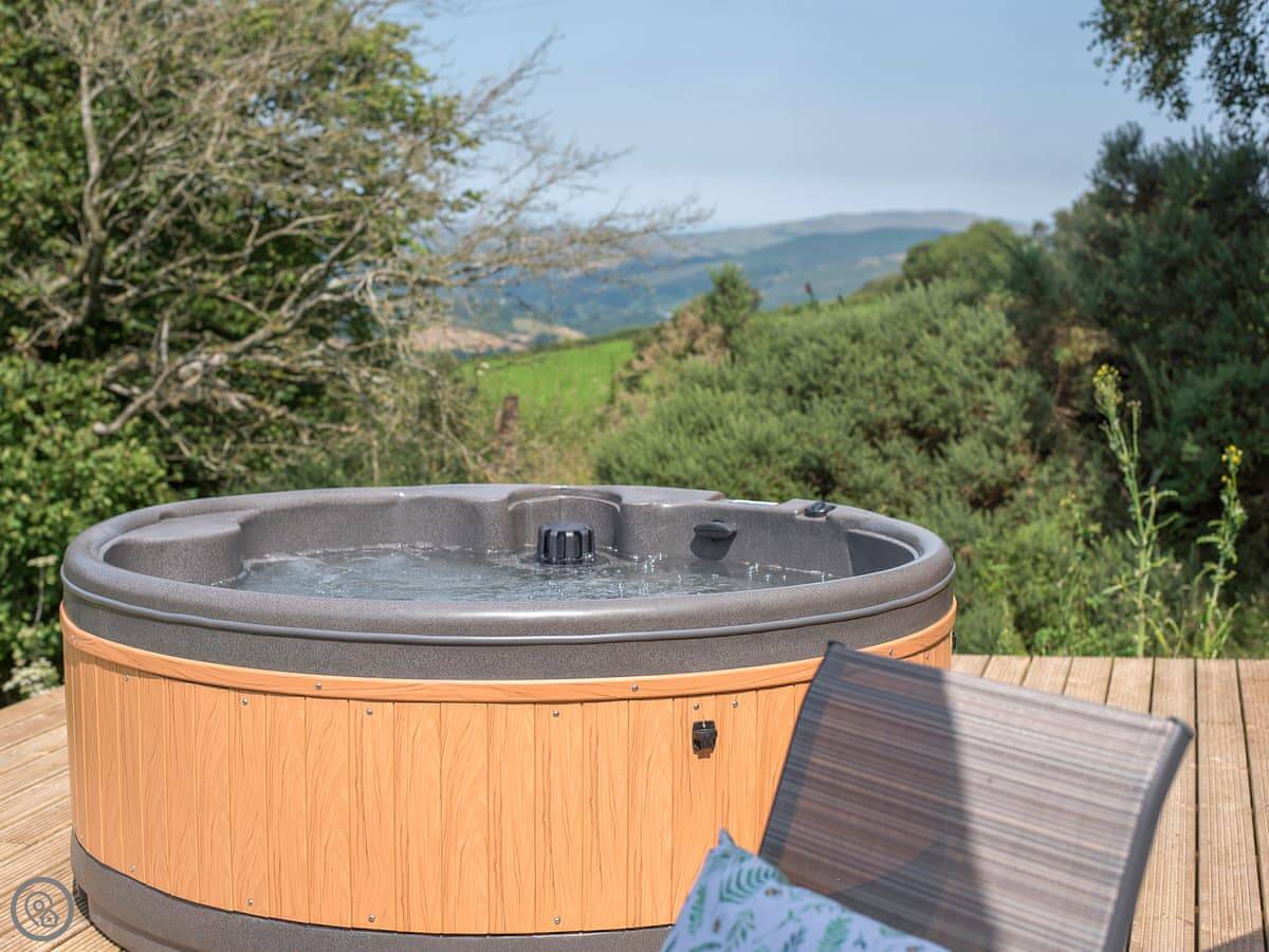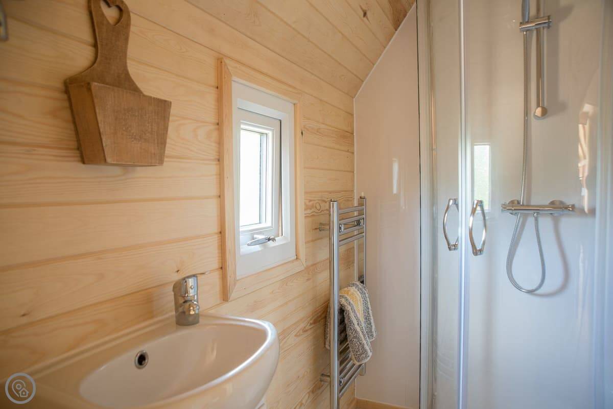 Facilities-wise, everything's included. There's parking right there, bedding and towels are provided, and you've got a shower and a patio with a barbecue. No pets, I'm afraid. It's attached to another cabin called Cwt Celyn, so you could book both together if there were four of you.