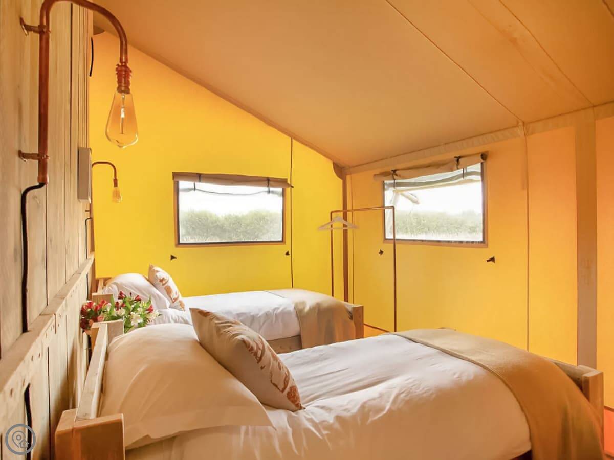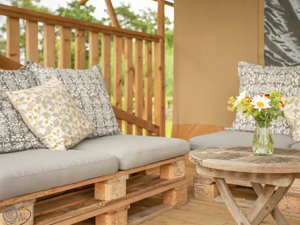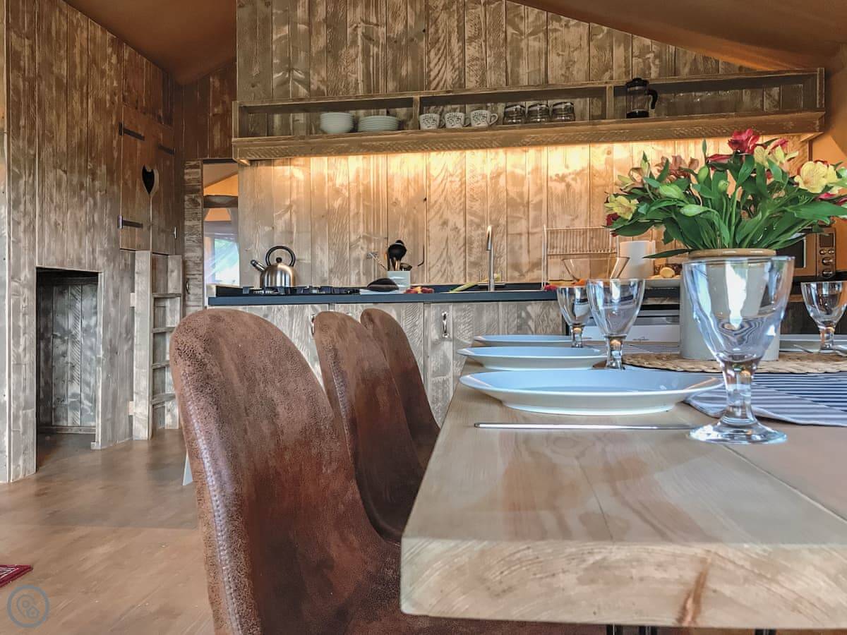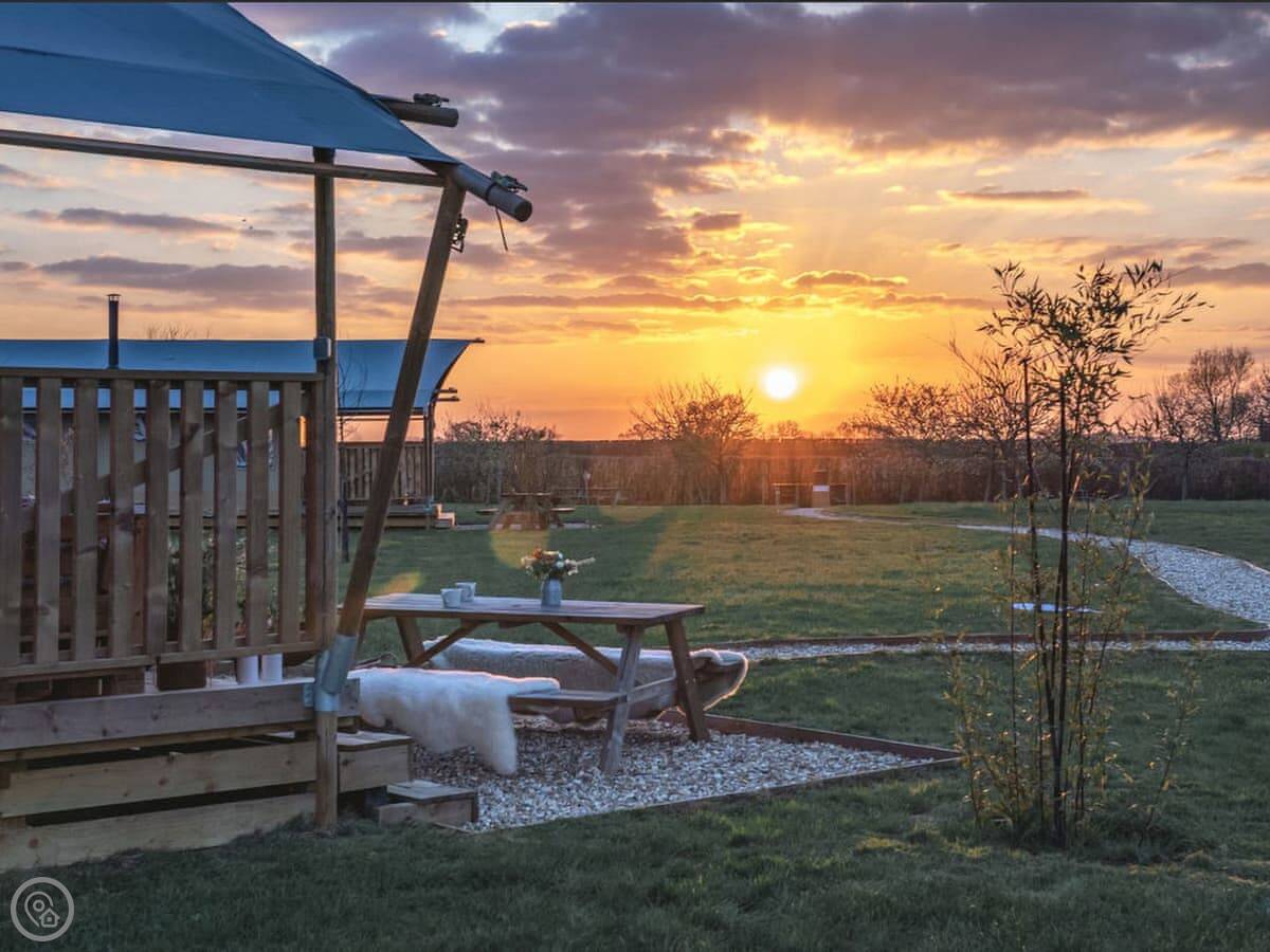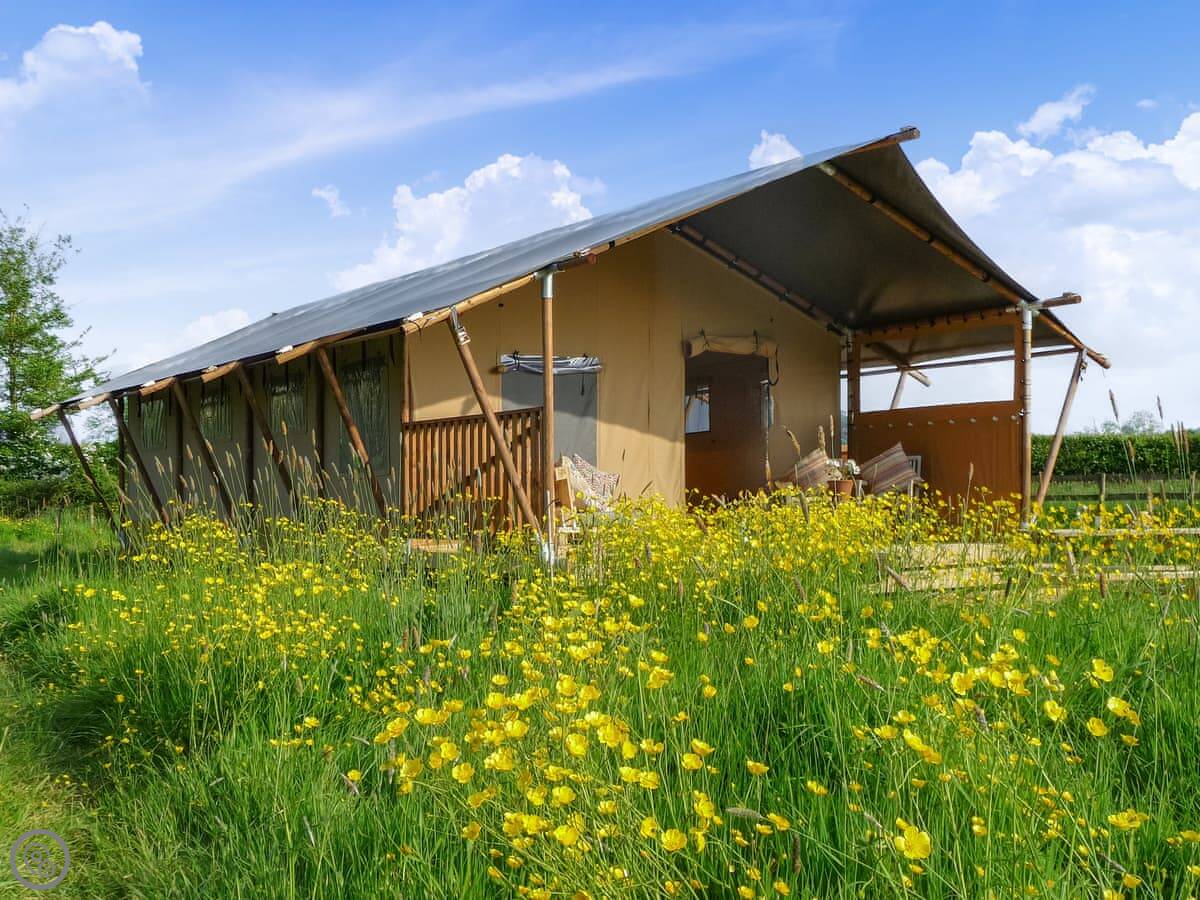 Russet Lodge is a safari-style cabin on a small glamping site in Coxbridge. It's on the Somerset Levels, about ten minutes by car from Glastonbury.