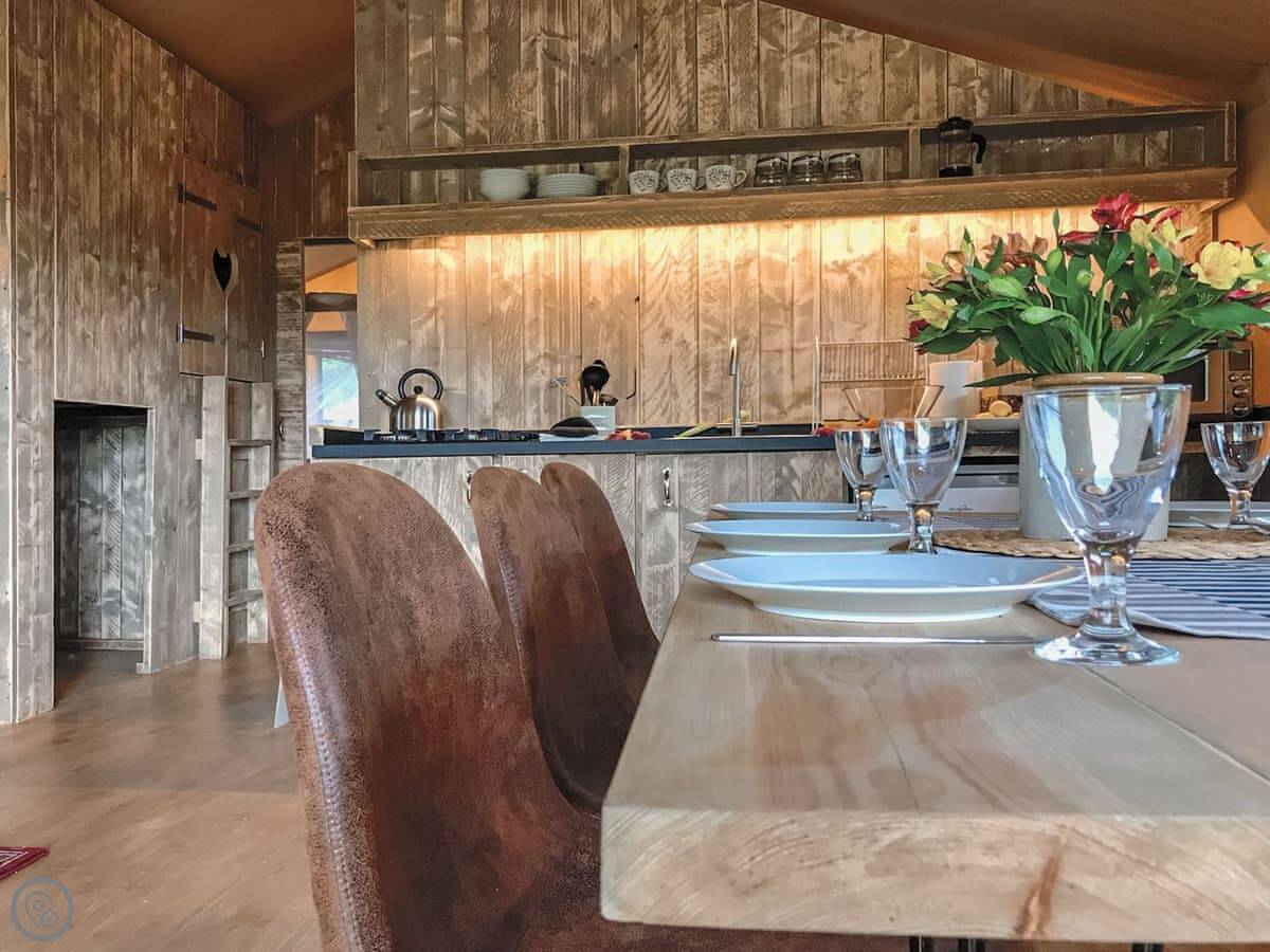 It sleeps six. Three bedrooms, one bathroom. It’s got a 4 Star rating. The main space is open plan, with a kitchen, lounge, and a woodburner. Everything’s on the ground floor and it’s wheelchair accessible. There’s a private veranda with a barbecue.