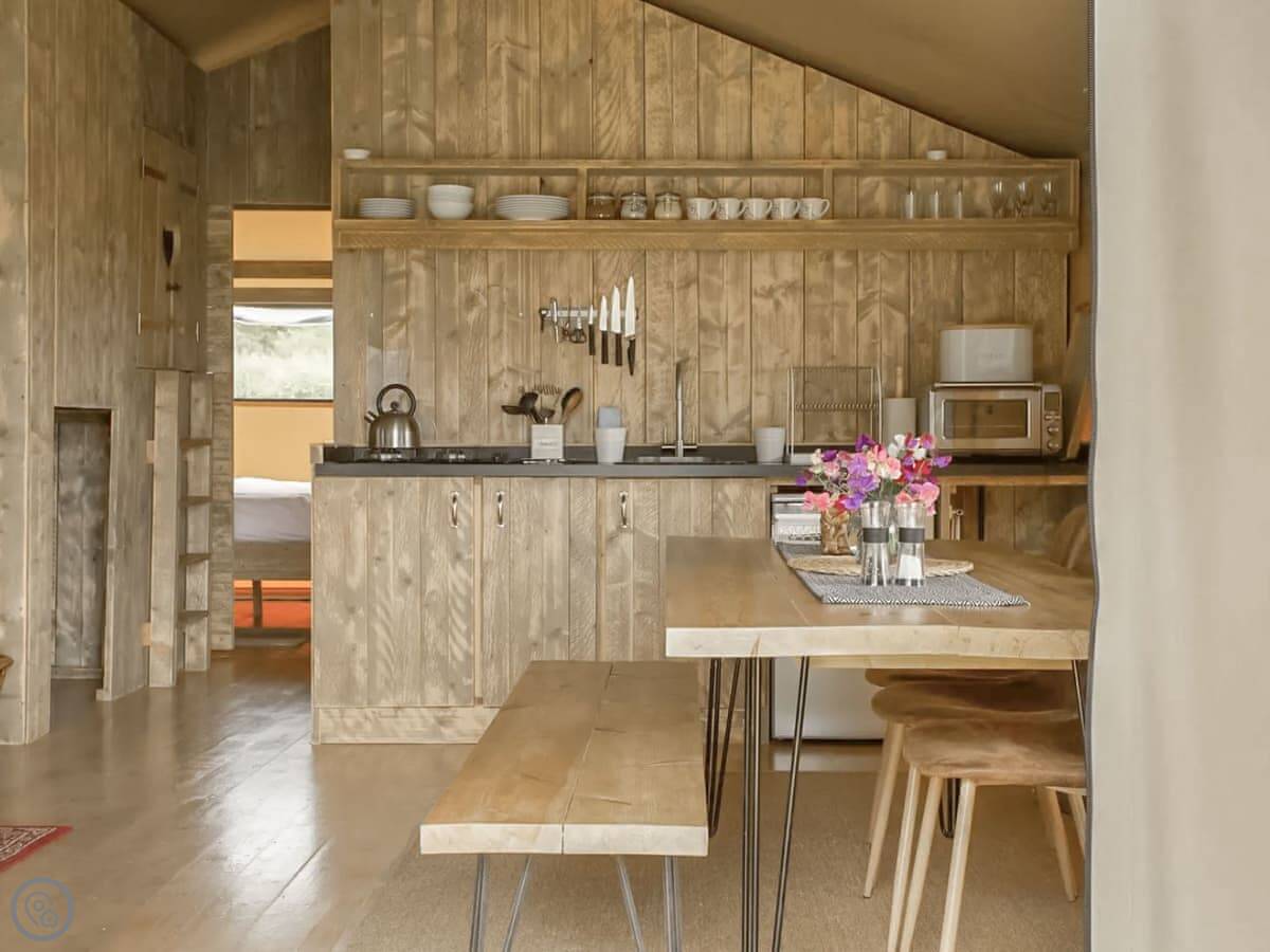 Pippin Lodge is in Coxbridge. It’s a safari lodge on a site with three others, set in a field on the Somerset Levels. You’re about ten minutes' drive from Glastonbury.