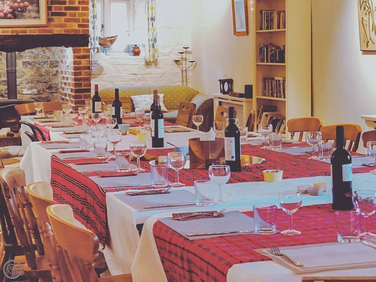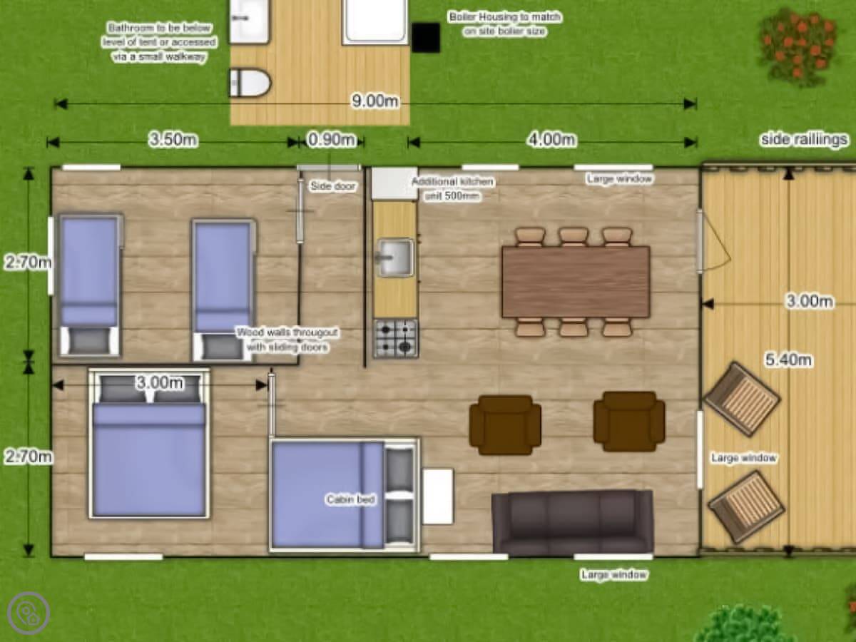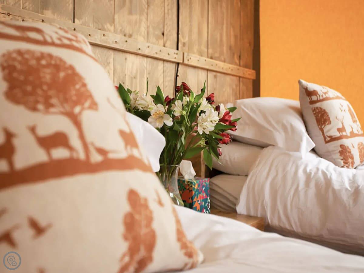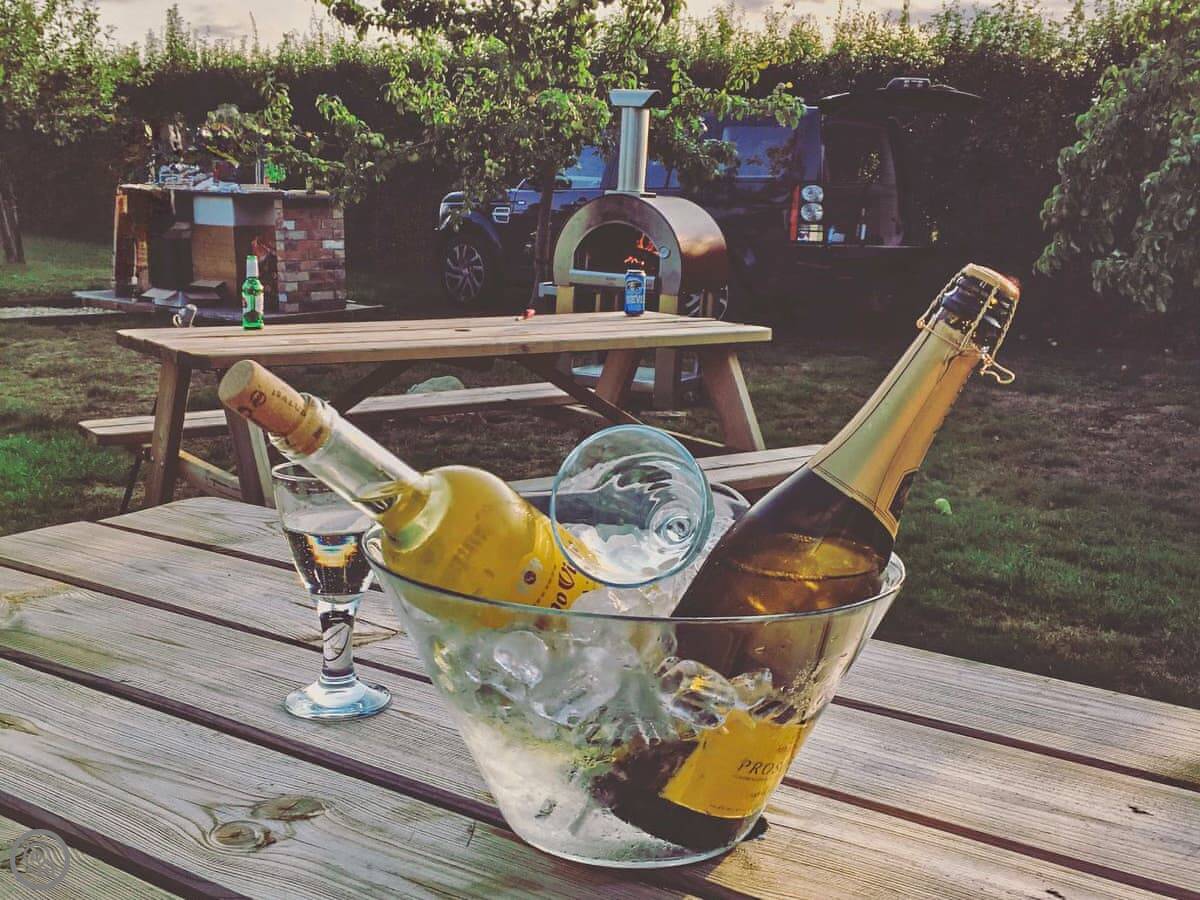 The site has a communal games room with a pool table and table tennis. There’s also a shared area in the orchard with a wood-fired pizza oven and a firepit. You can borrow bikes. The field is a wildflower meadow with paths through it.