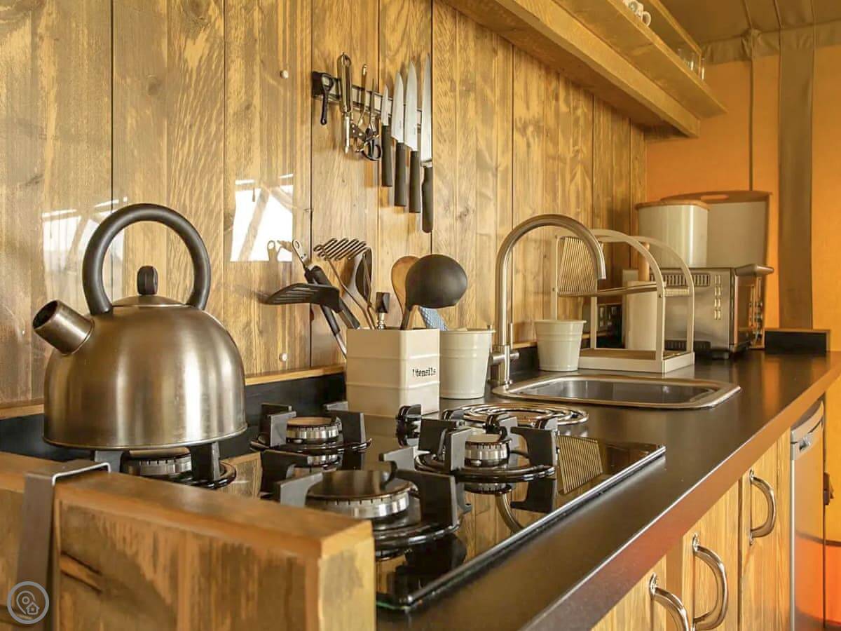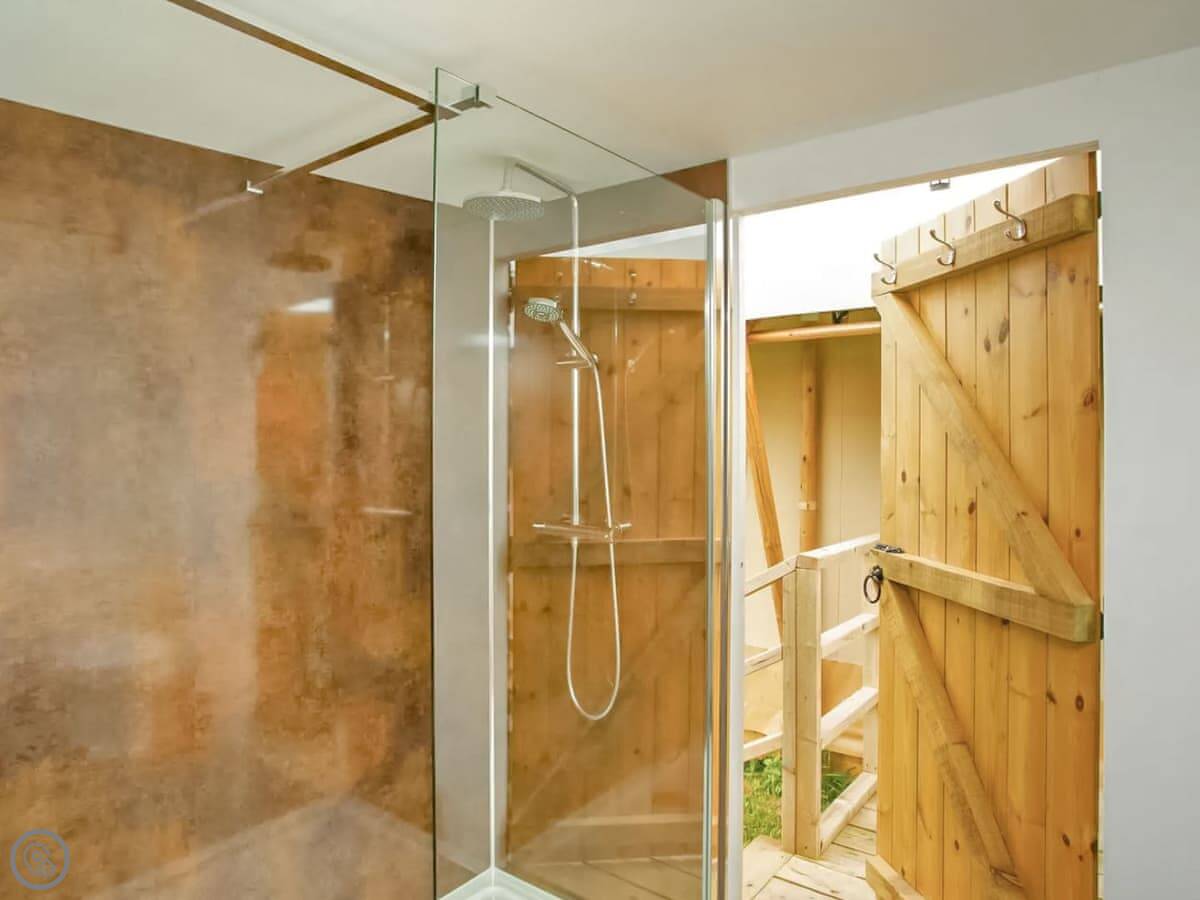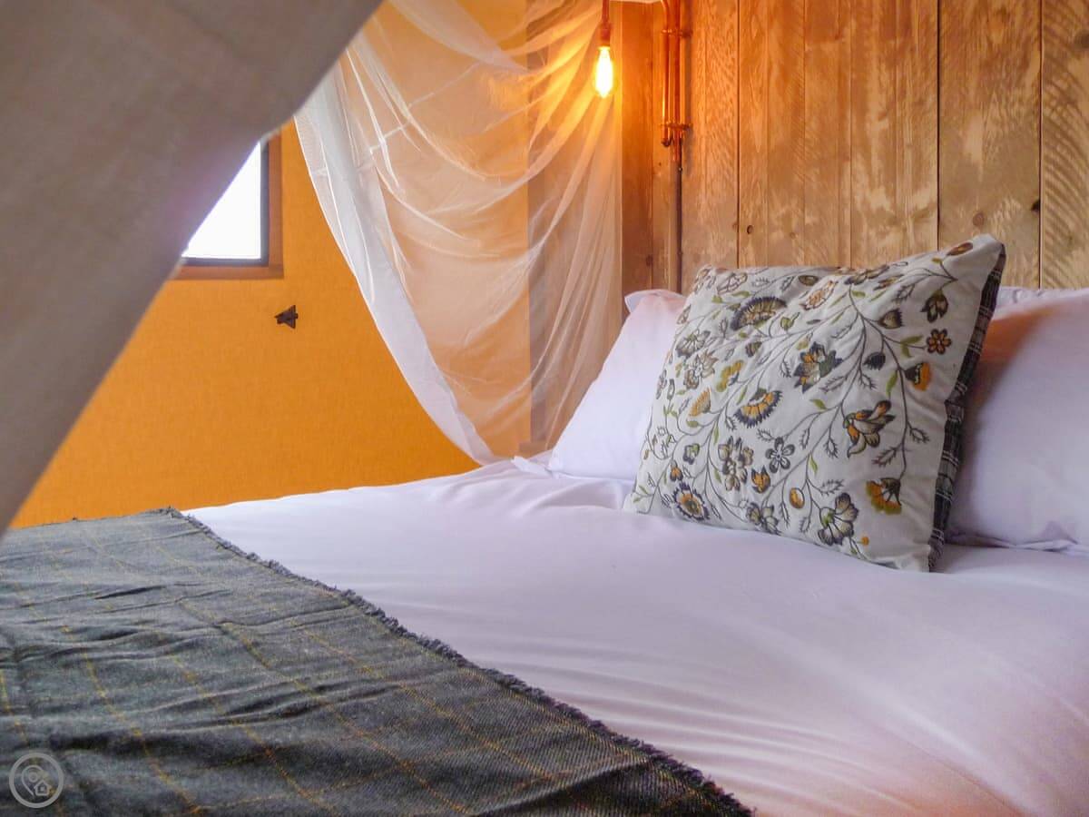 The lodges are set in a wildflower meadow with mown paths. It's quiet. You can see Glastonbury Tor from the field.