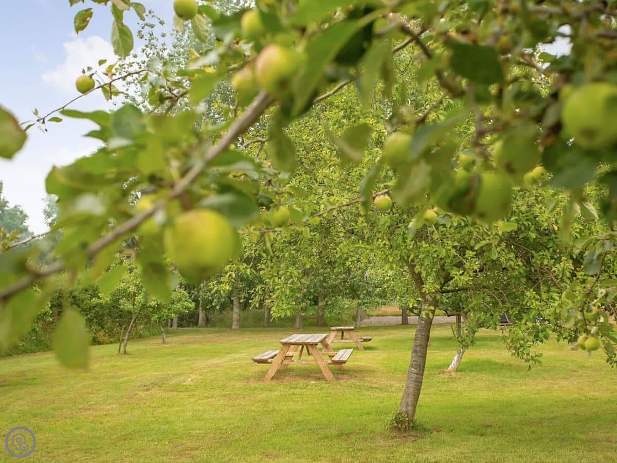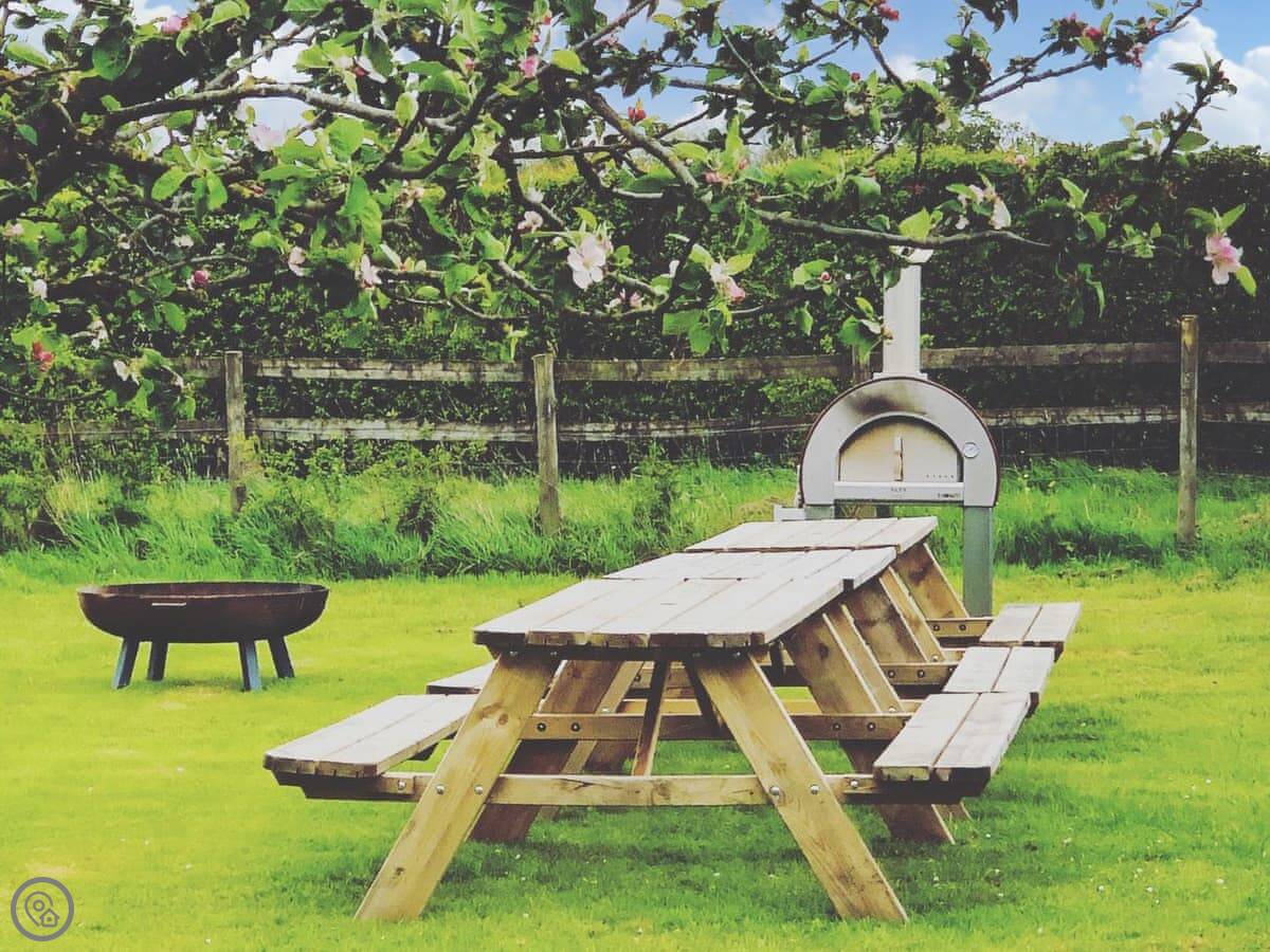 The site has a shared games room with a pool table and table tennis. There's also a separate communal area in the orchard with a wood-fired pizza oven, seating, and a fire-pit. They have some bicycles you can use.