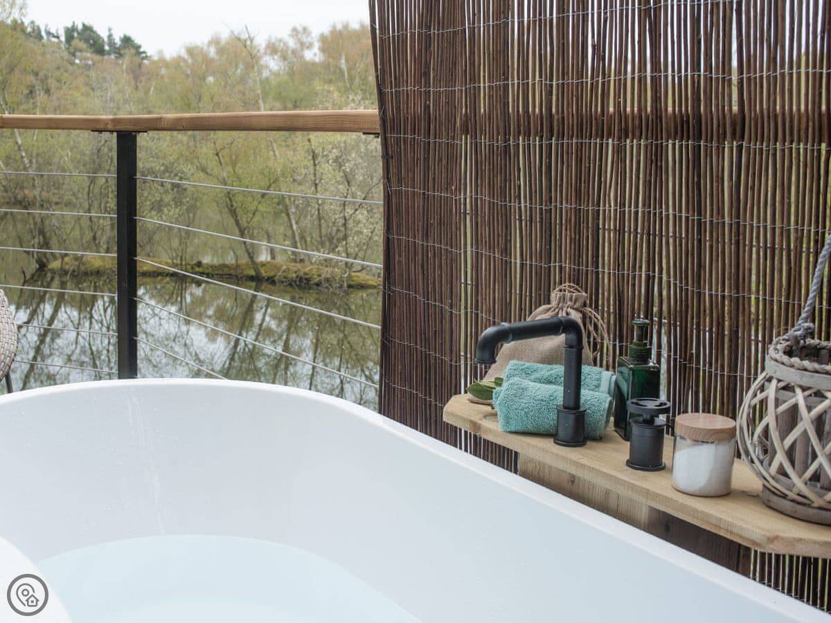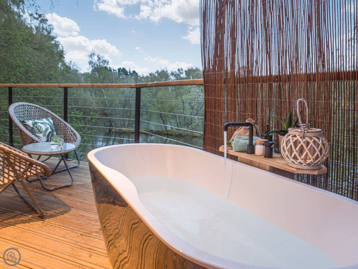 Relax in your steaming hot outdoor bathtub, enjoying the subtle sounds of the birds, the bees, and the rustle in the trees. Rustic wooden walls and spacious open plan living, ambient lighting and a roaring wood-burning stove are just the place to relax after a day exploring or rowing on the lake. Set amongst 17 acres of mature, rhododendron woodlands this romantic hideaway provides a magical oasis day or night. Famous for its peaceful and relaxing atmosphere, the unique Woodhall Spa, is a beautiful, little village, close to the Lincolnshire Wolds, steeped in history and offering many fine restaurants, cafes and individual niche shops making it the perfect location for a short break or holiday in the UK.