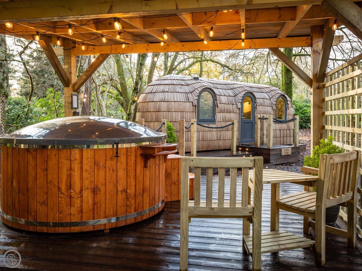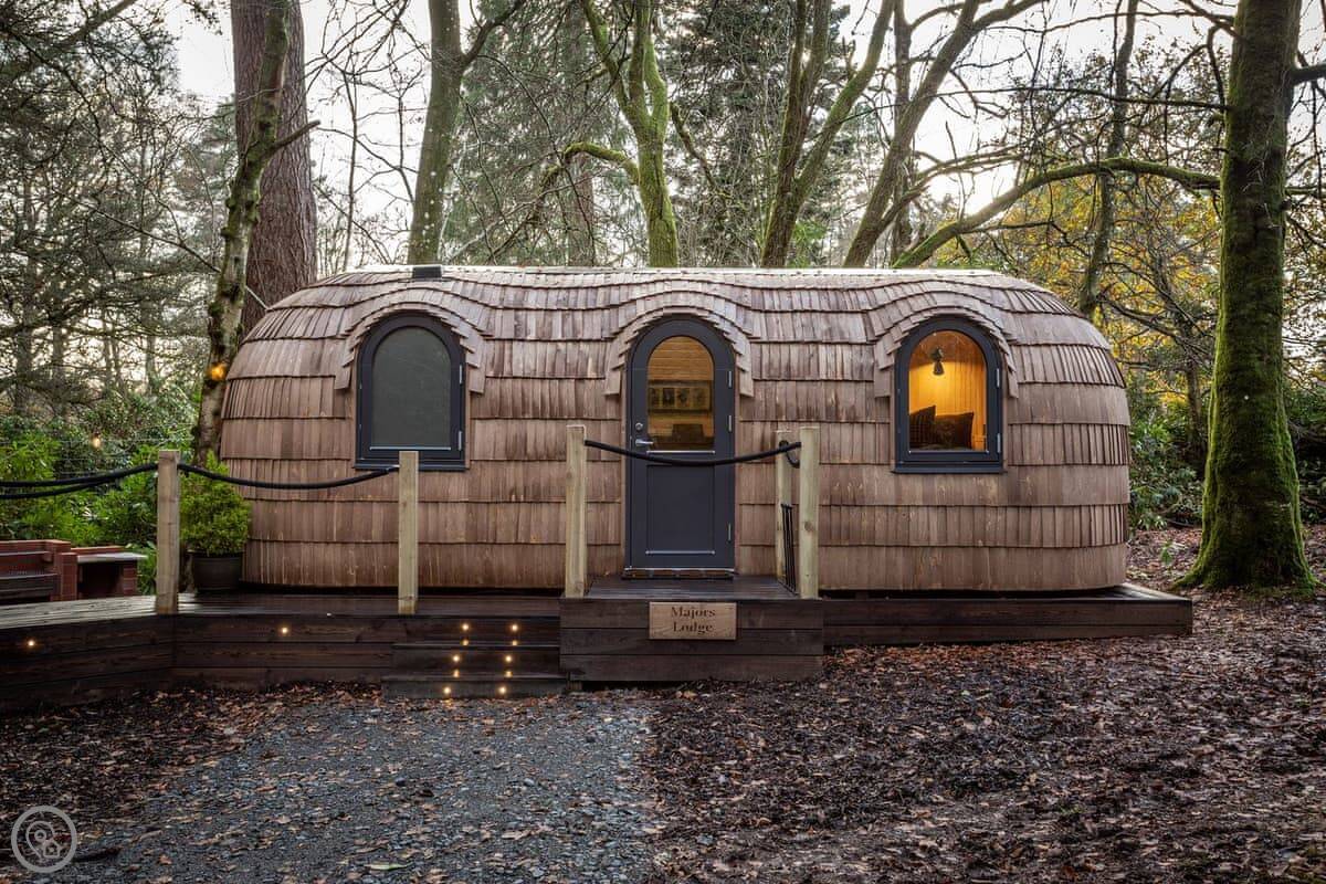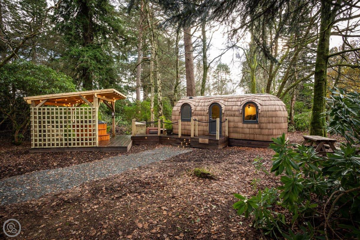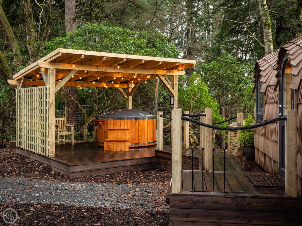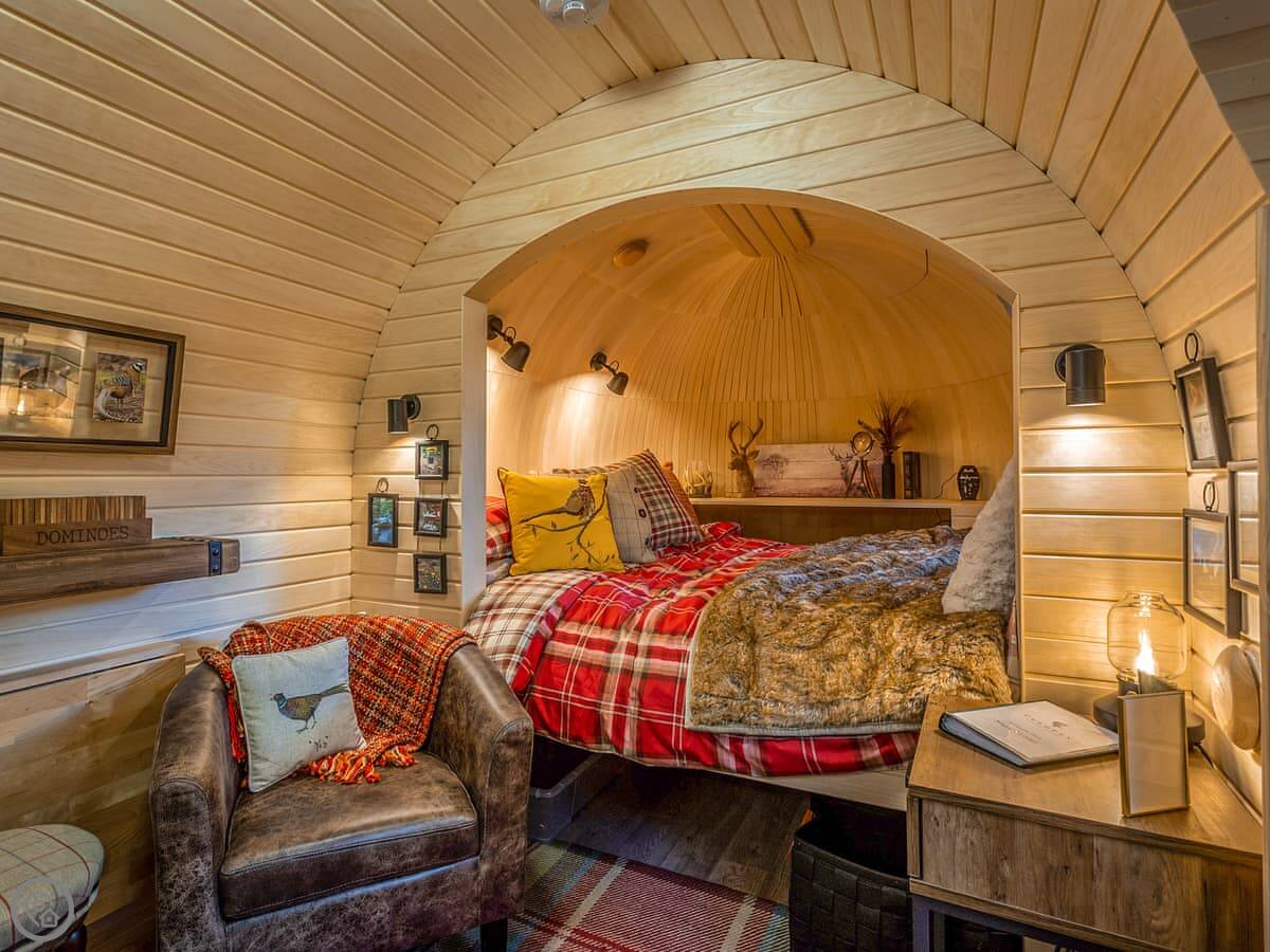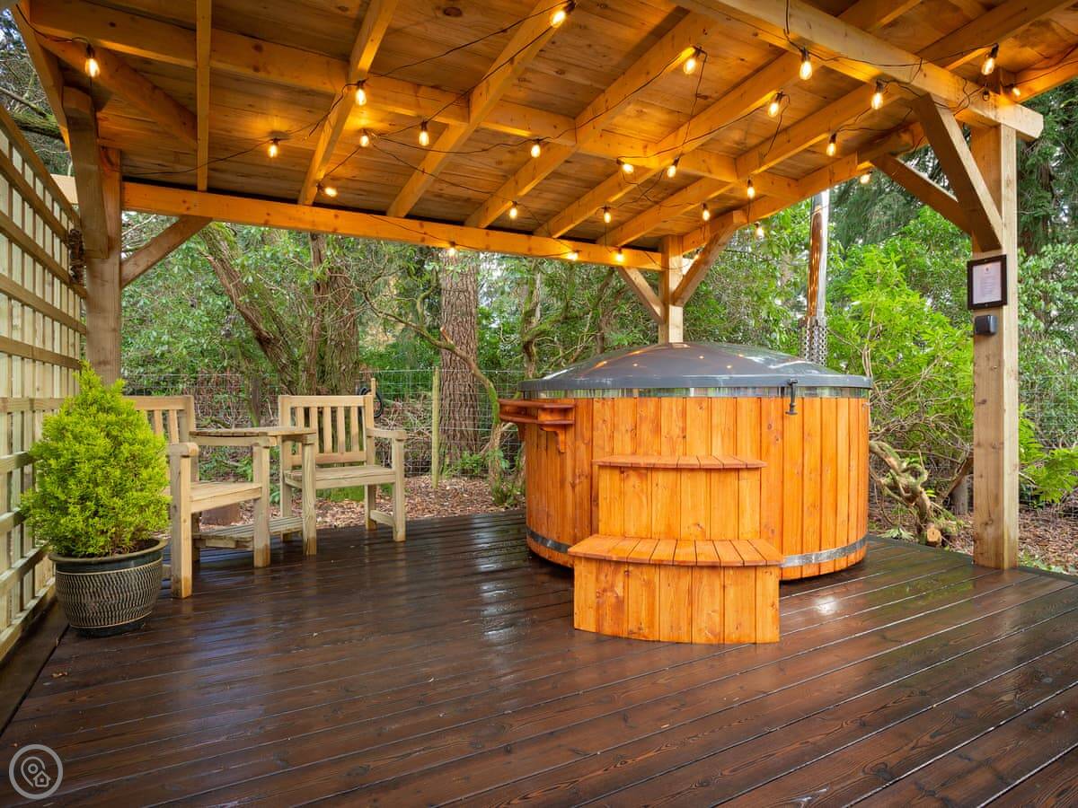 Romantic, adults-only glamping getaway where the fairy tale magic is all yours. The excitement starts as you arrive and make your way along the winding pathways, into the trees to your get to your lovely cabin. Designed to blend into its woodland surroundings, this little cocoon of insulated luxury is the epitome of effortless luxury glamping. The surrounding forest is a living and breathing environment teeming with wildlife and birdlife. If you sit quietly, you may be lucky enough to watch wild deer and pheasants roaming around the site, so keep your cameras at the ready, but this is their home, and any loud noises may startle them! The owners have designed and furnished the cabin to the highest standards as a tiny luxury home using local artists and craft suppliers. At night the castle is backlit, adding drama to the amazing views across the estate and into the Highlands beyond. This is an eco-friendly abode, and the wood-burning hot tub will be set up in advance for you, all the lighting is low energy, and the water is sourced from a local natural spring. You will find the cabin well equipped, however if you forget anything the small shop on-site will be available to purchase most items you may need. With its hot tub, incredible views, and wonderfully idyllic location, these cabins offer couples a perfect romantic retreat in Scotland.