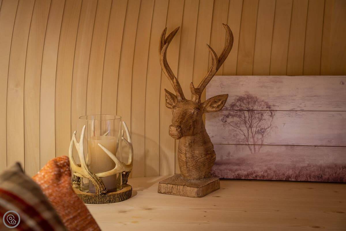 Ideally situated in woodlands just outside the pretty village of Muthill you’ll find plenty of eating places and activities really close to the site. The cabin is 4 miles from the local historic town of Crieff which has an array of Artisan Shops, delis’, galleries, coffee shops, restaurants and bars.