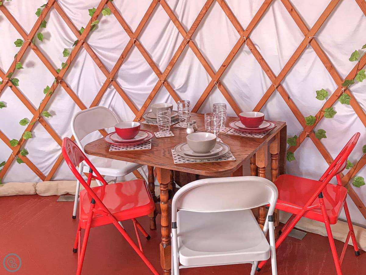 It's quiet here. You'll hear children playing sometimes but it's not a place for loud parties. If you need more space, you can book the yurt next door, Kingfisher, as well.