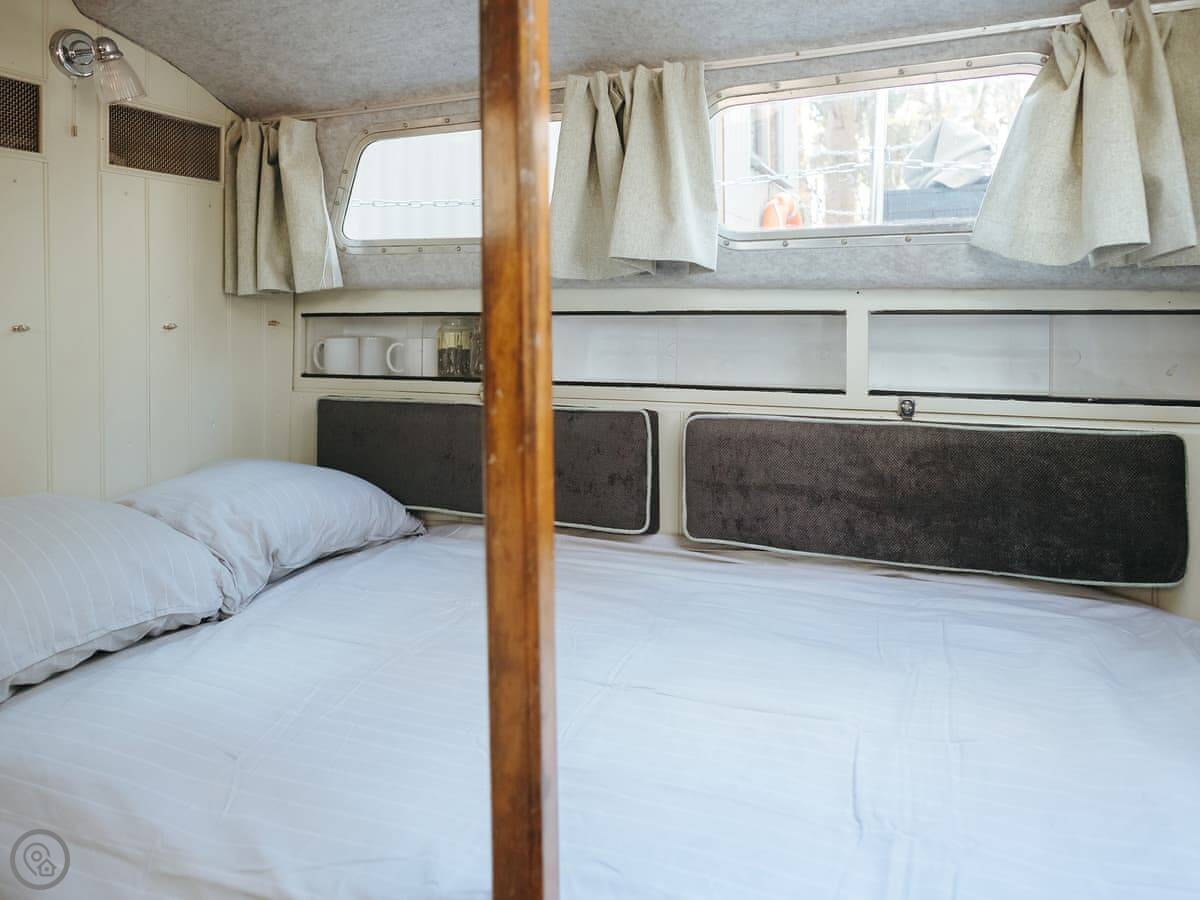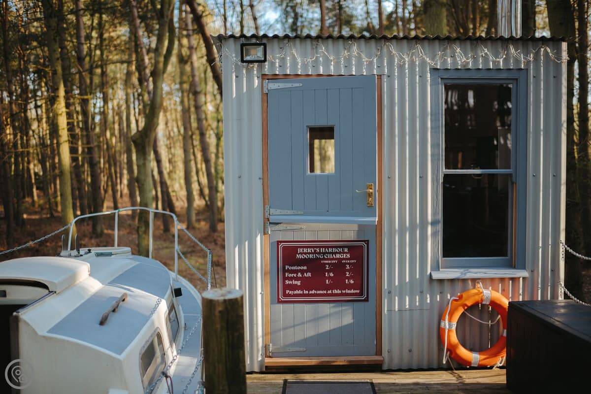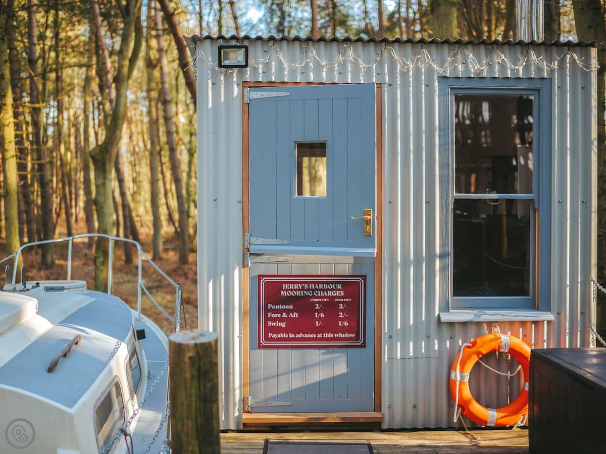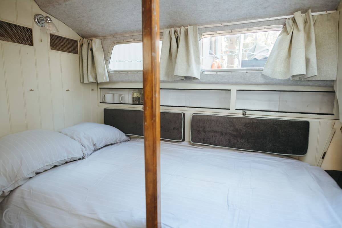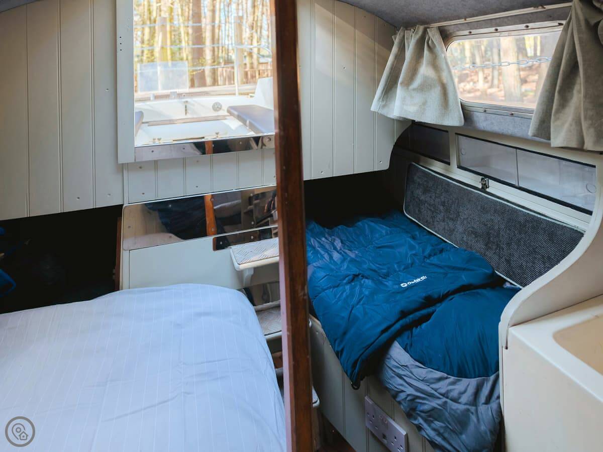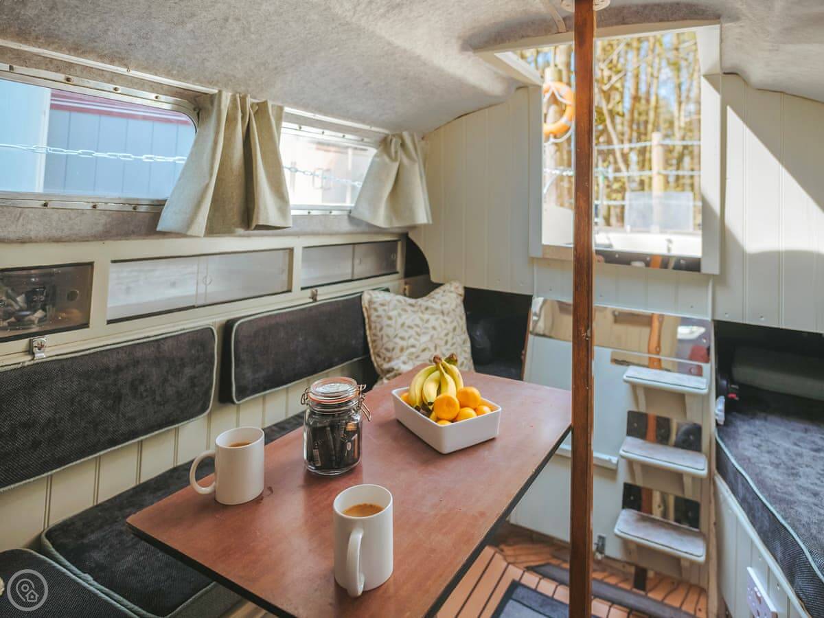 Chere Amie is a 23-foot sailing yacht from 1973. It's moored at Rosslyn Holiday Park near Briston, inland Norfolk. You get the yacht and a separate dayroom on the jetty.