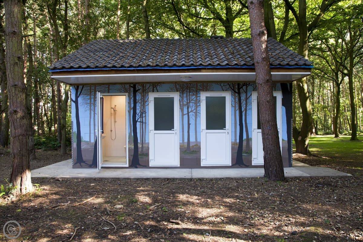 Bathrooms are in a shared shower block a short walk away. There are individual wet rooms, including a family one. There's also a shared outdoor pool on the park.