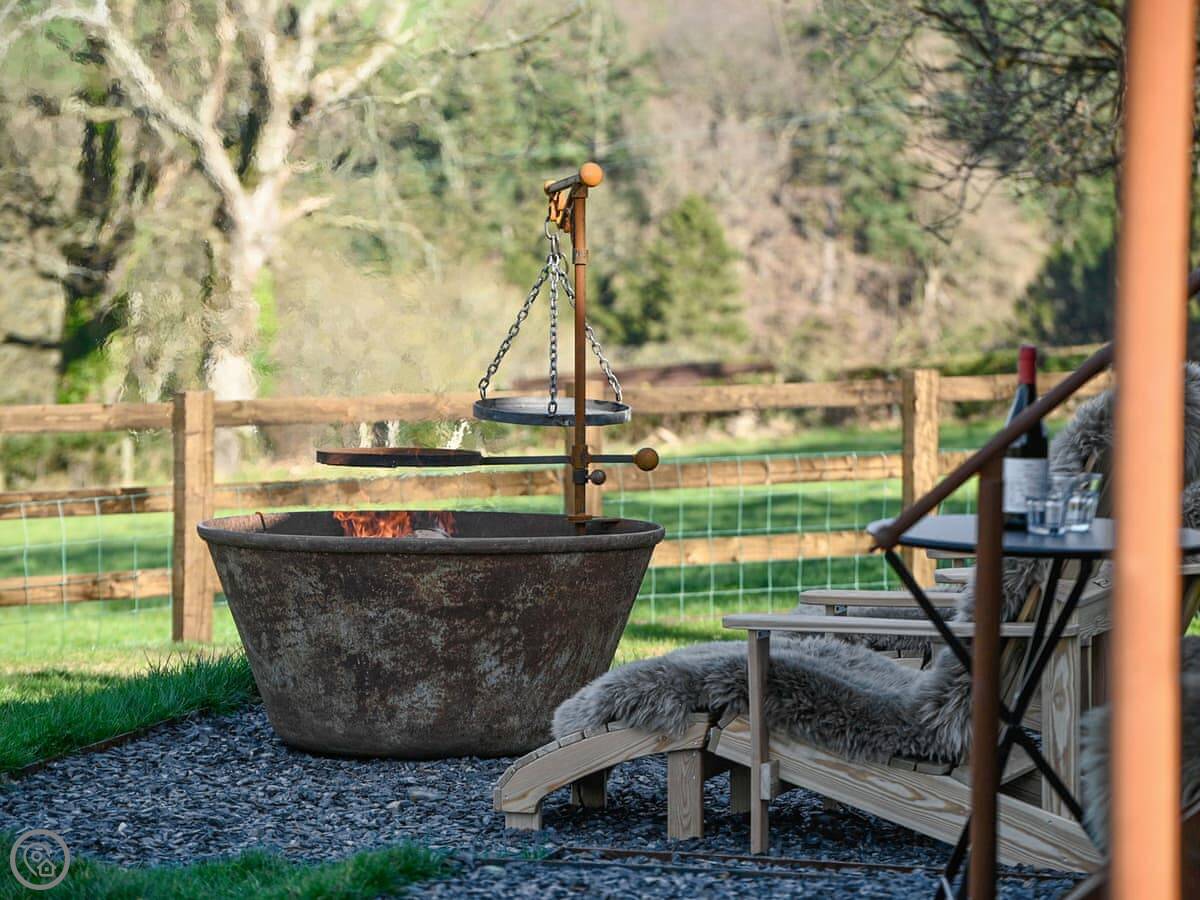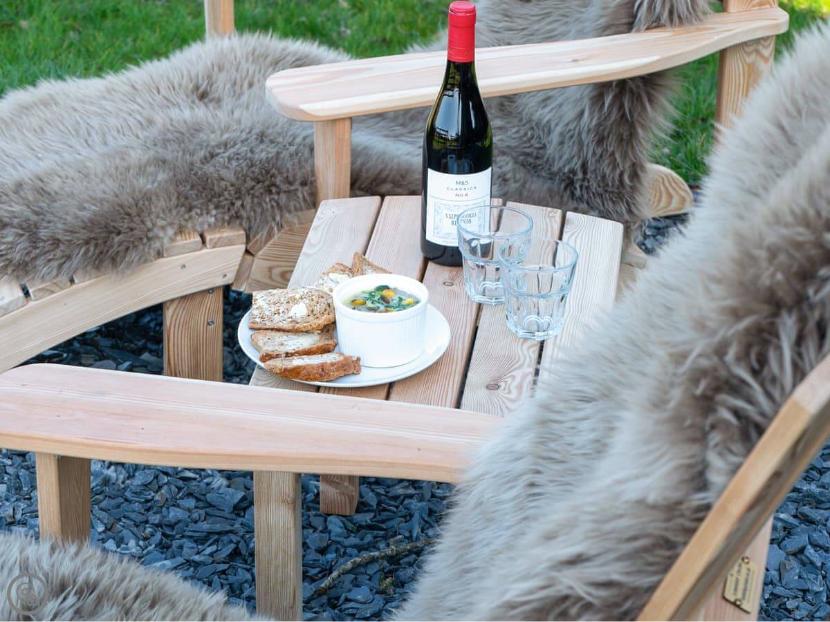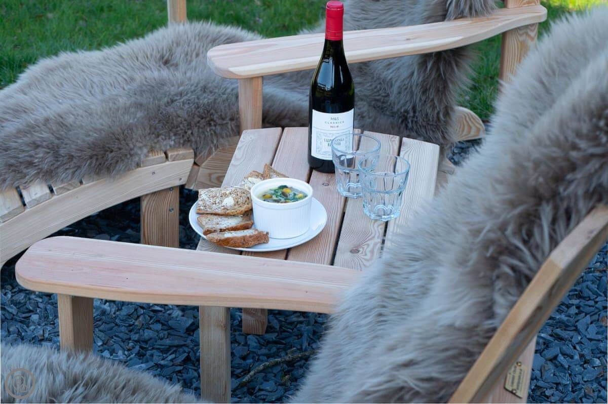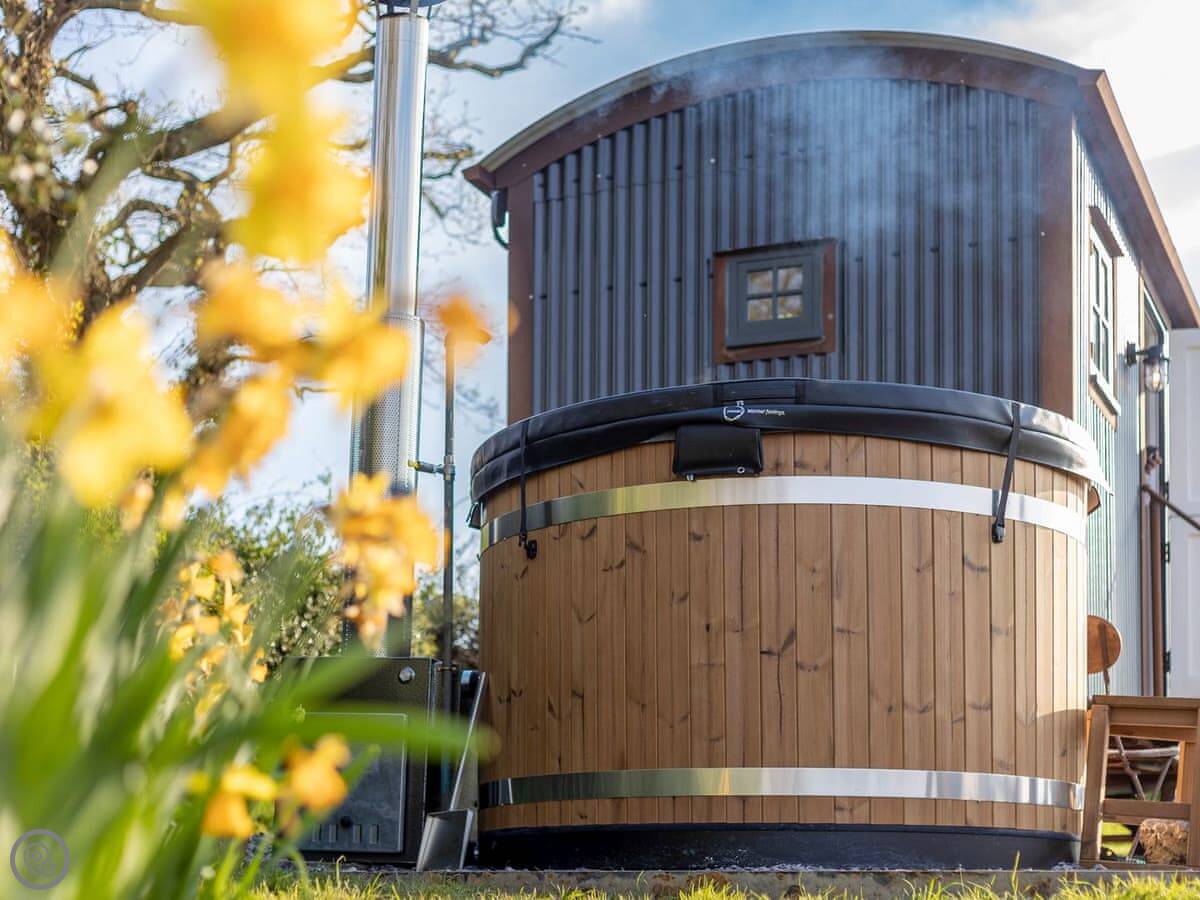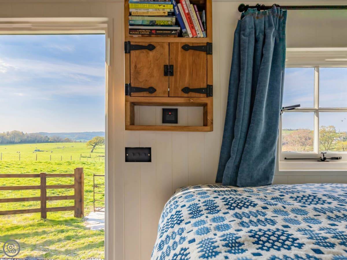 Mentioned in The Times, April 2022, Siôr’s is a bespoke shepherds hut with elegant design features that showcases traditional Welsh craftsmanship and heritage and has been carefully furnished with a variety of home comforts and little details to create an extra special retreat on the north Wales coast. The sumptuous handmade mattress, made from the finest sustainable materials, is dressed with soft linen and topped with wool Trefriw tapestry blankets. Look forward to a restful sleep in this glorious countryside setting and awaken to a chorus of singing birds and views of the sea. The kitchen is fitted with Smeg appliances and has all you need to make scrumptious meals if that what you decide to do. There is an extendable dining table and bench with tapestry blanket cushions, an ideal spot for eating indoors. A powerful wood burner stands on its own hearth with stunning fire surround created from original antique 18th century delft tiles, depicting shepherds, farms and flowers. After a busy day exploring the local area come home and relax in the new wood-fired hot tub. Sior is incredibly warm, with ambient designer lighting which creates a restful atmosphere. Take a book from the shelf and relax a while by as the world goes by.