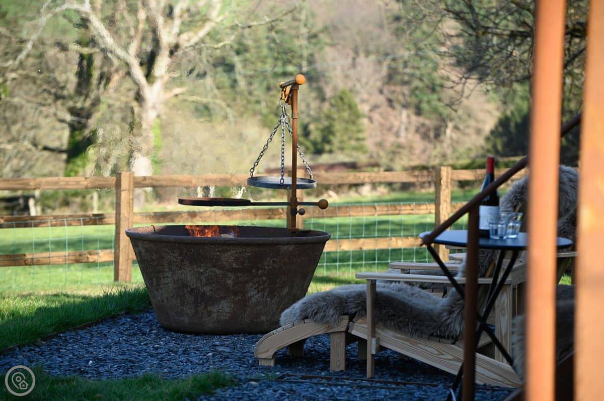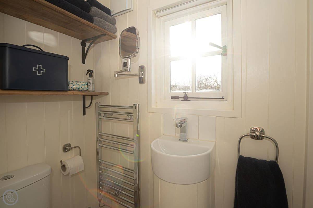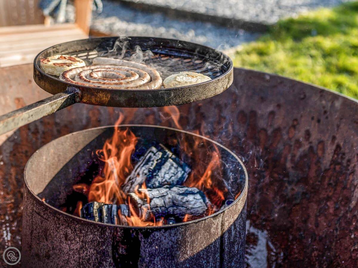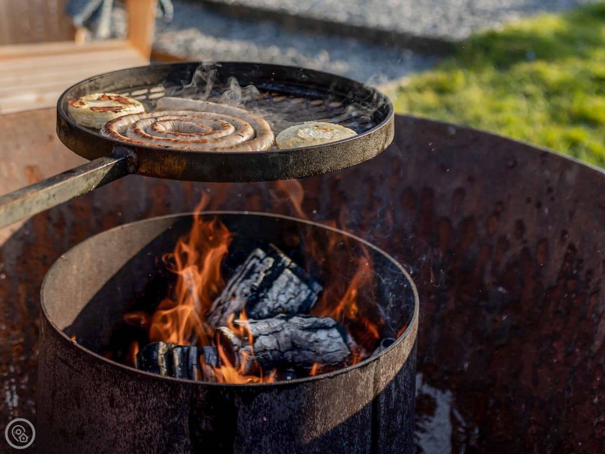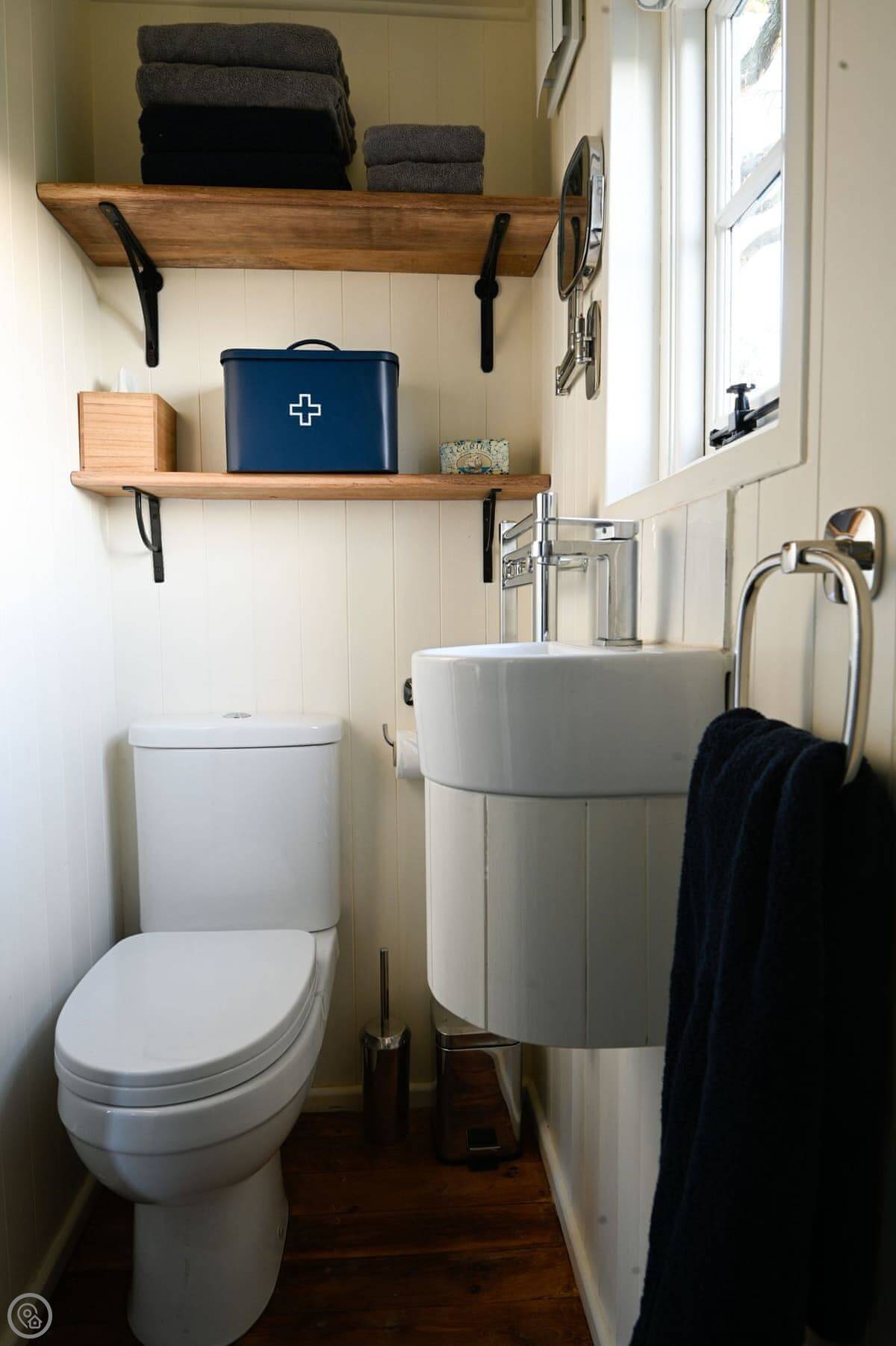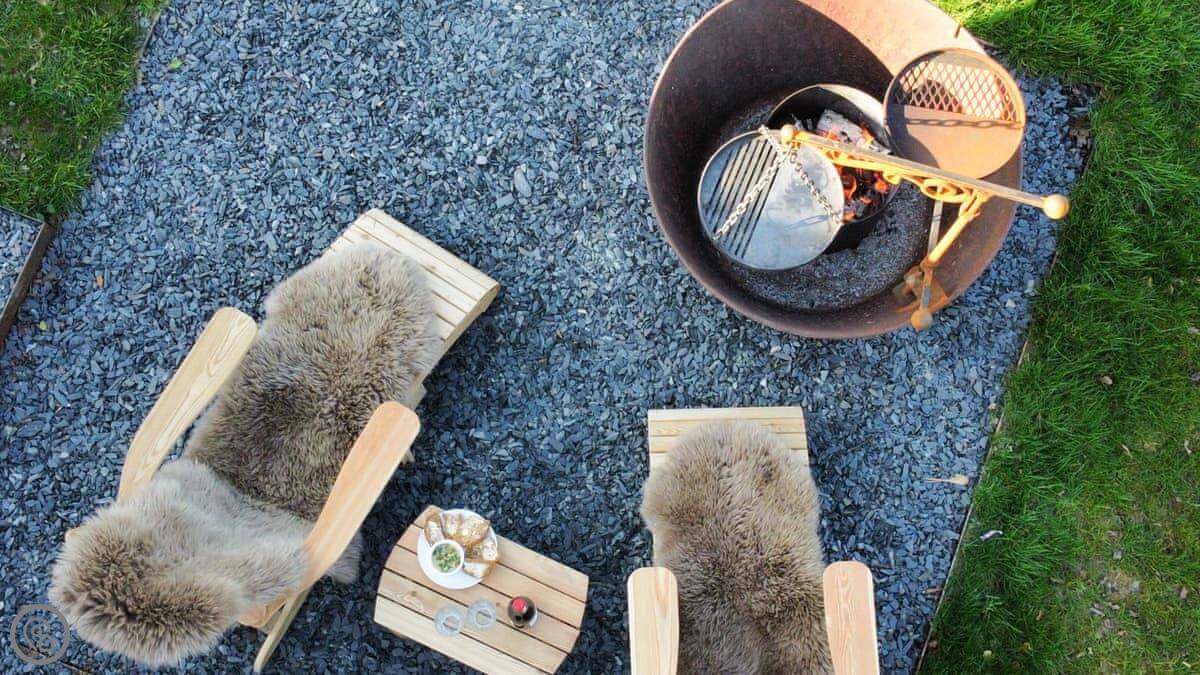 Mentioned in The Times, April 2022, Siôr’s is a bespoke shepherds hut with elegant design features that showcases traditional Welsh craftsmanship and heritage and has been carefully furnished with a variety of home comforts and little details to create an extra special retreat on the north Wales coast. The sumptuous handmade mattress, made from the finest sustainable materials, is dressed with soft linen and topped with wool Trefriw tapestry blankets. Look forward to a restful sleep in this glorious countryside setting and awaken to a chorus of singing birds and views of the sea. The kitchen is fitted with Smeg appliances and has all you need to make scrumptious meals if that what you decide to do. There is an extendable dining table and bench with tapestry blanket cushions, an ideal spot for eating indoors. A powerful wood burner stands on its own hearth with stunning fire surround created from original antique 18th century delft tiles, depicting shepherds, farms and flowers. After a busy day exploring the local area come home and relax in the new wood-fired hot tub. Sior is incredibly warm, with ambient designer lighting which creates a restful atmosphere. Take a book from the shelf and relax a while by as the world goes by.