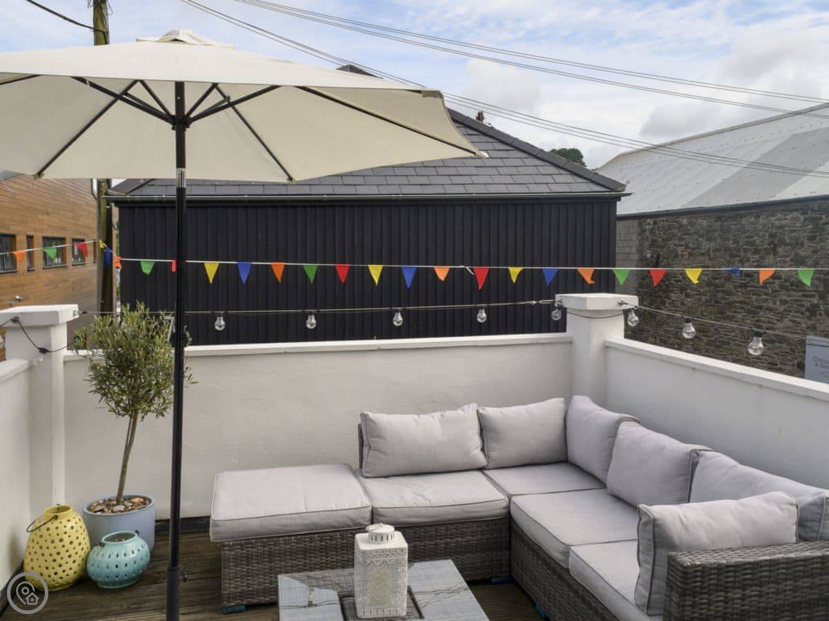 There's a balcony off the living room. You look out over Island Street, which is one of the prettier ones with the boats. You can sit out there. There's also a proper parking space on site.