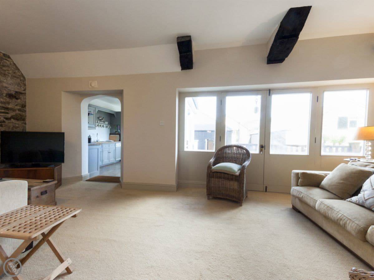 This is Aloft, my place in Salcombe. It's a first floor apartment, which means stairs up to the front door. It's about a minute's walk to Victoria Quay on the flat, so you can leave the car.