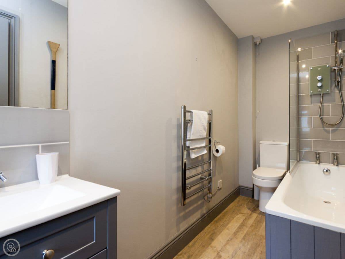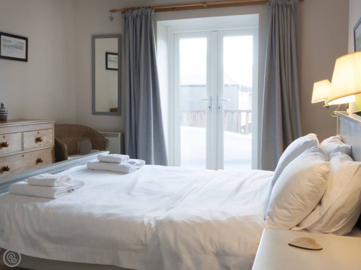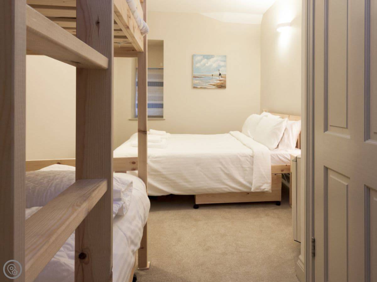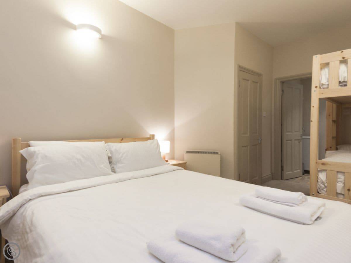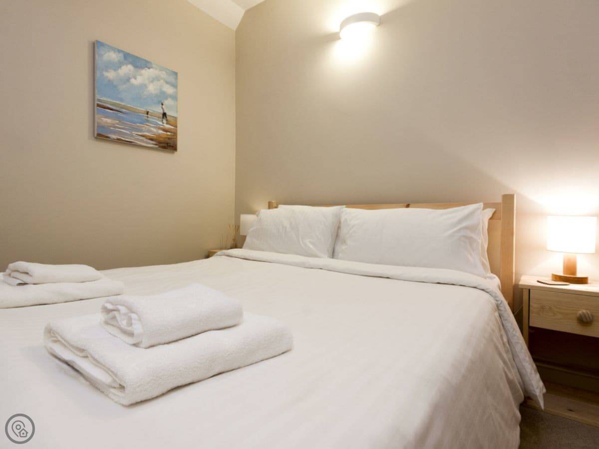 It sleeps four, in two bedrooms. Both have their own bathrooms, which is handy. It's got a 5 Star rating, which means it's been checked and is well-equipped and clean.