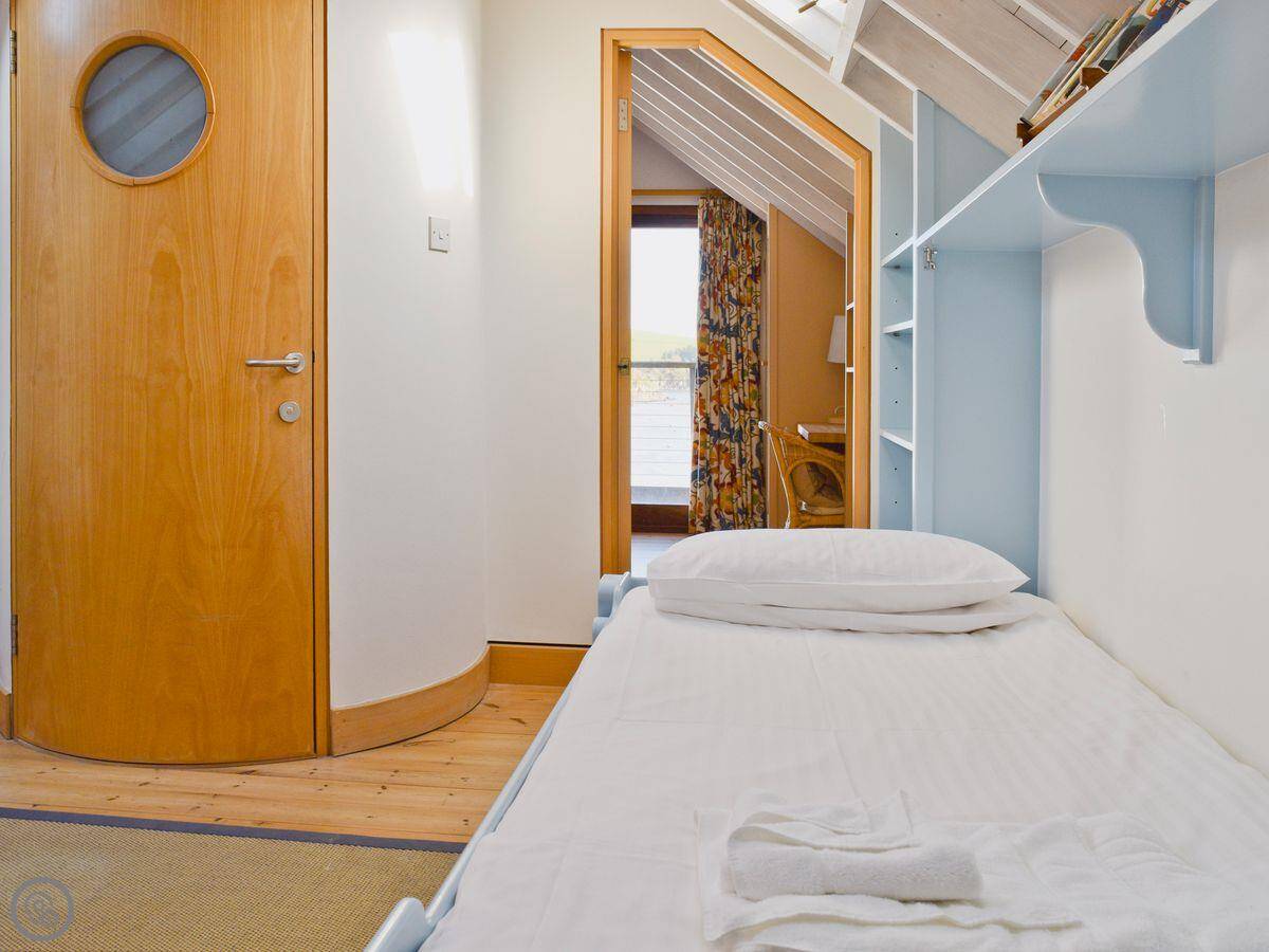 It sleeps four. Two bedrooms, one bathroom. It has a 4 Star rating. The main thing is the position. You are right at the water's edge with views straight out over the anchorage to East Portlemouth.