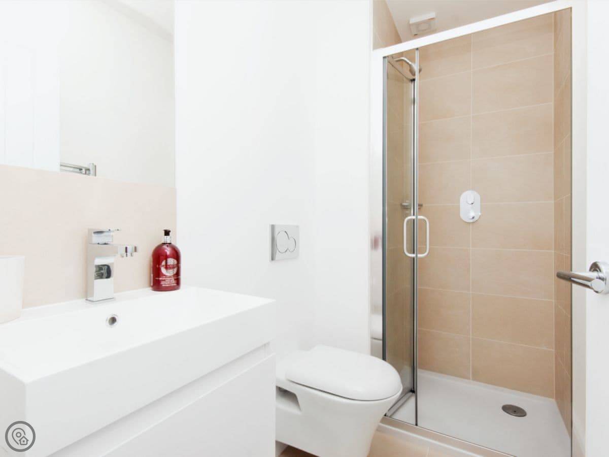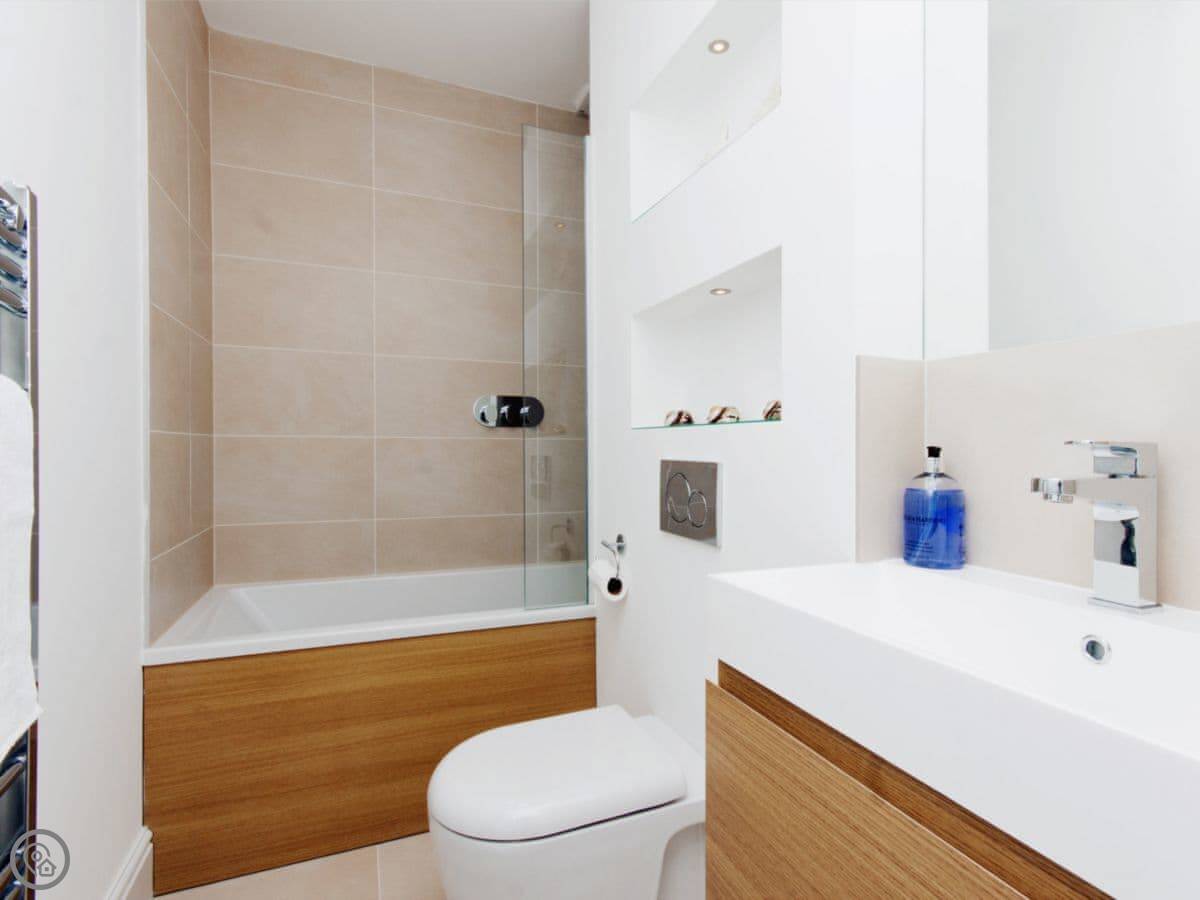 It sleeps four. Two bedrooms, both en-suite, which is handy. It's got a 5 Star rating, which basically means it's all been done to a high standard and is in very good order. The building used to be shops downstairs, so the stairs up to it are a normal staircase.
