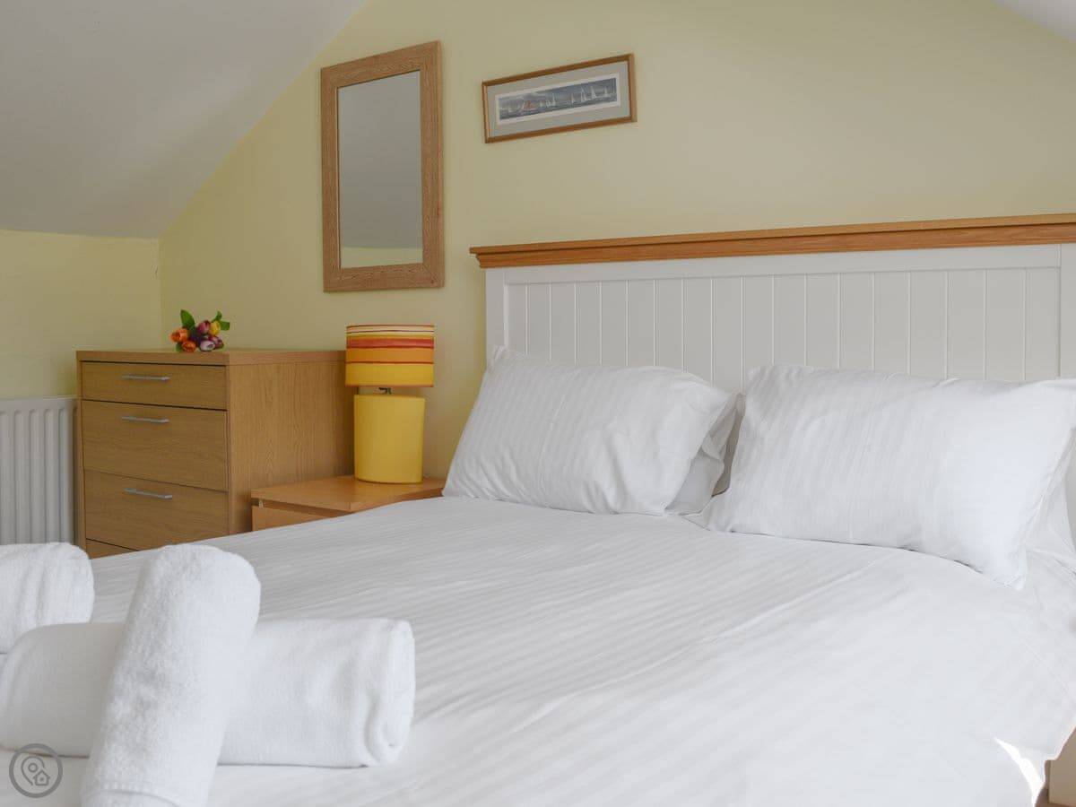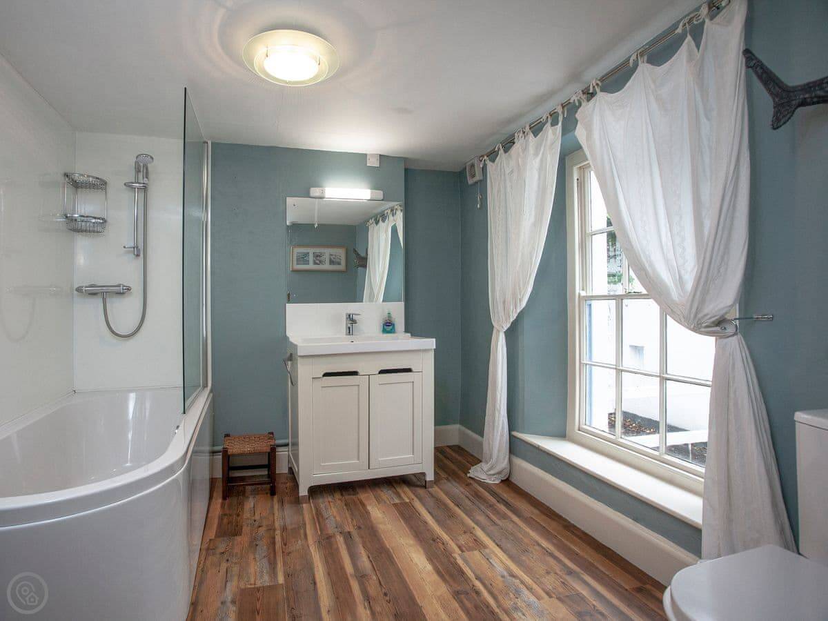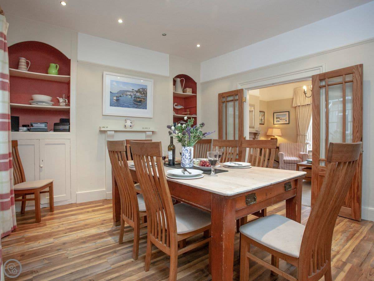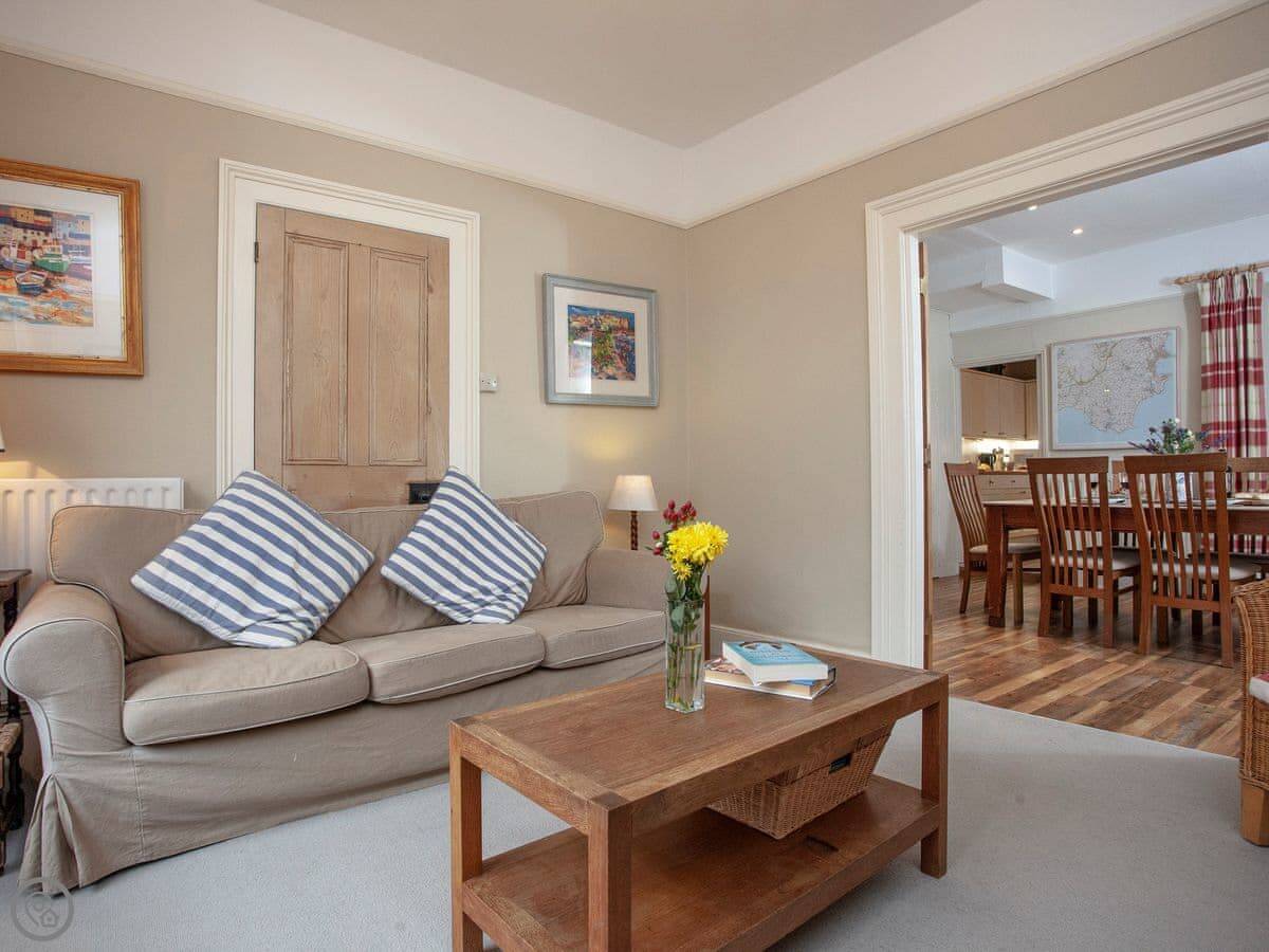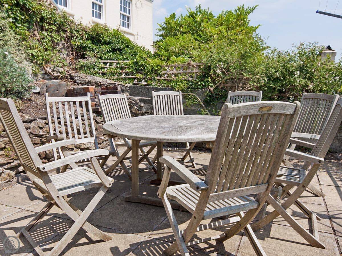 There's a sunny garden terrace out the back. You get a view over the rooftops towards East Portlemouth and the estuary.