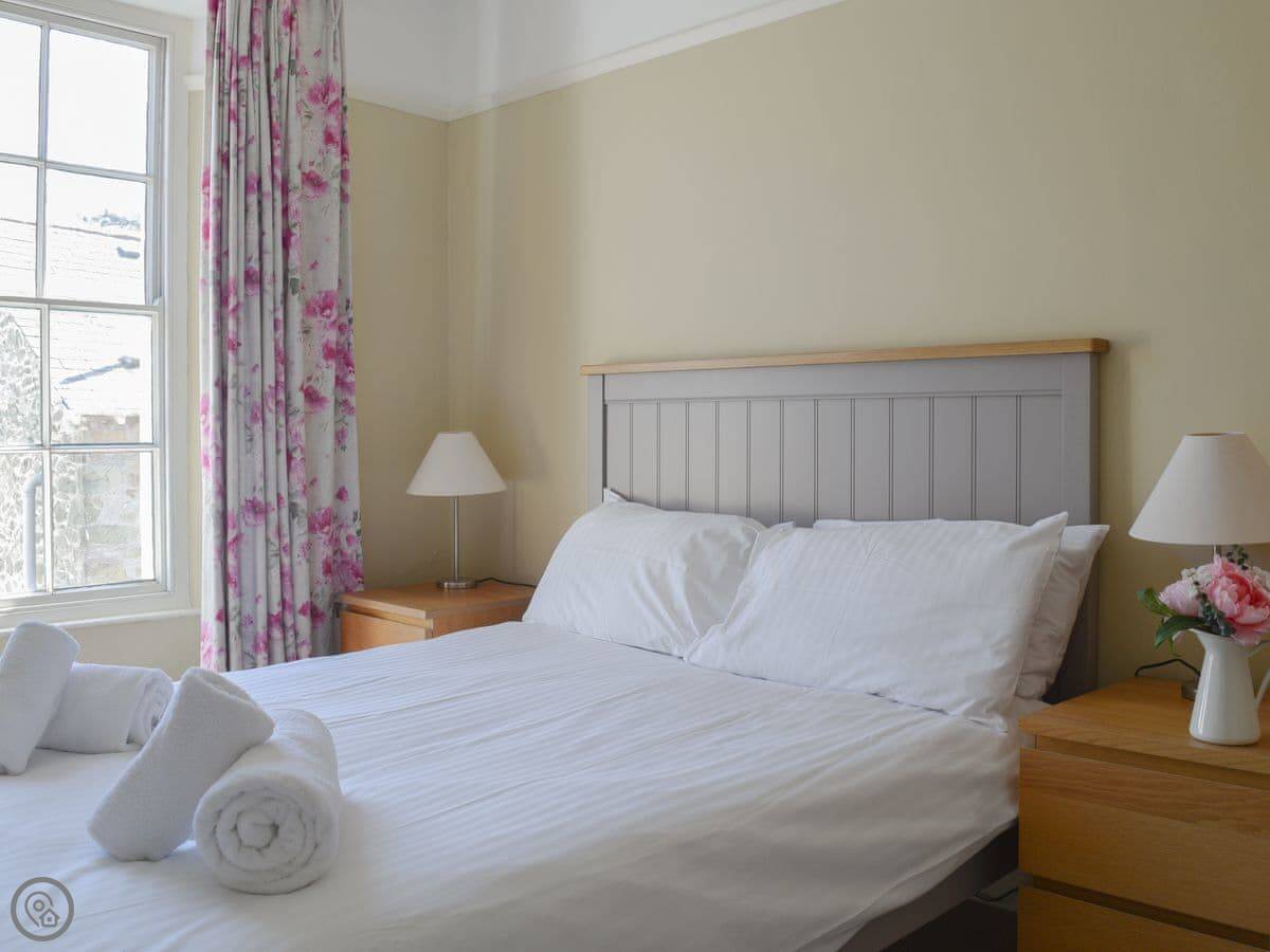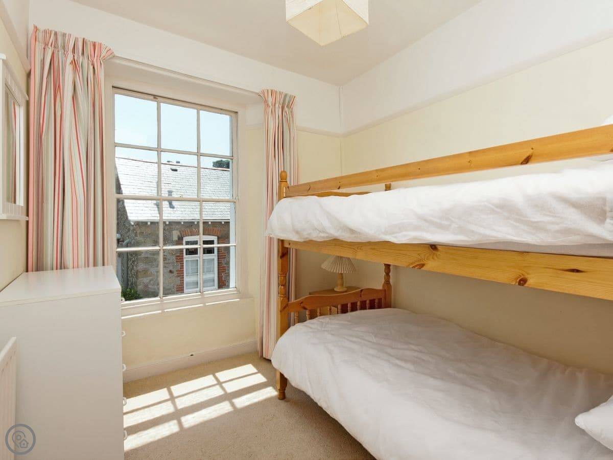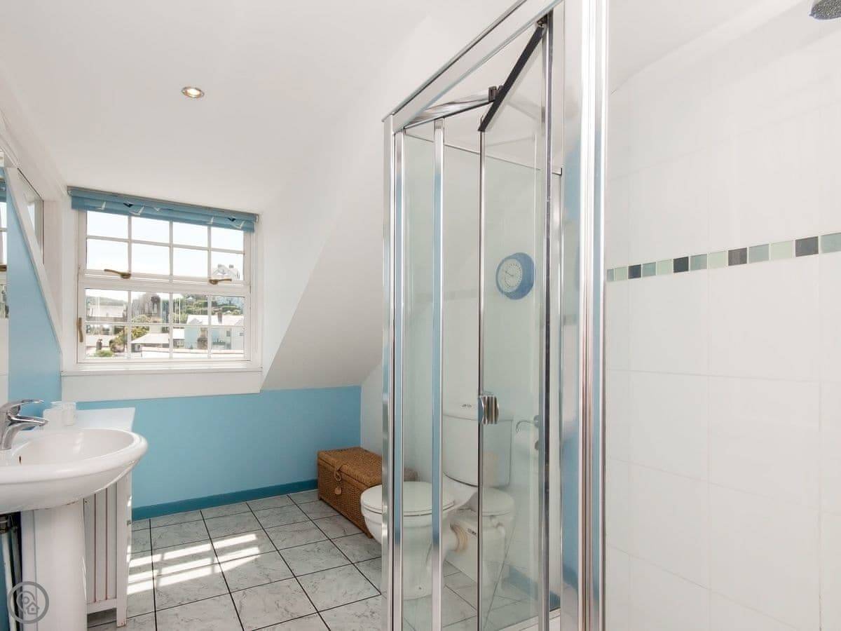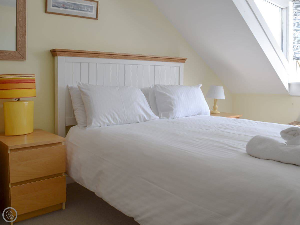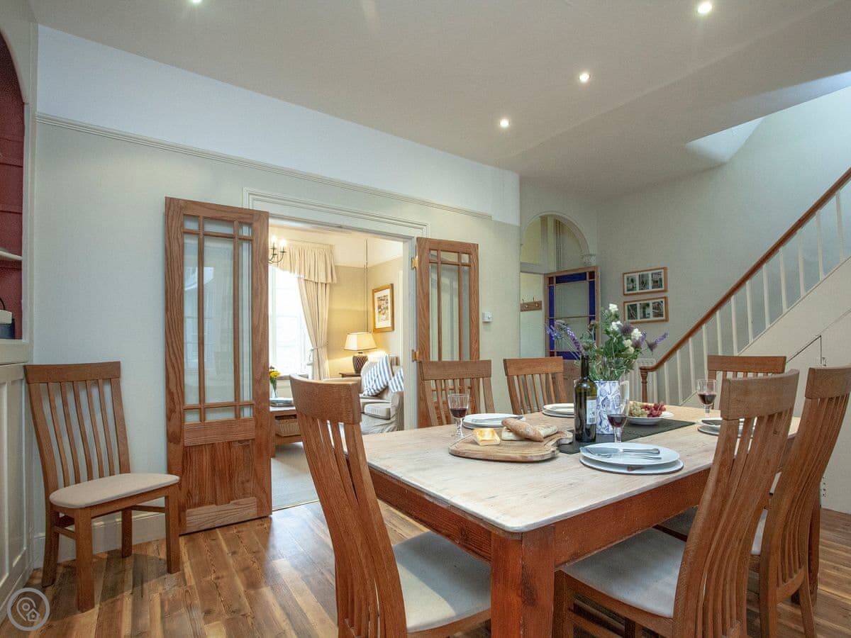 There's a sunny garden terrace out the back. You get a view over the rooftops towards East Portlemouth and the estuary.