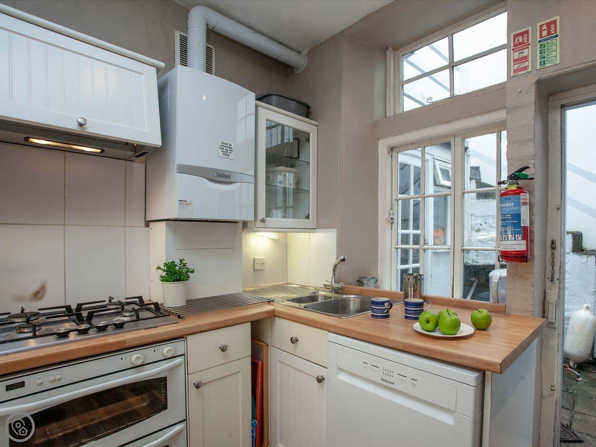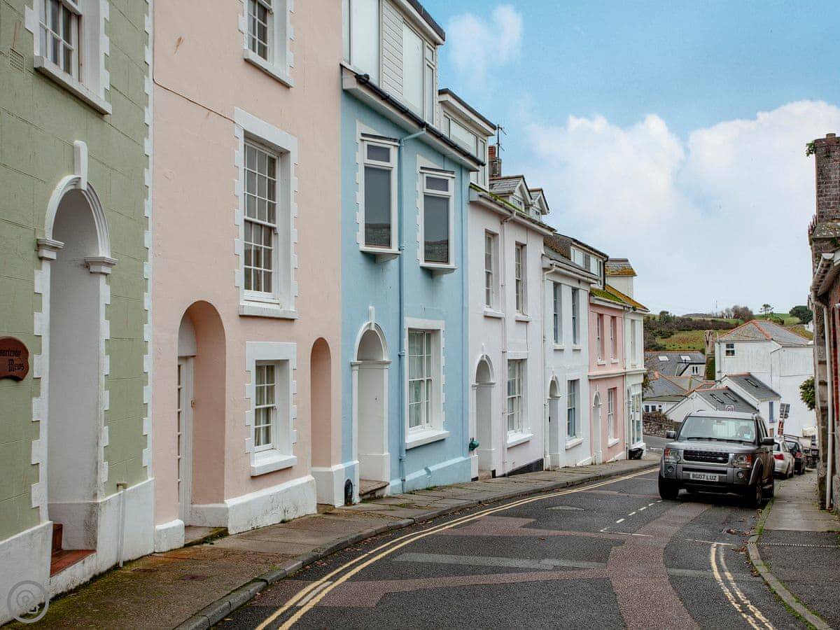 This place is 24 Courtenay Street in Salcombe. It's a Victorian terraced house. You're basically in town, about a hundred yards from the waterfront and the shops, but it's on a no-through road so it's a bit quieter.