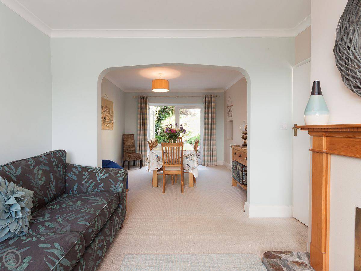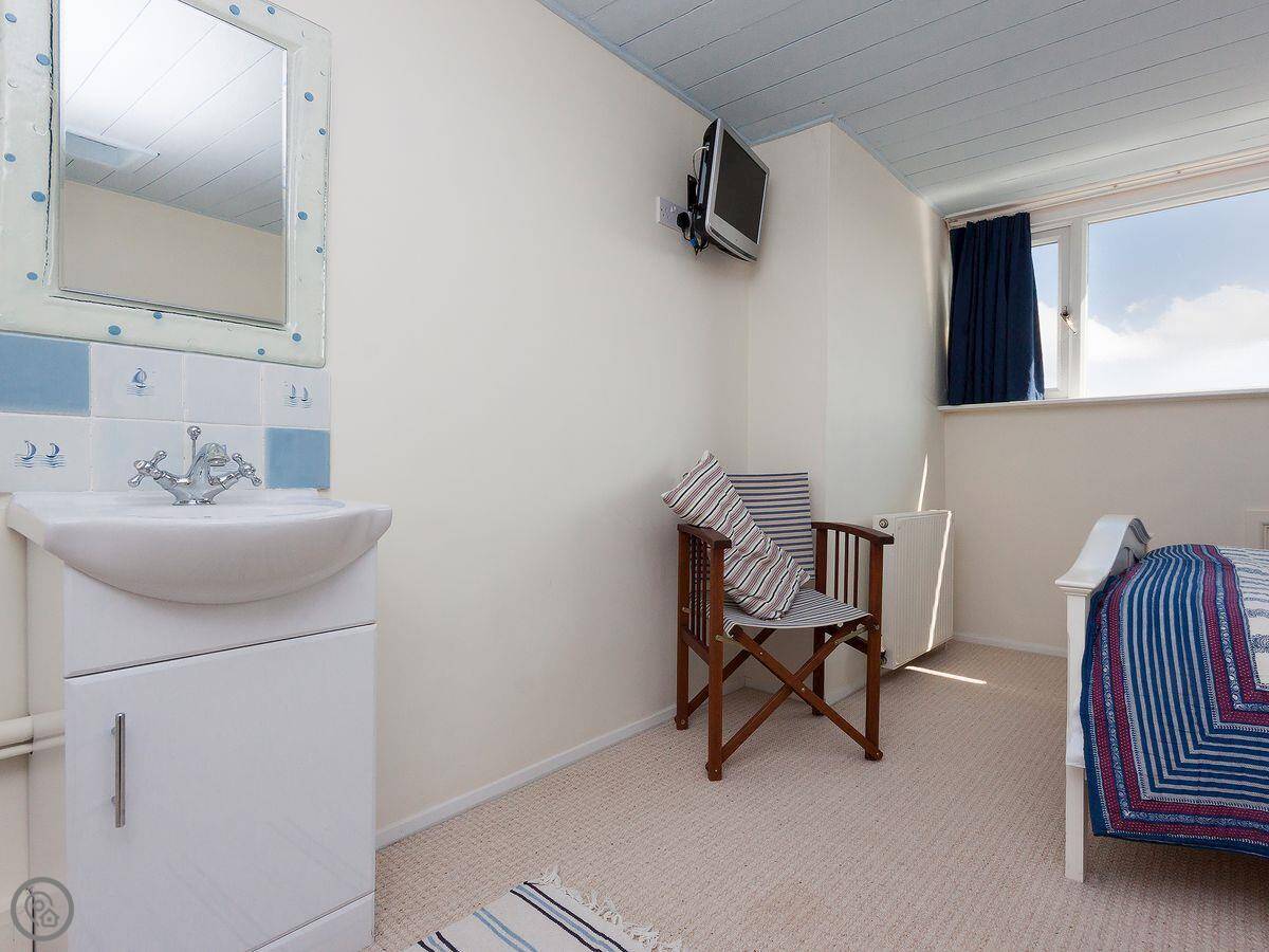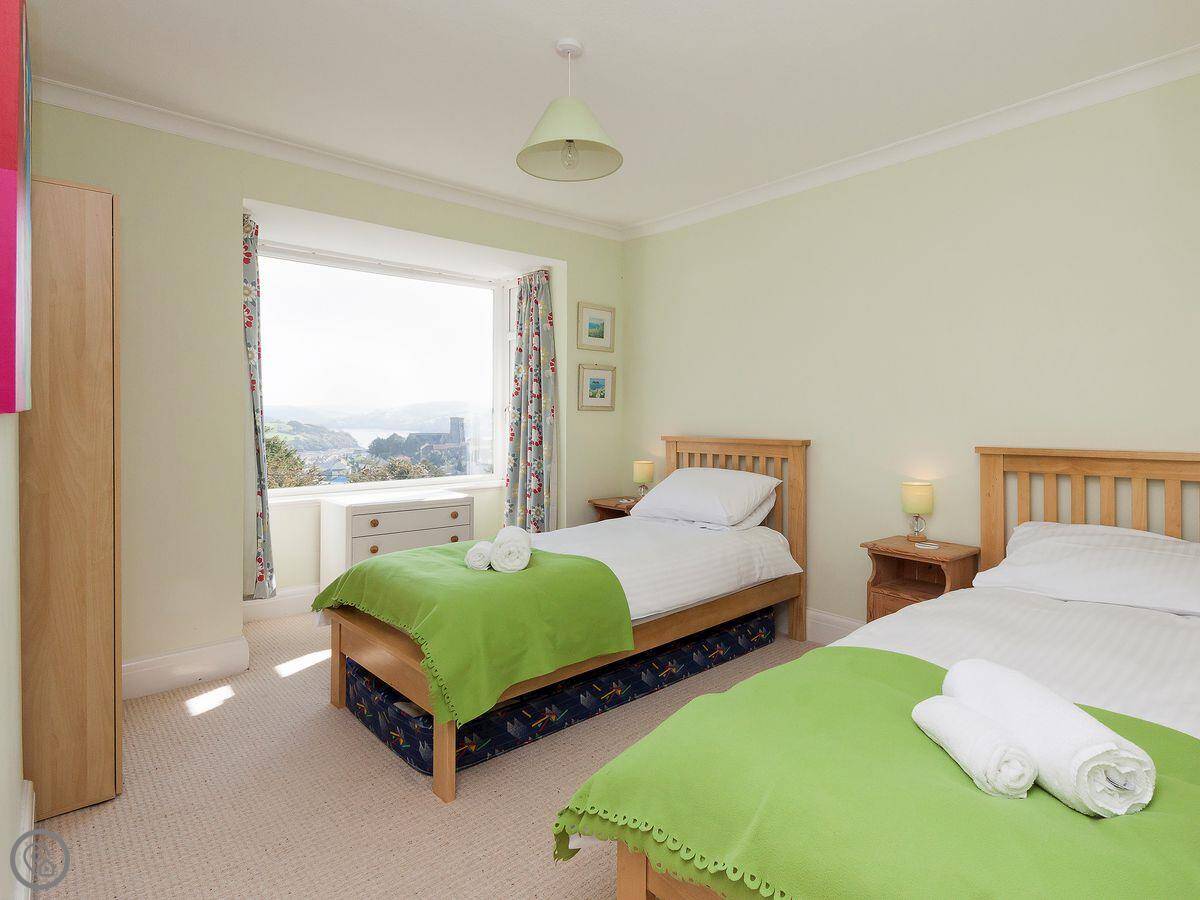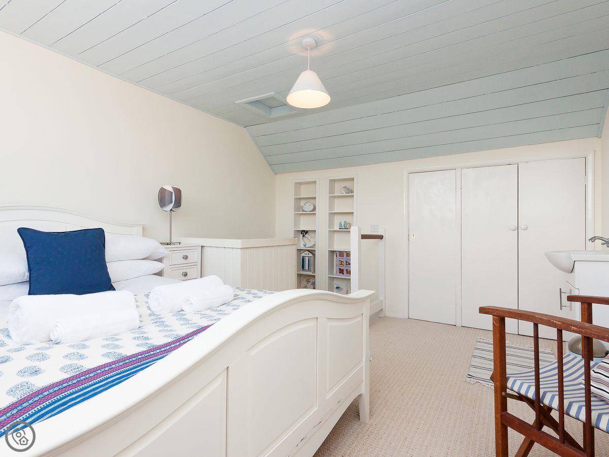 It sleeps six, across three bedrooms. There are two bathrooms, one on each floor, which helps when you've got a few people. It's a proper family house, so it's quite roomy and the ceilings are normal height, not low.