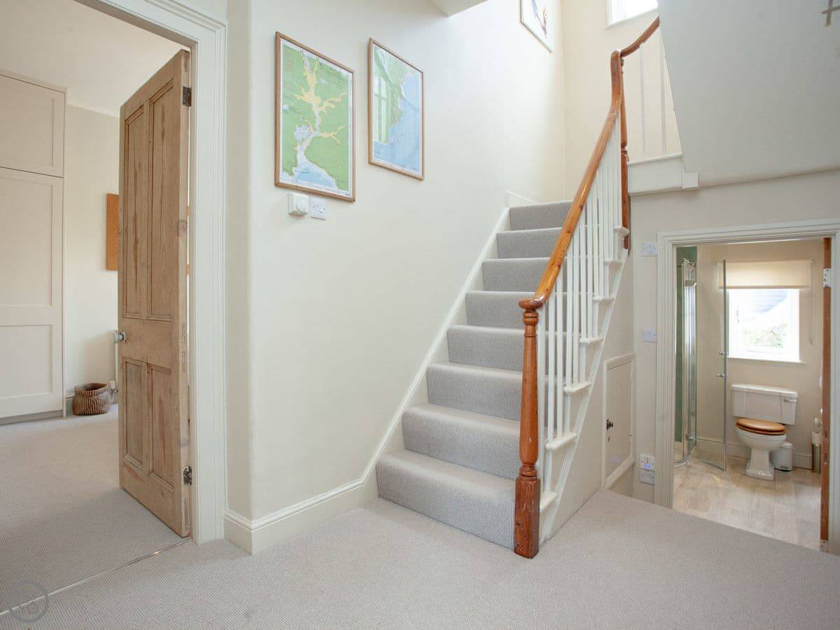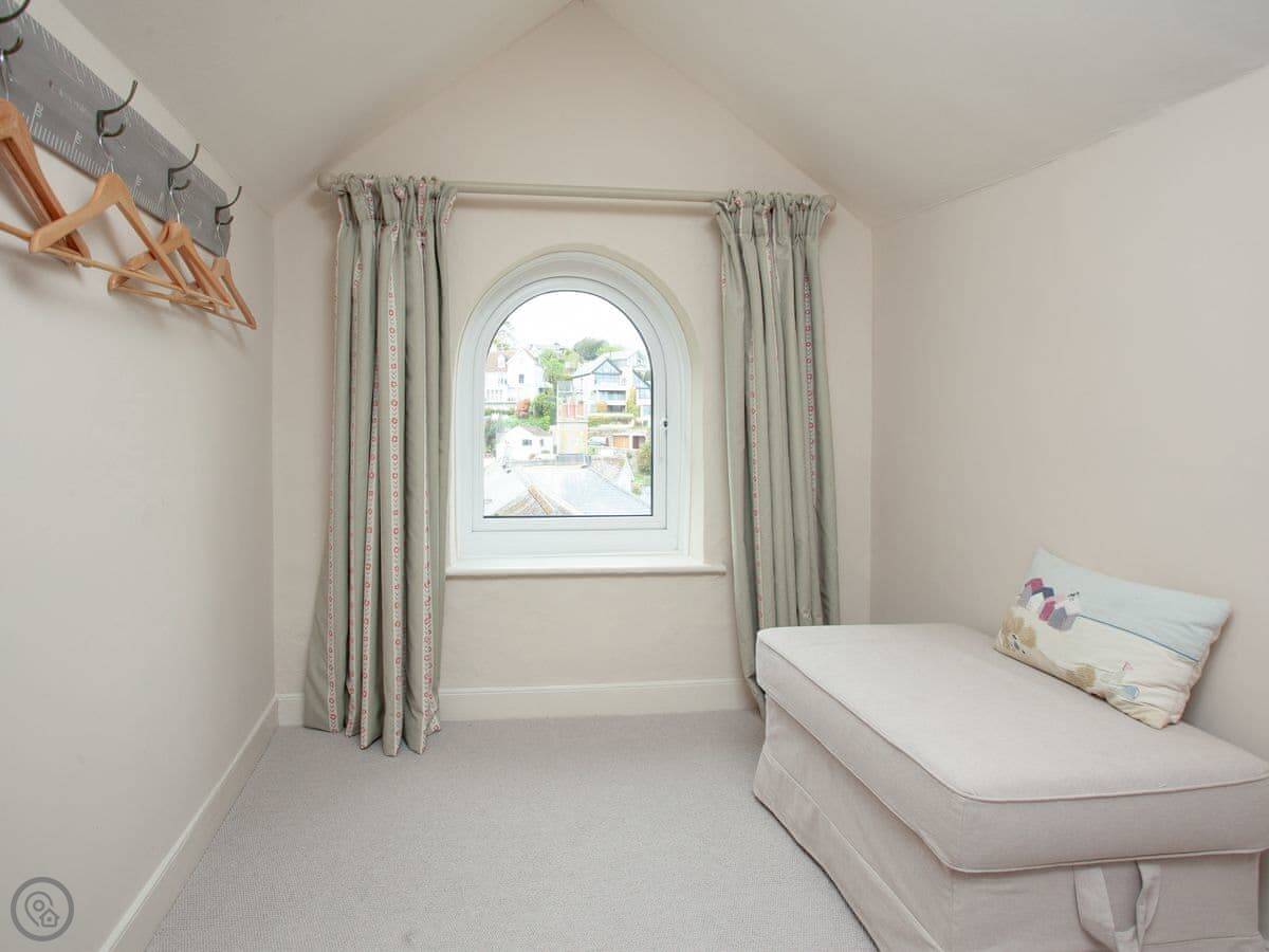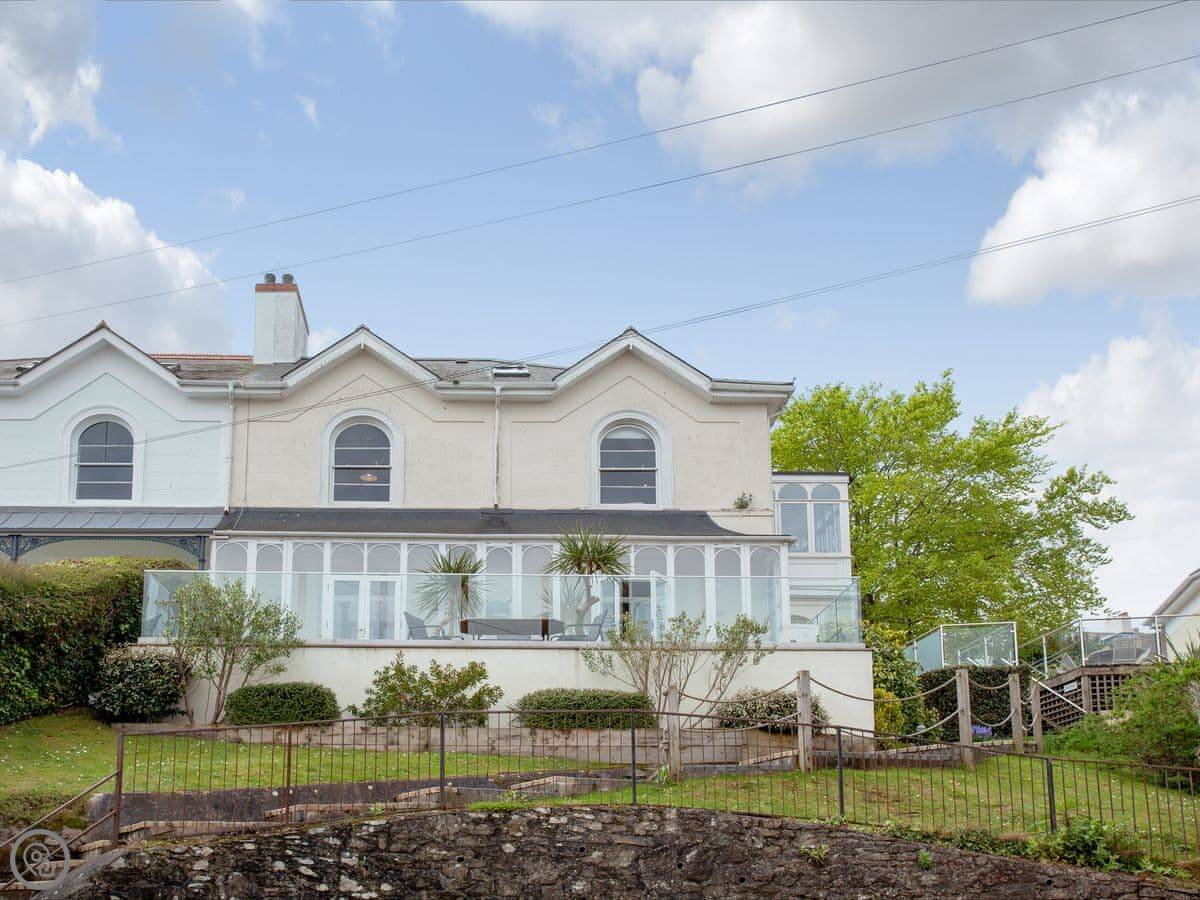 This place is Muffins. It's in Salcombe, on Devon Road. It's the top two floors of a Victorian house, so keep in mind there's someone else in the ground floor flat. The views are the main thing. You look right over the town and the estuary towards Snapes Point.