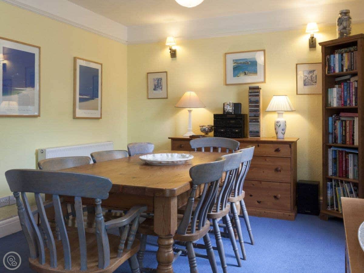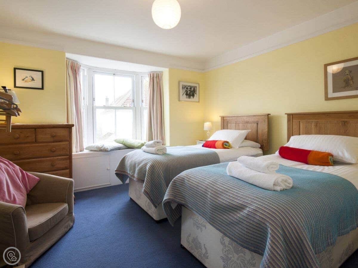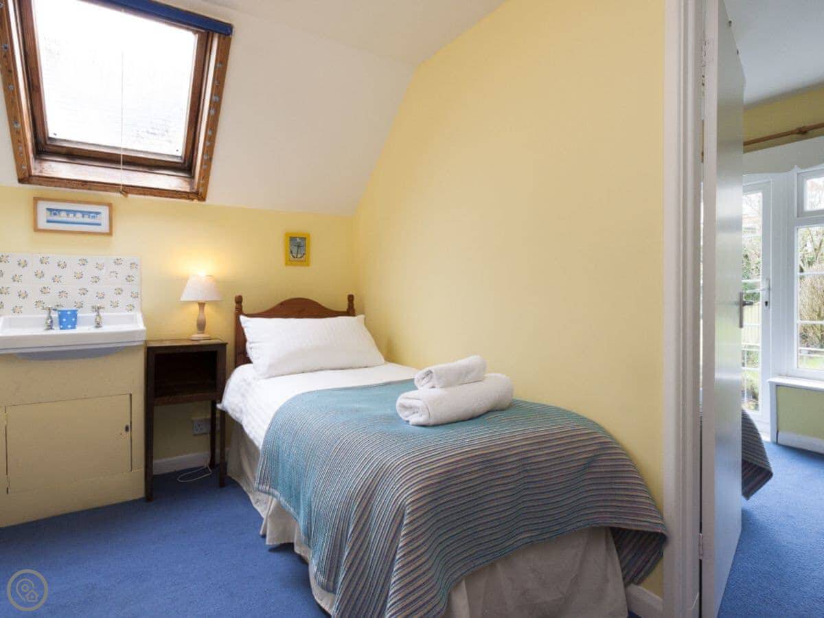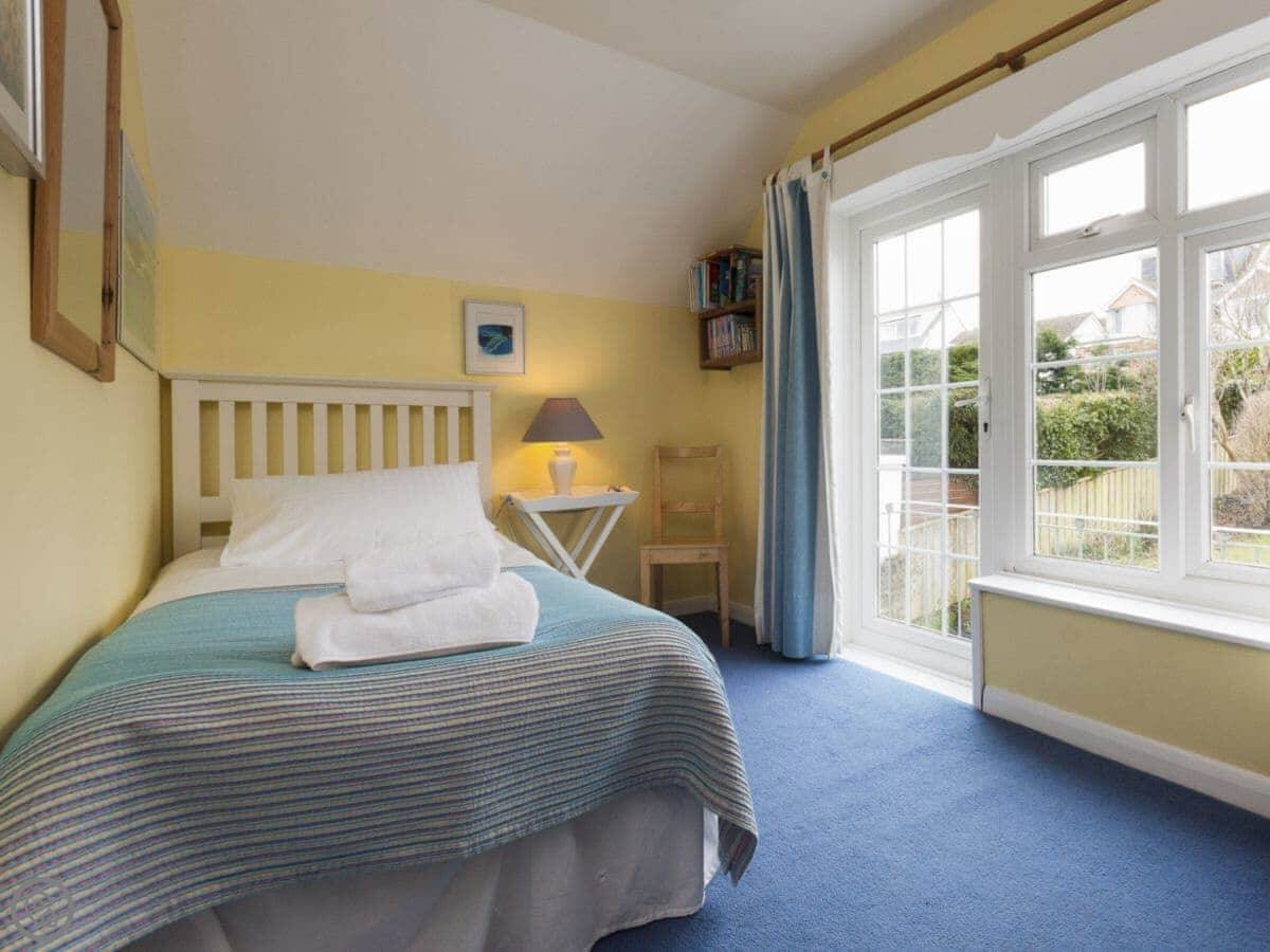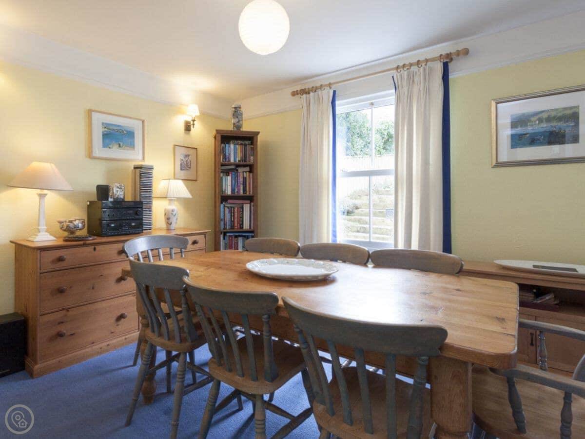 Otter Cottage is in Salcombe, up a hill a bit. It's detached. Sleeps eight in five bedrooms. There are two bathrooms.