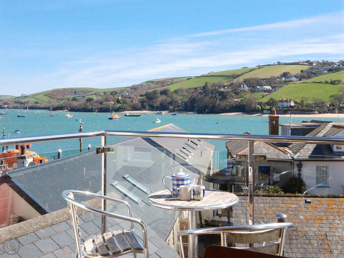 Quays Cottage is in Salcombe, right down by the harbour. It's a terraced house on a little backstreet. You're literally a minute's walk from the shops and cafés, and maybe two minutes from Victoria Quay. It looks straight out over the main bit of the harbour, so you get a good view of all the boats and over towards South Pool.