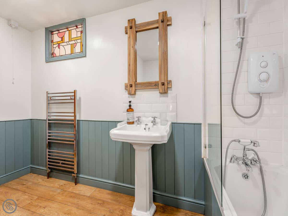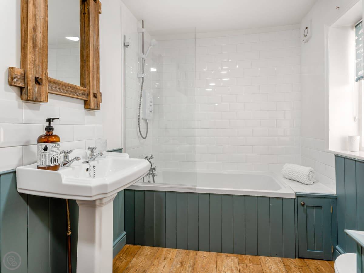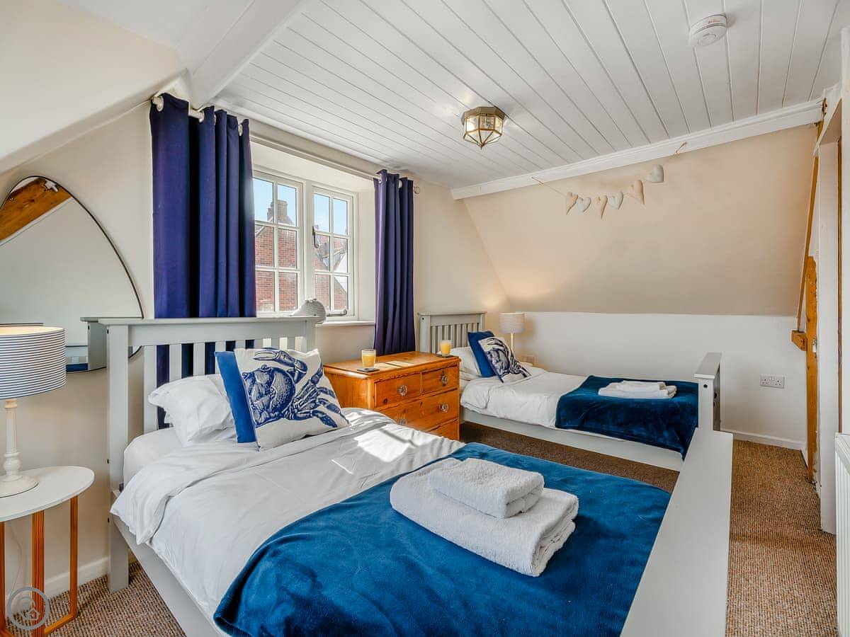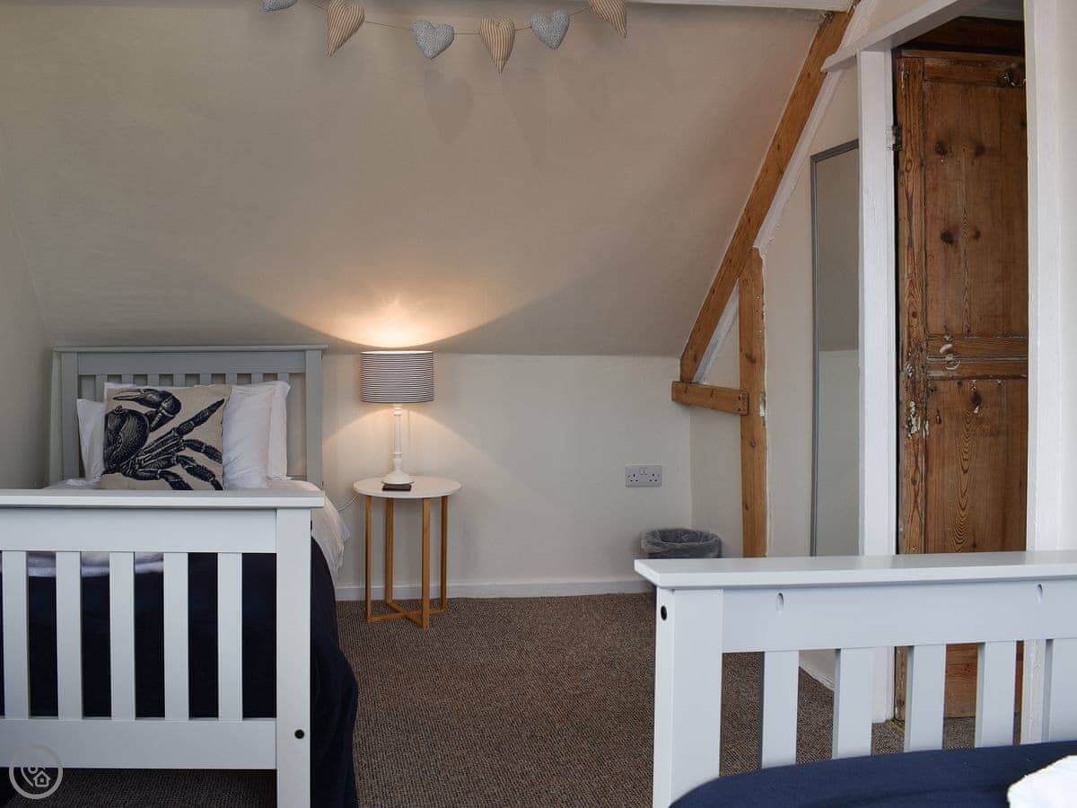 It's for five people. Three bedrooms and one bathroom. There's a double on the first floor, and a twin and a single on the second floor. The double has a good view of the Abbey.