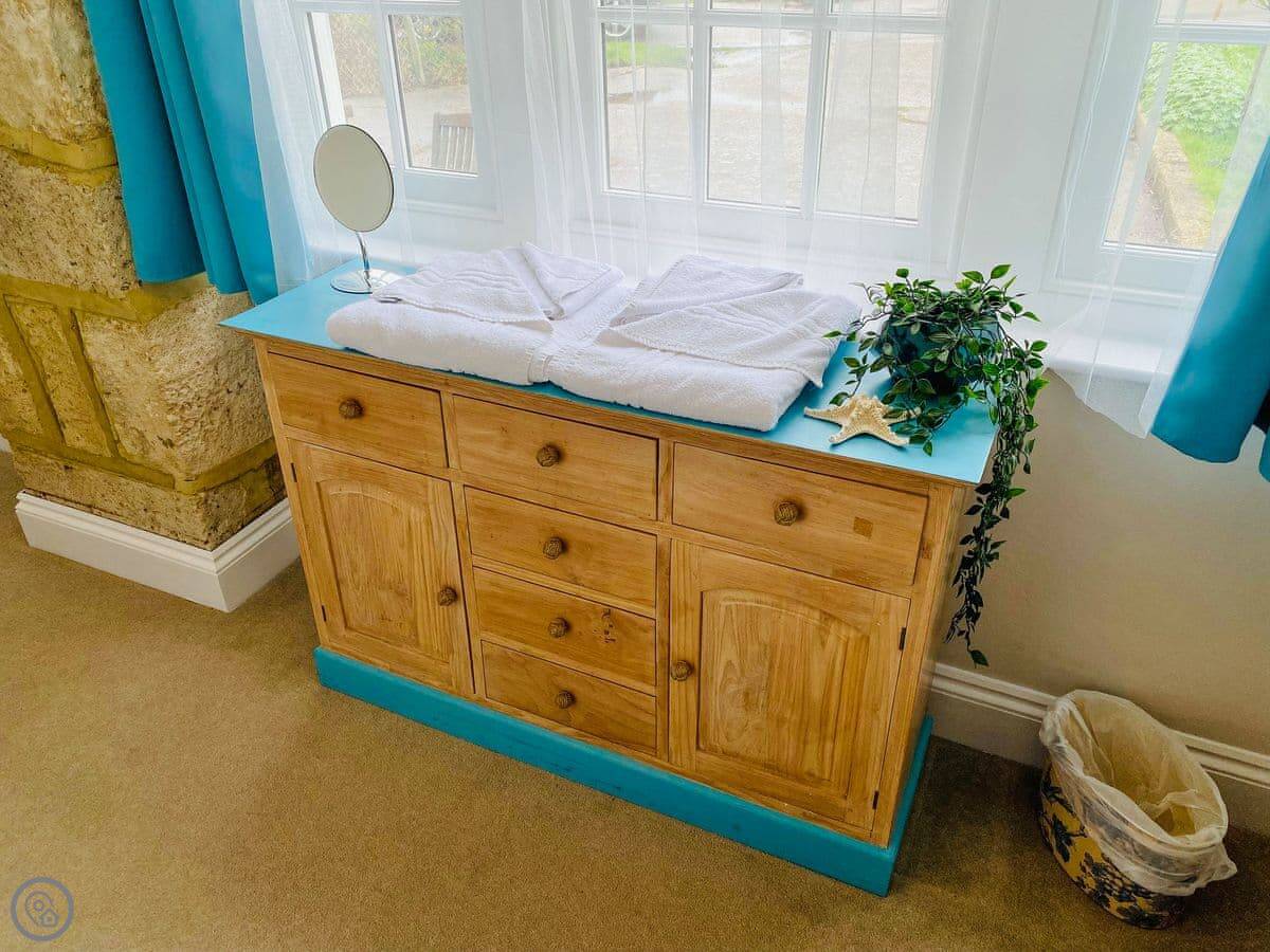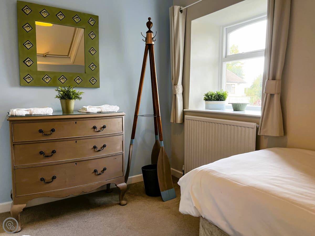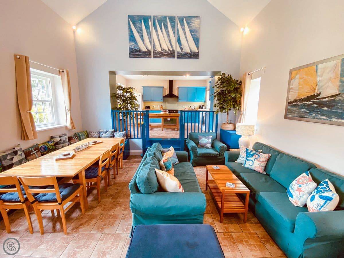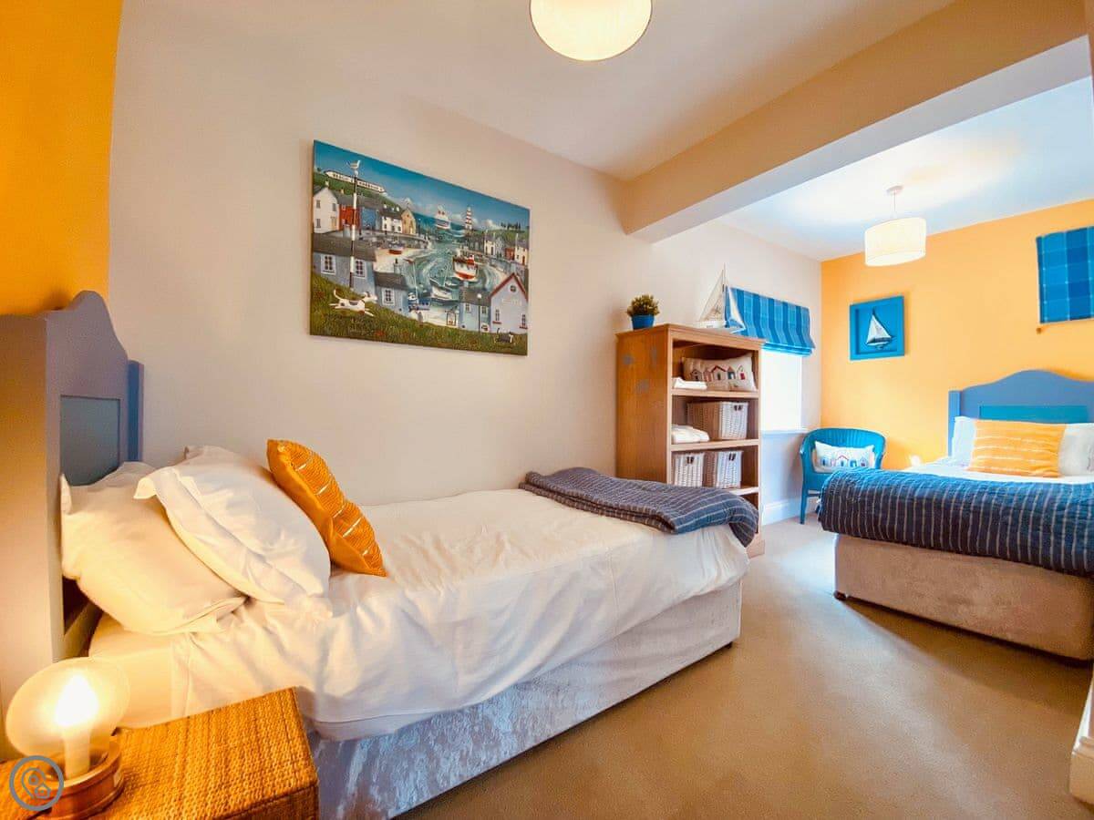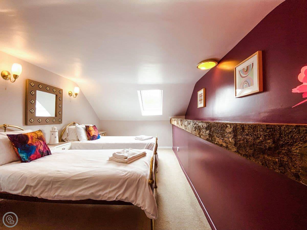 Step inside The Coach House to discover an interior that has been recently refurnished to sympathetically compliment the original stone exterior. From the entrance lobby you are naturally drawn into the main reception area, where the vaulted ceiling adds an element of surprise. The double height is effortlessly balanced with the use of coloured soft furnishings, which ensure the space is bright and welcoming for all ages. Sailing being one of the main attractions of the island is reflected in the large artworks that decorate the open plan space, where there is plenty to entertain guests. Why not embrace your competitive spirit by picking one of the many board games and settling in around the dining table or tussle for position as head chef in the large and well-equipped kitchen, whilst arguing over the choice of music that will set the mood for the evening! Along with filling the cupboards with food from the local shops, the guests are welcome to handpick seasonal vegetables which are grown in the garden behind the house – literally, bringing the outside in! After a day of exploring perhaps all that is needed is to simply relax in one of the two baths and flop on to a sofa to watch a favourite film.